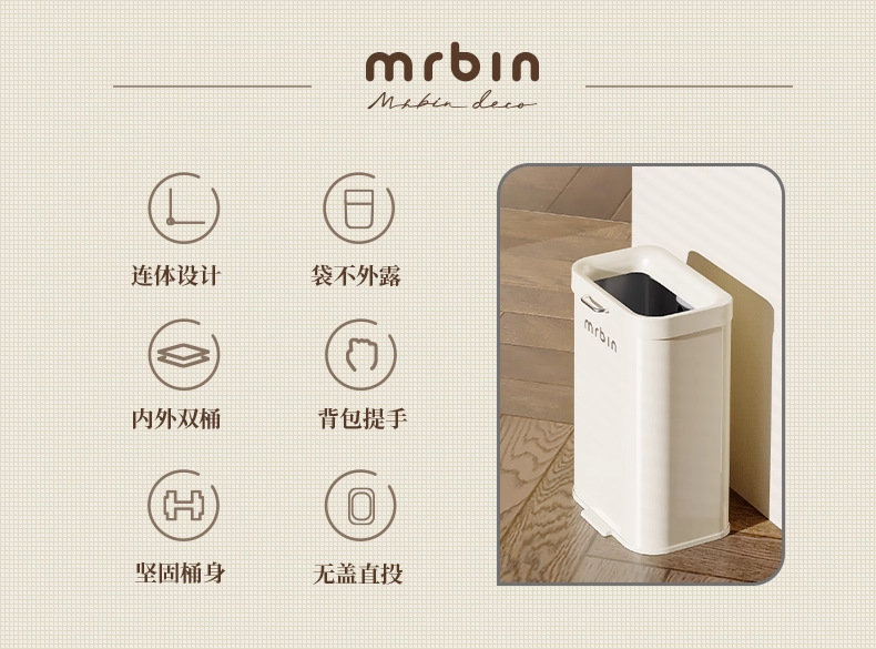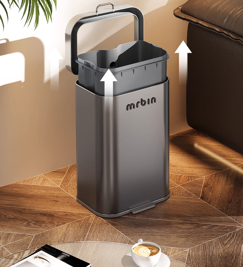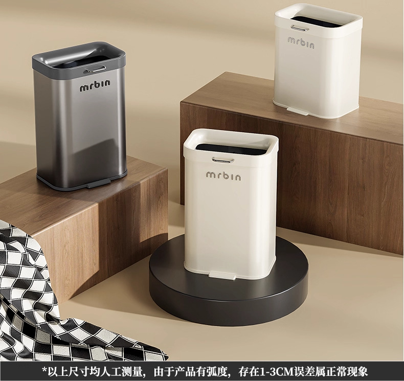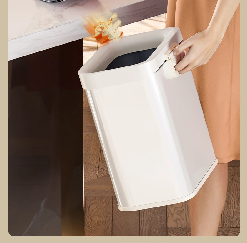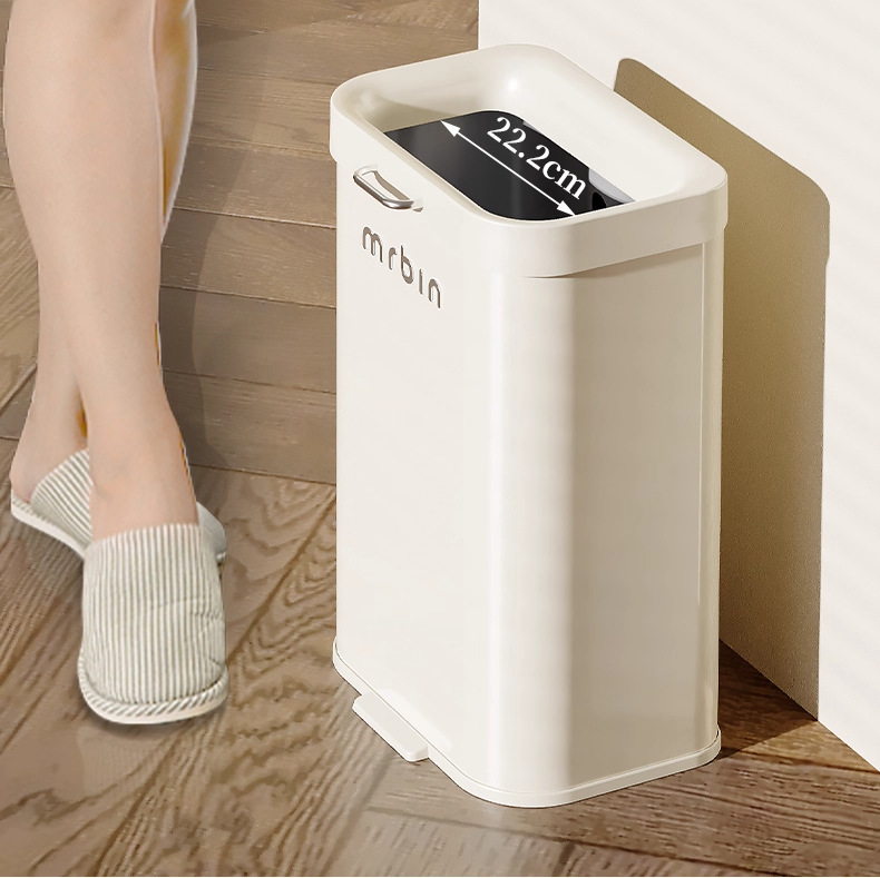 Cubo de basura para uso doméstico en cocina, sala de estar y baño, móvil, nuevo modelo 2025, tipo estrecho, sin tapa, de tiro directo, cubo sanitario.