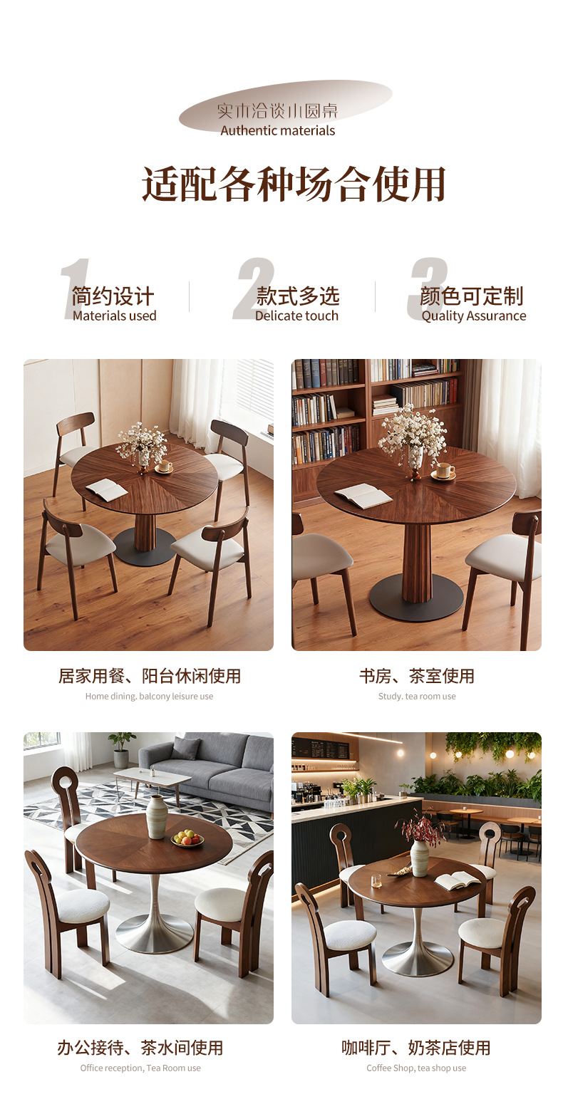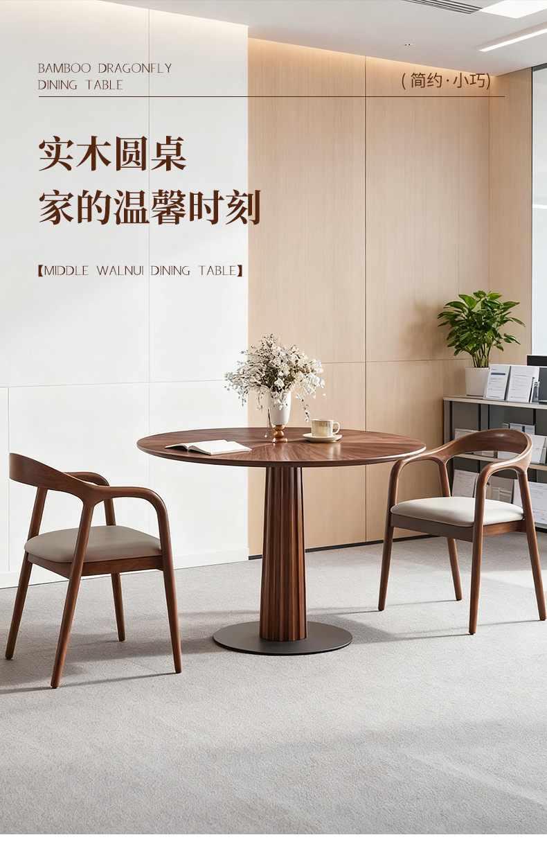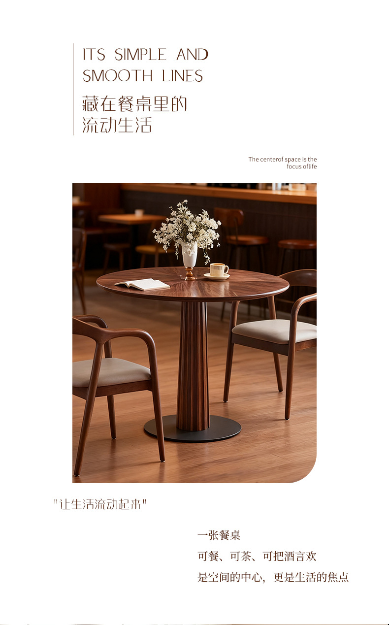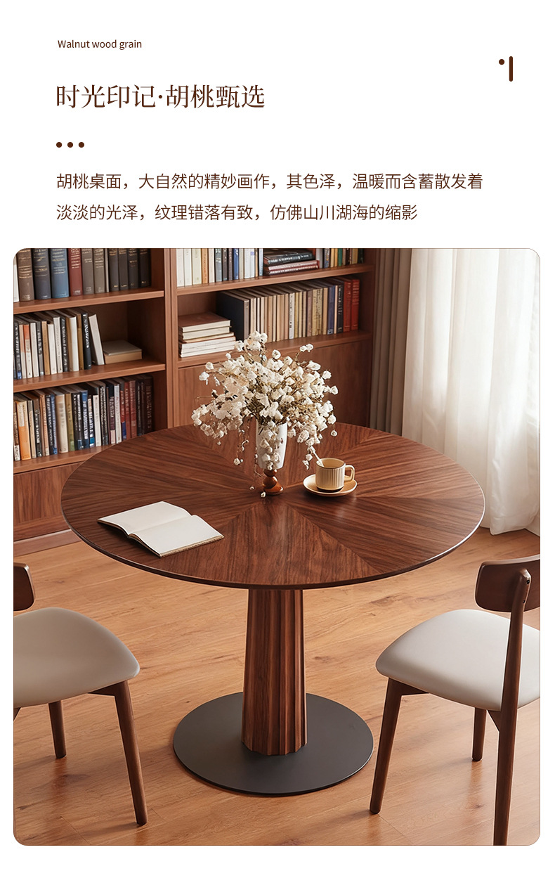 Mesa redonda de madera maciza medieval, mesa redonda de madera de nuez negra, mesa de comedor de sala de estar retrógrada simple, pequeña casa, mesa de comedor