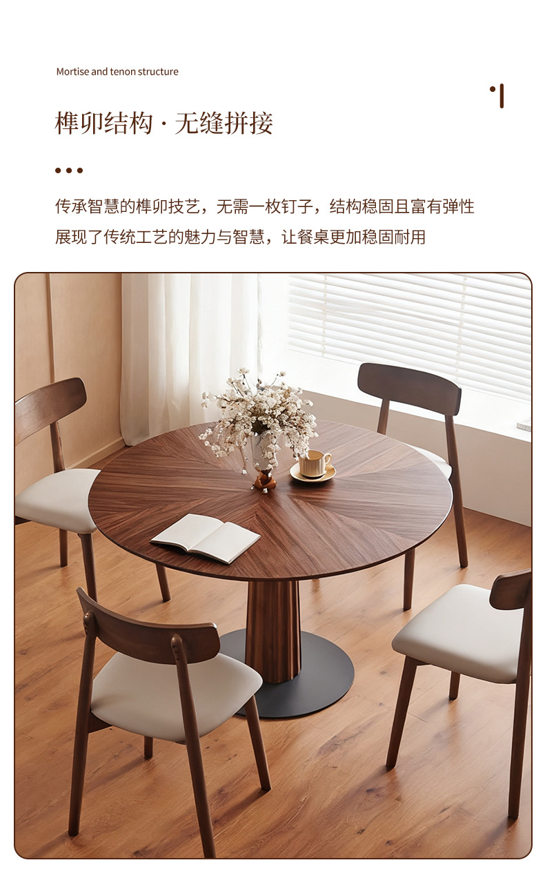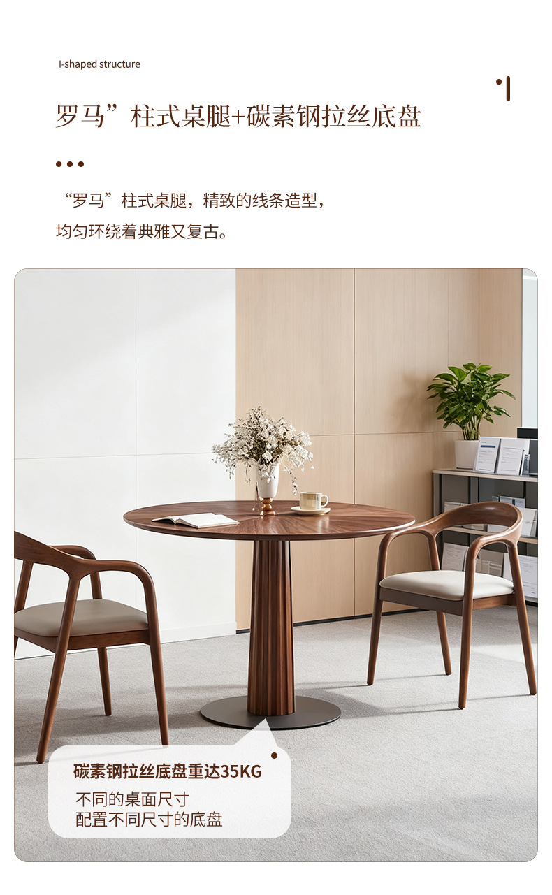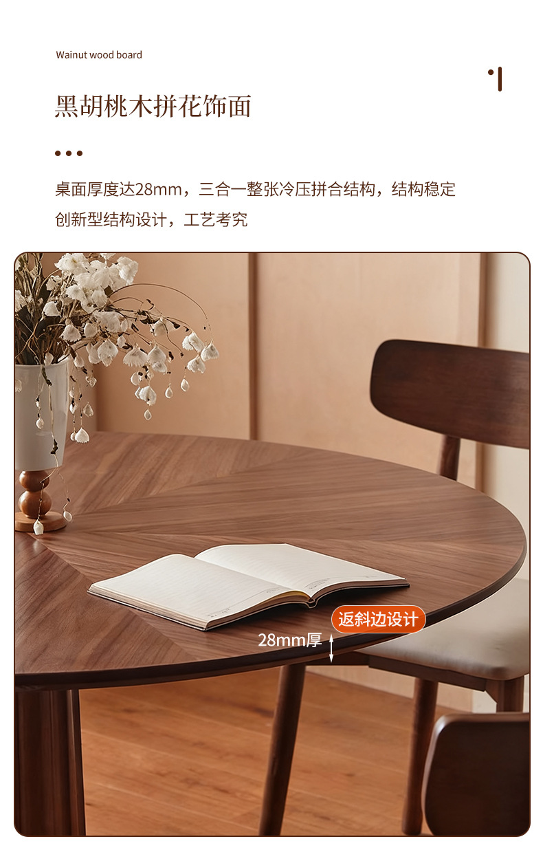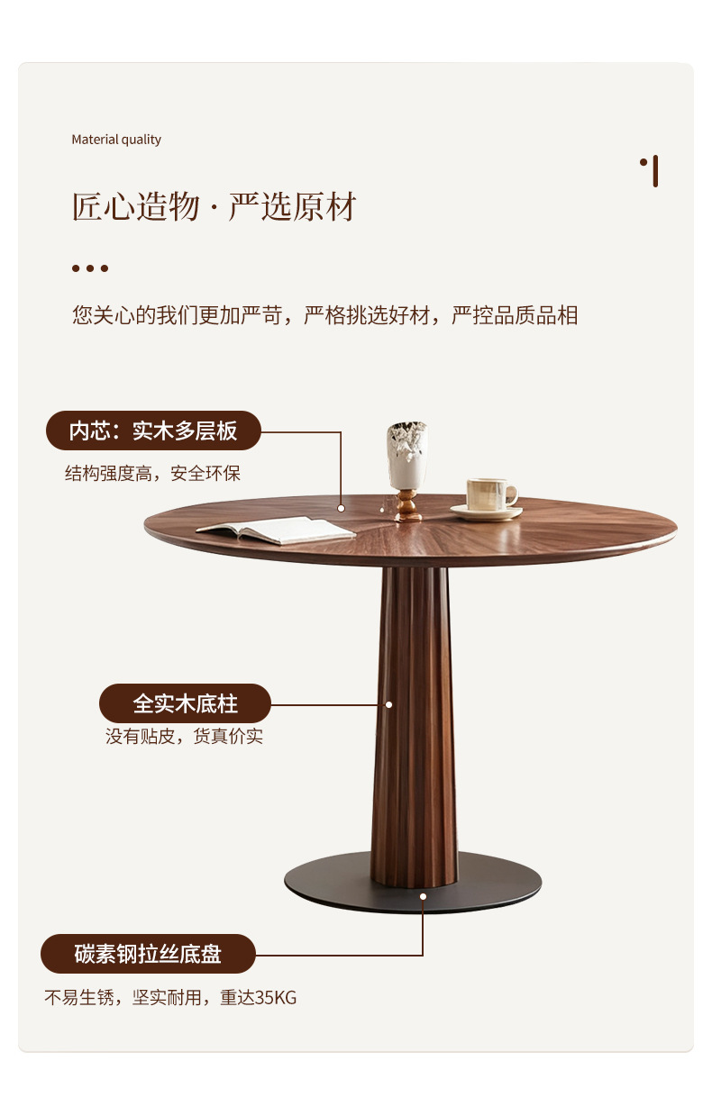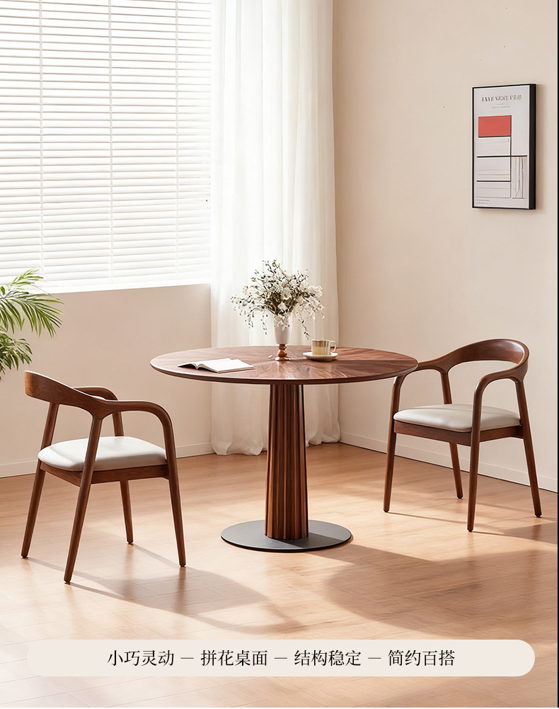 Mesa redonda de madera maciza medieval, mesa redonda de madera de nuez negra, mesa de comedor de sala de estar retrógrada simple, pequeña casa, mesa de comedor