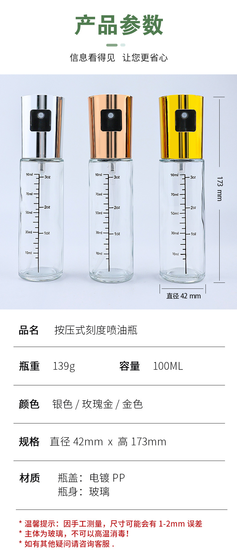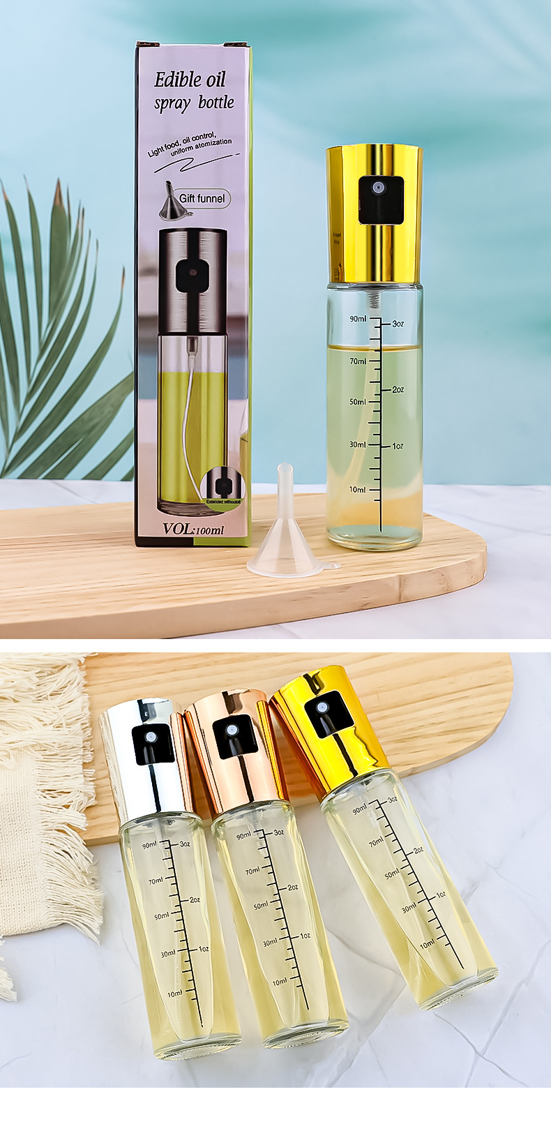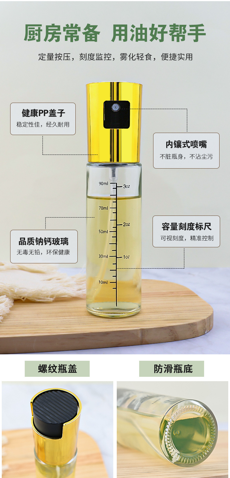 Spot olla de inyección de combustible para el hogar Botella de inyección de combustible de compresión atomizada Botella de condimento Suministros de cocina con olla de aceite de vidrio de escala