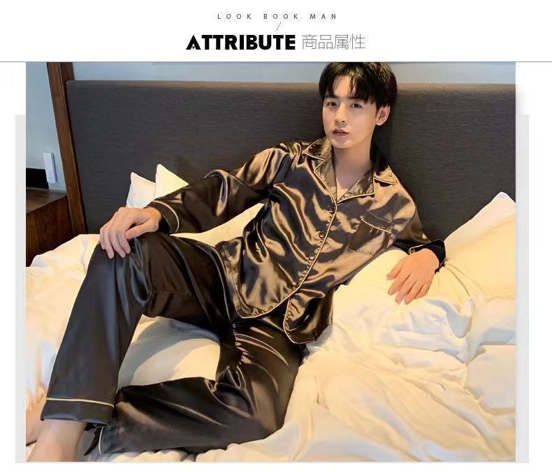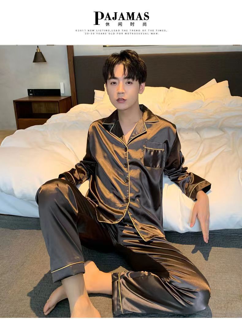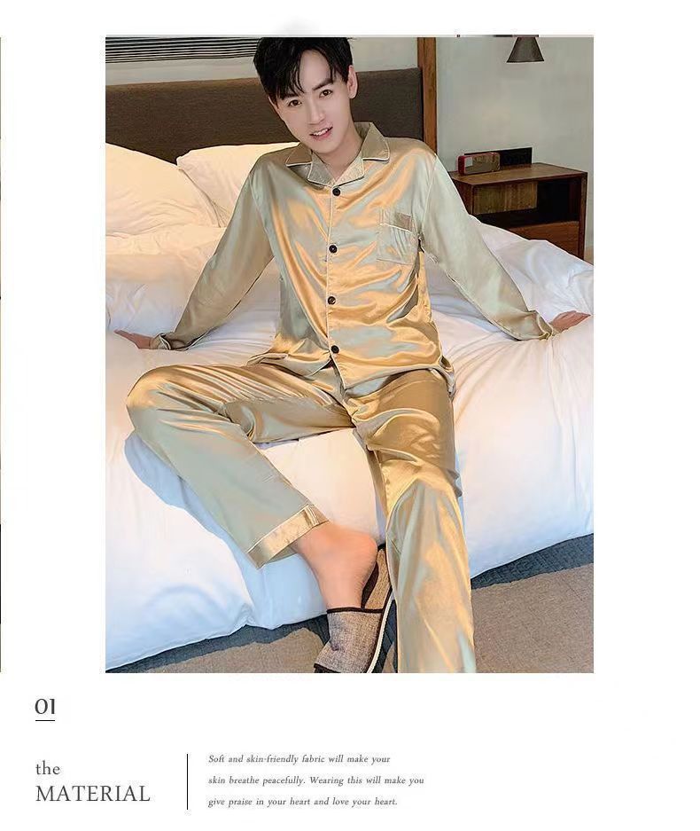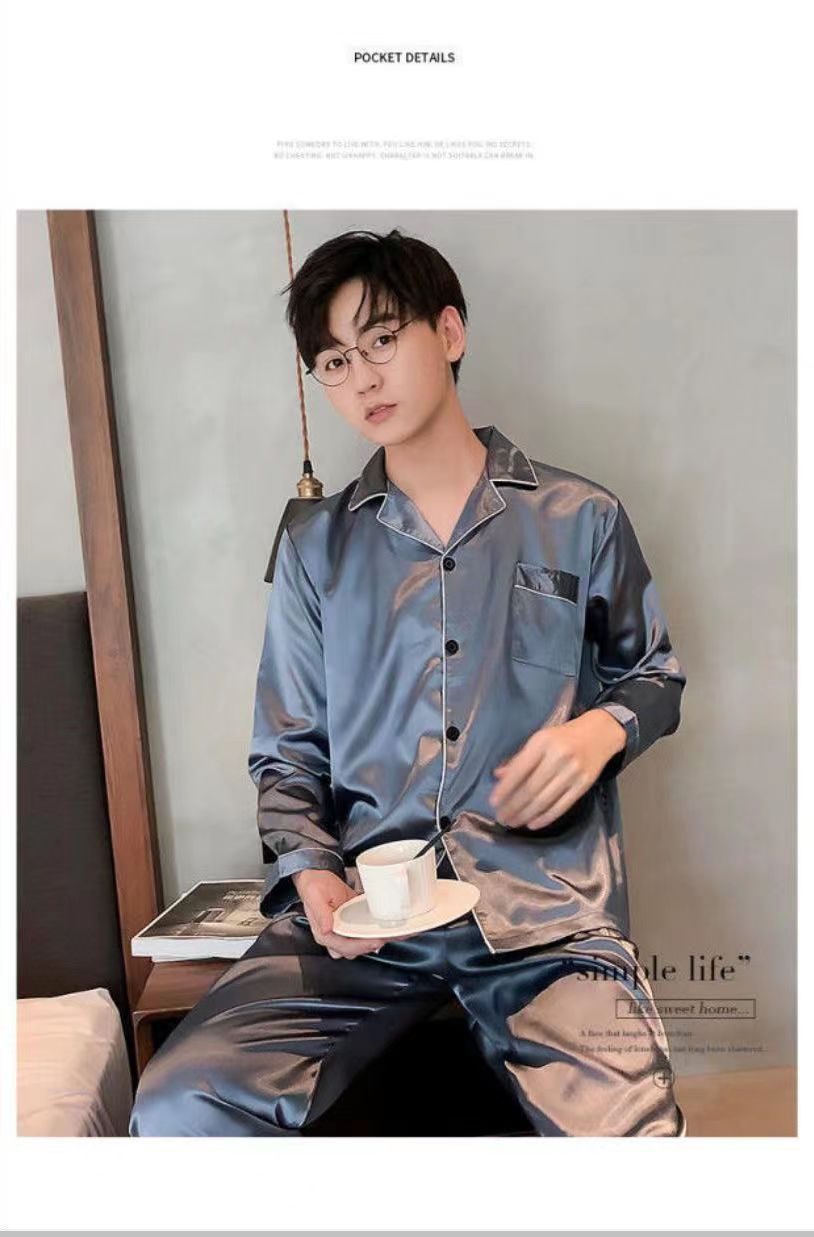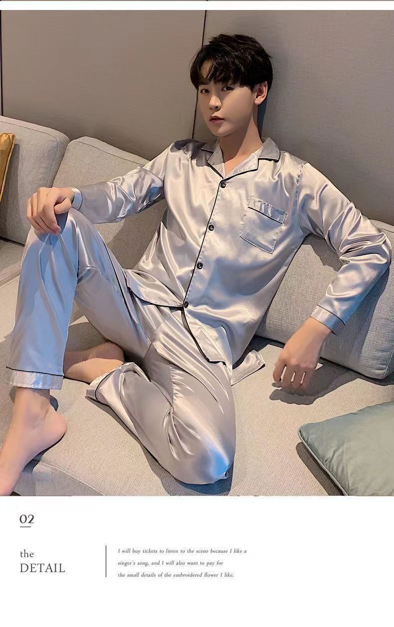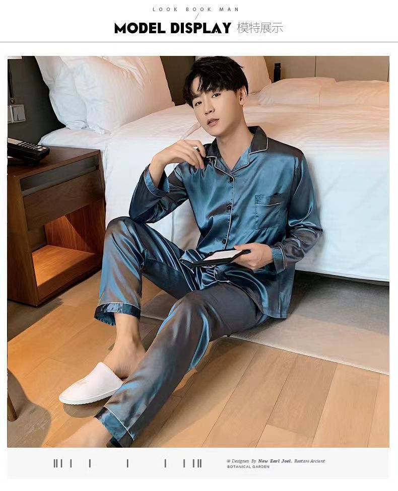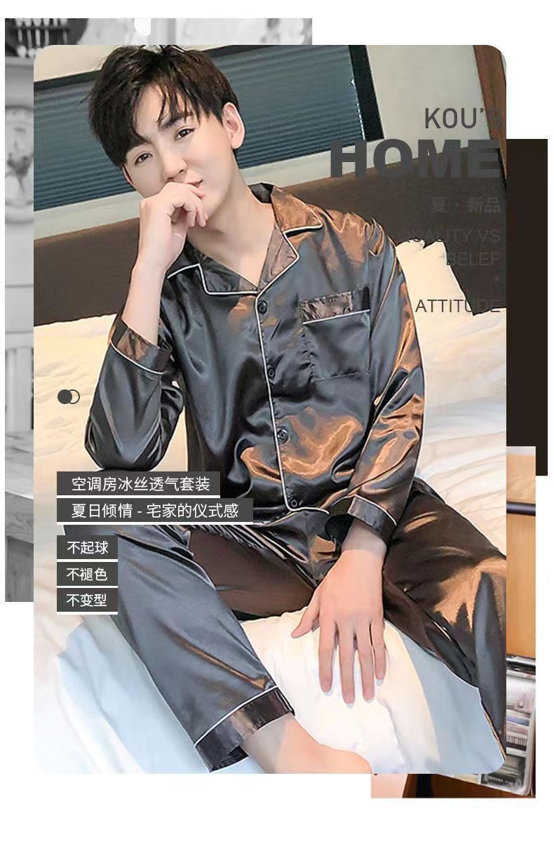 2025 pijamas de seda de verano para hombres mangas largas delgadas ropa casera casual pantalones de hielo de primavera seda dos piezas set