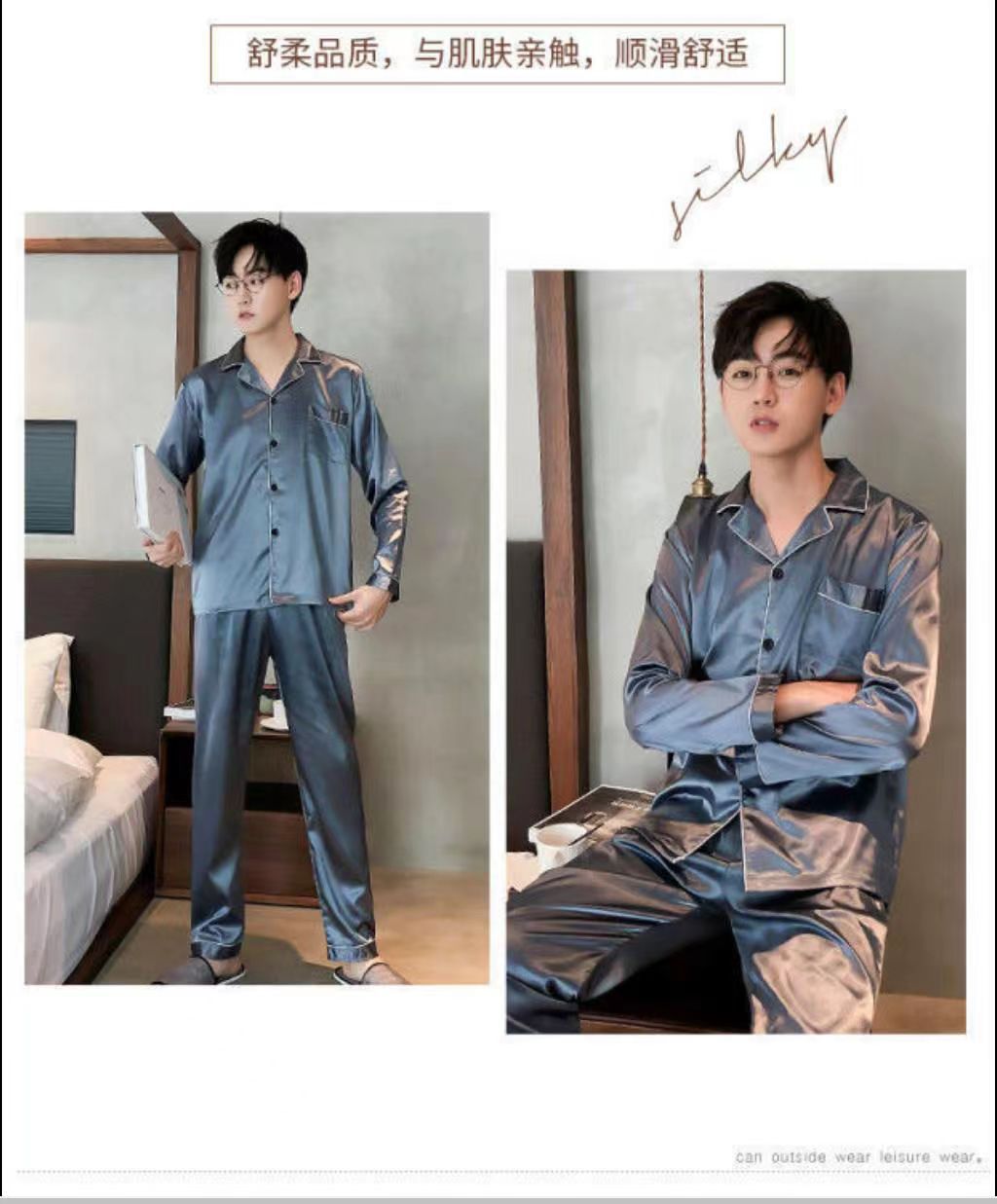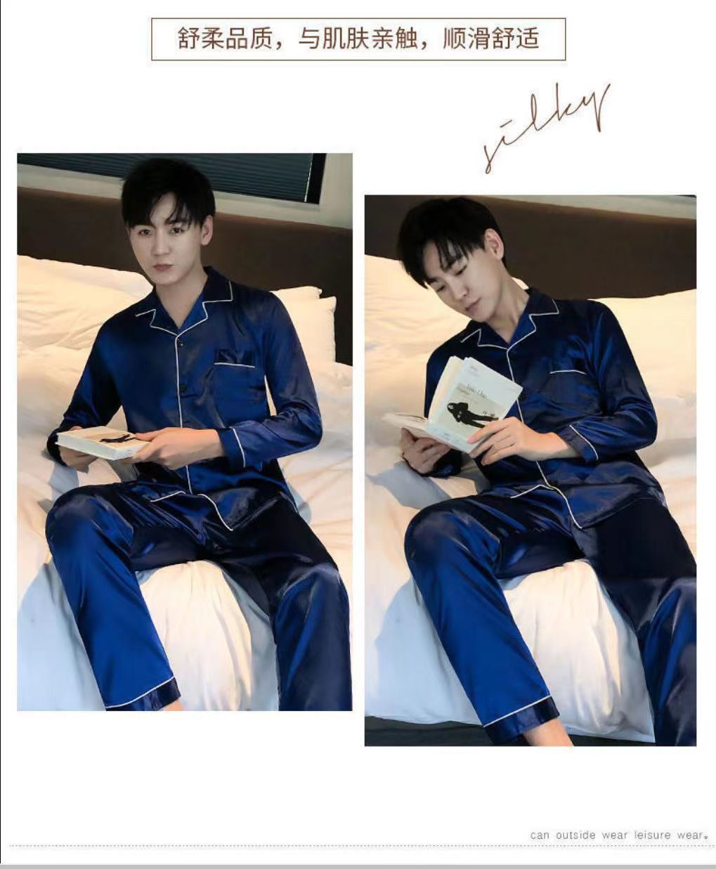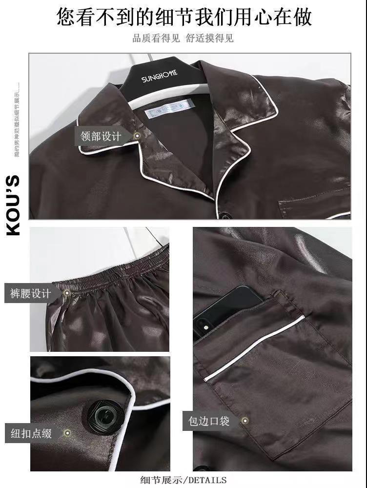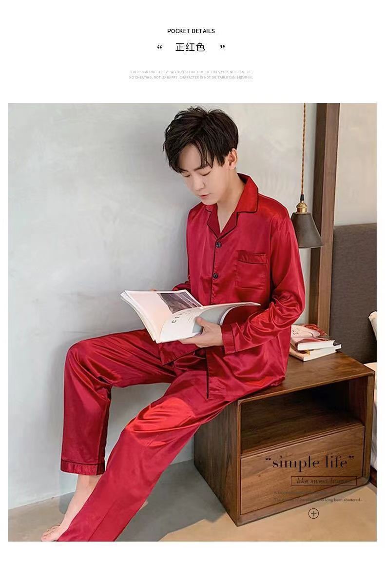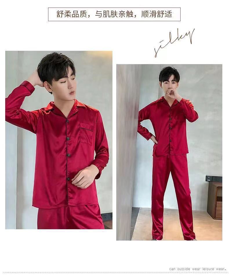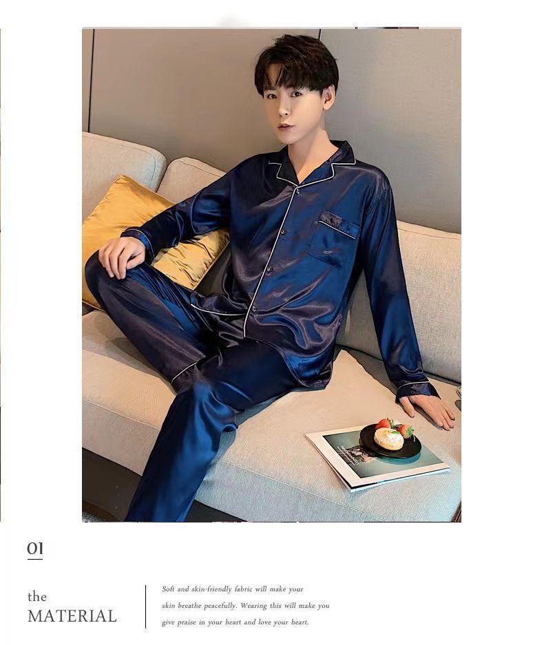 2025 pijamas de seda de verano para hombres mangas largas delgadas ropa casera casual pantalones de hielo de primavera seda dos piezas set