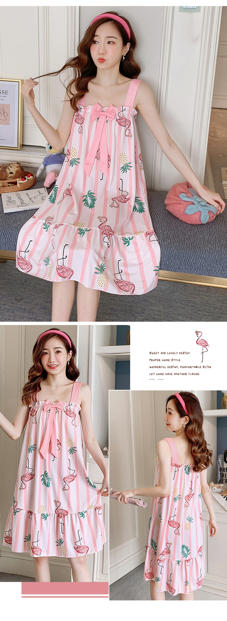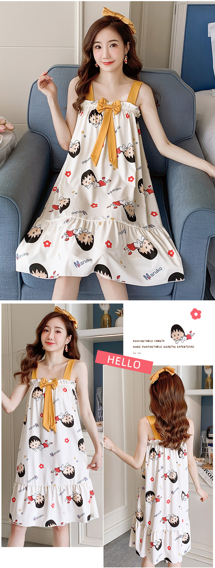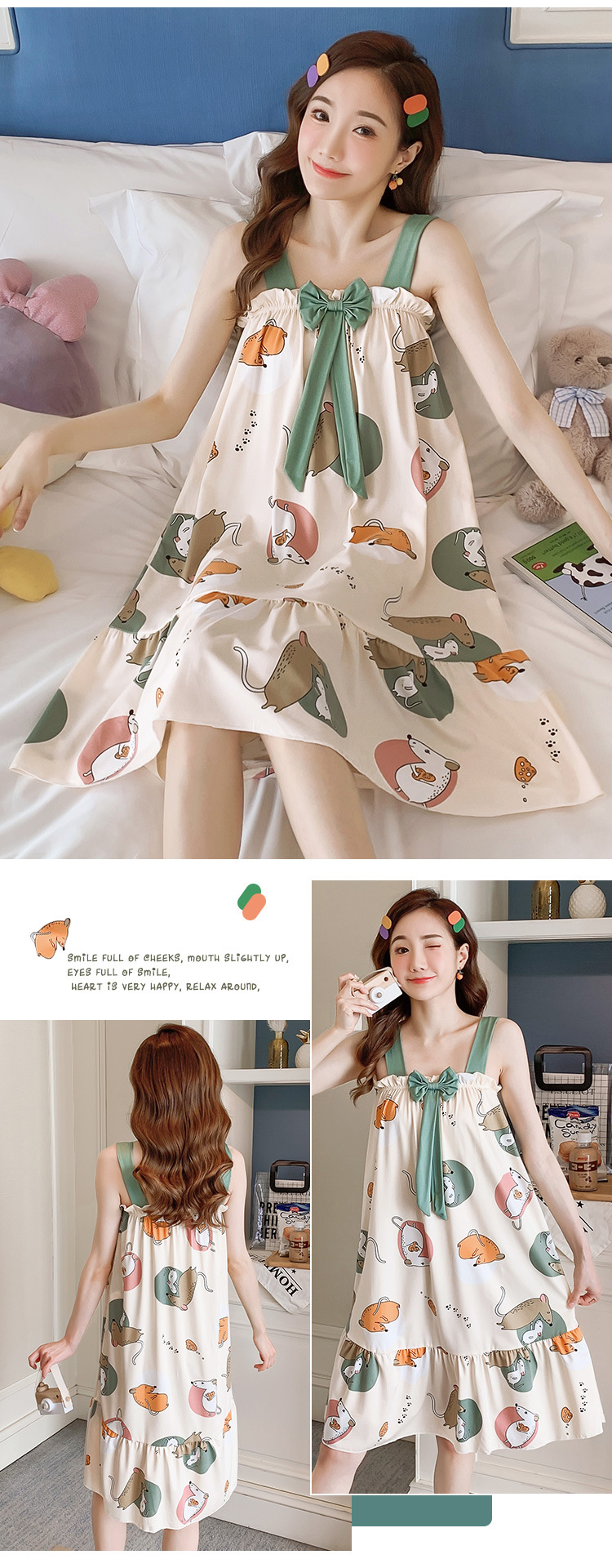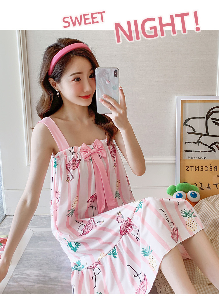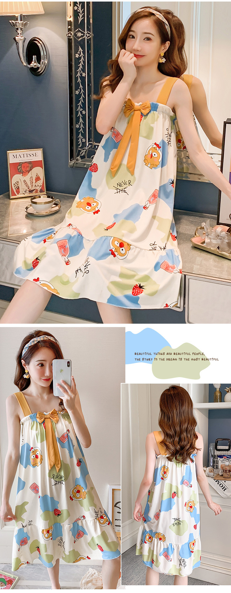 Comercio exterior 2023 correa de verano flojo camisón las mujeres largas dibujos animados arco dulce pijamas desgaste del hogar