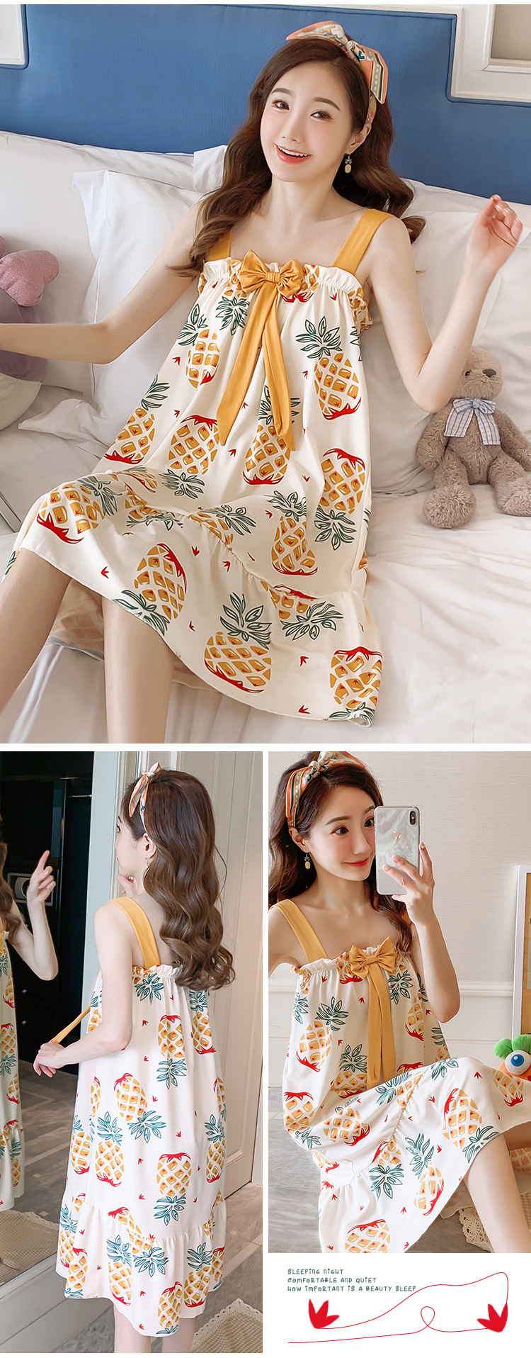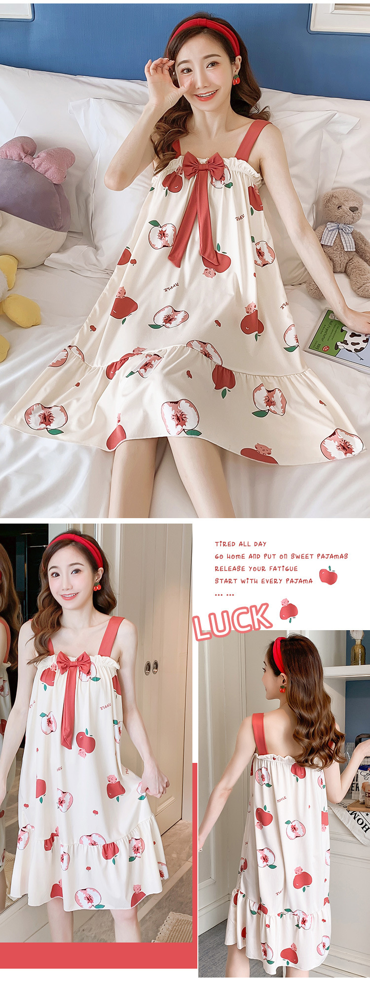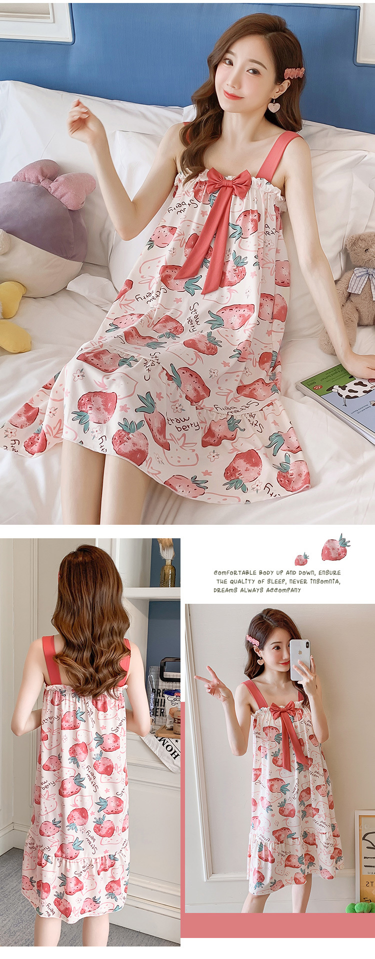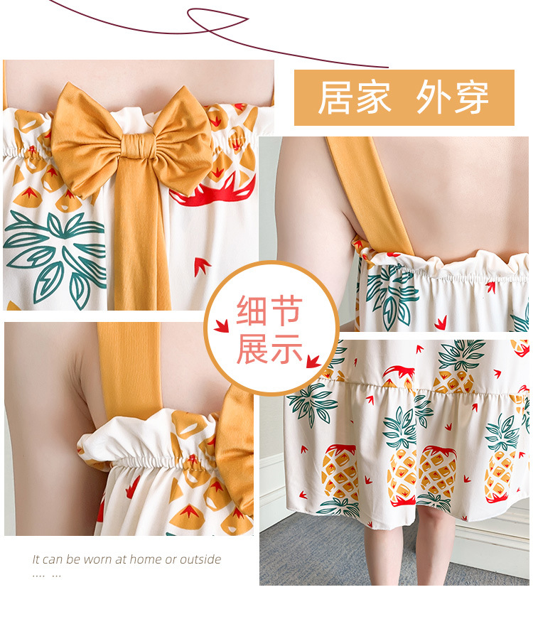 Comercio exterior 2023 correa de verano flojo camisón las mujeres largas dibujos animados arco dulce pijamas desgaste del hogar