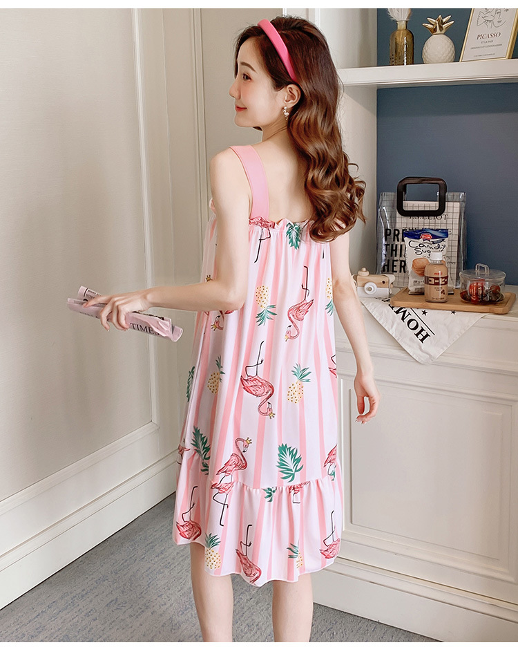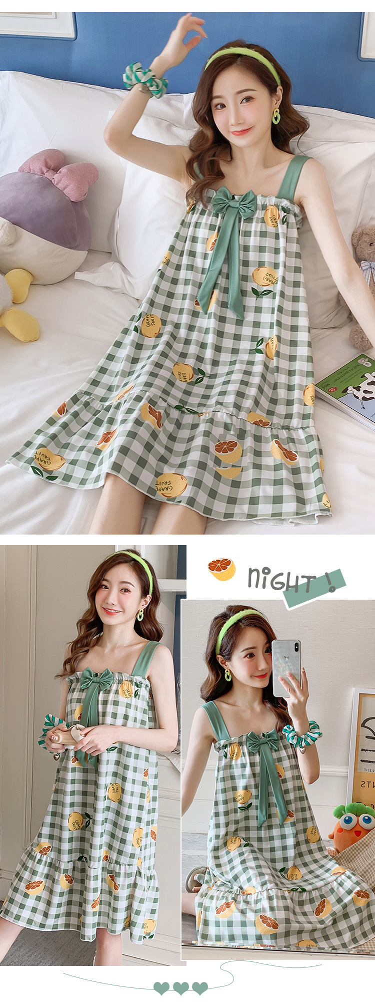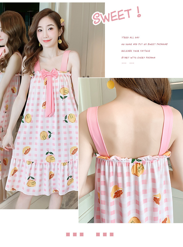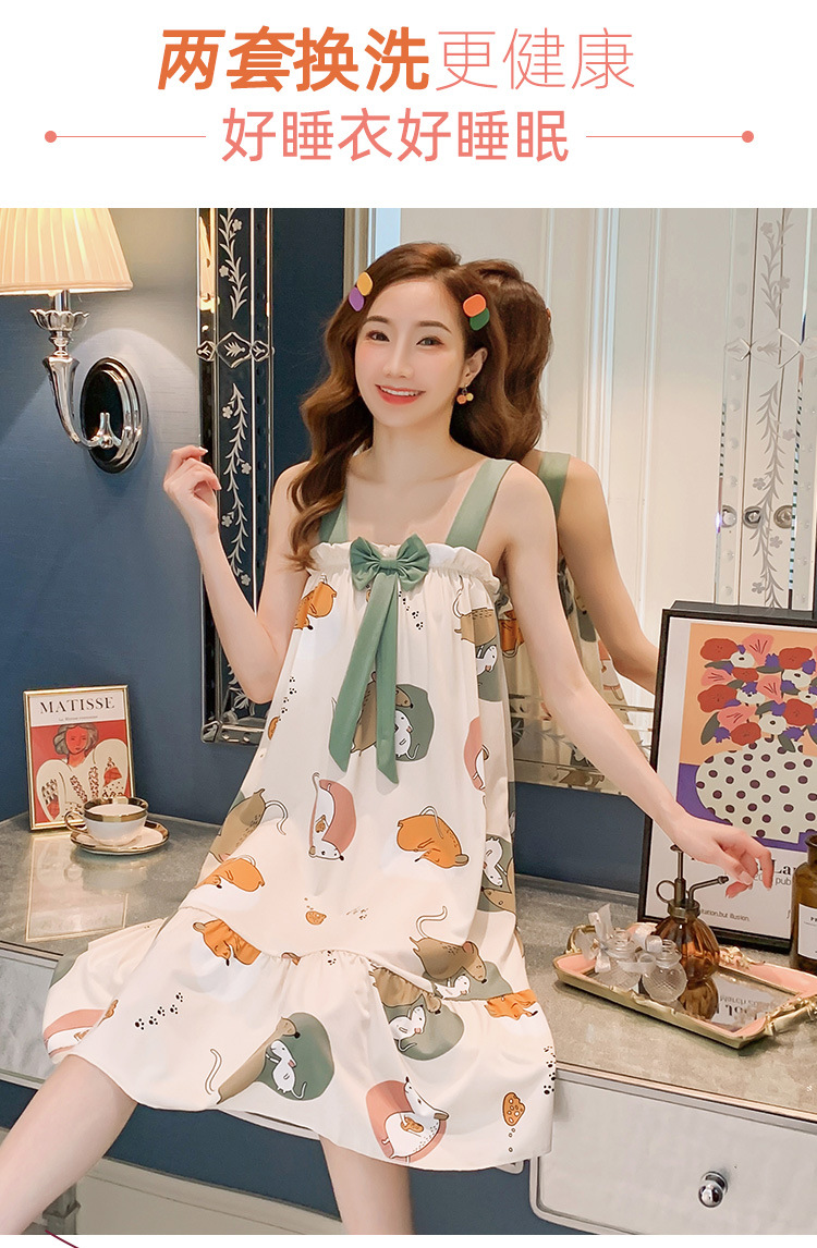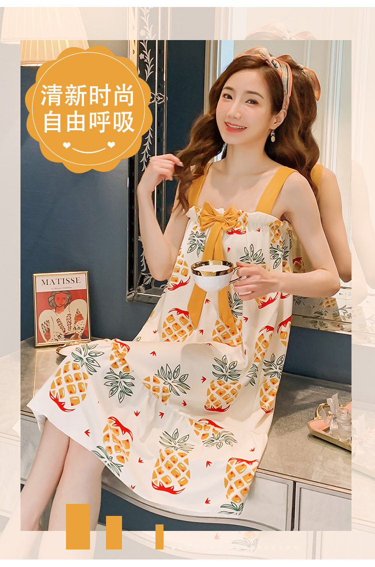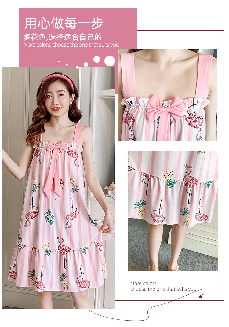Comercio exterior 2023 correa de verano flojo camisón las mujeres largas dibujos animados arco dulce pijamas desgaste del hogar