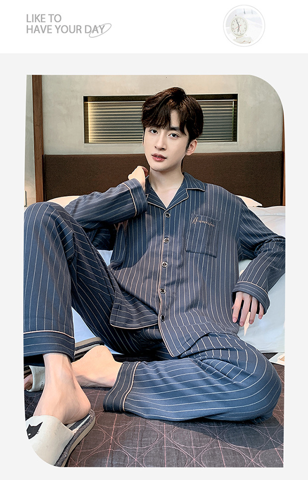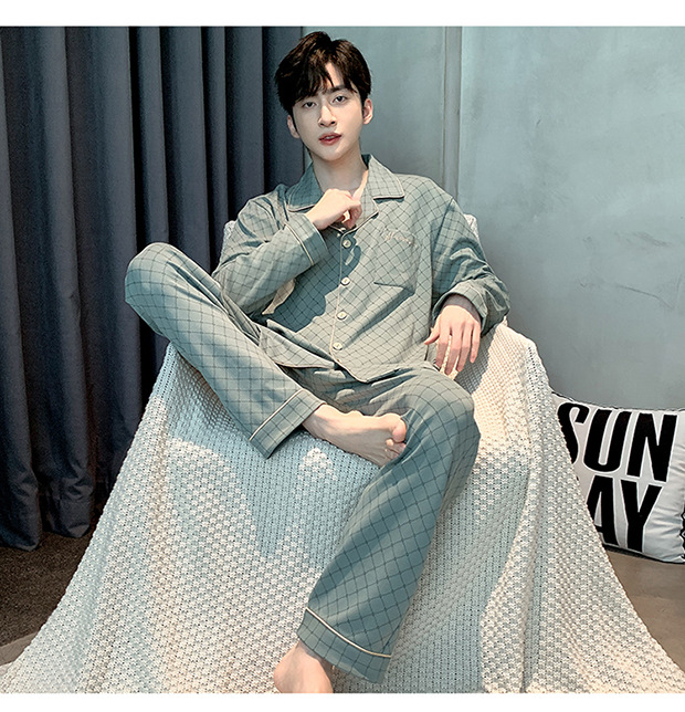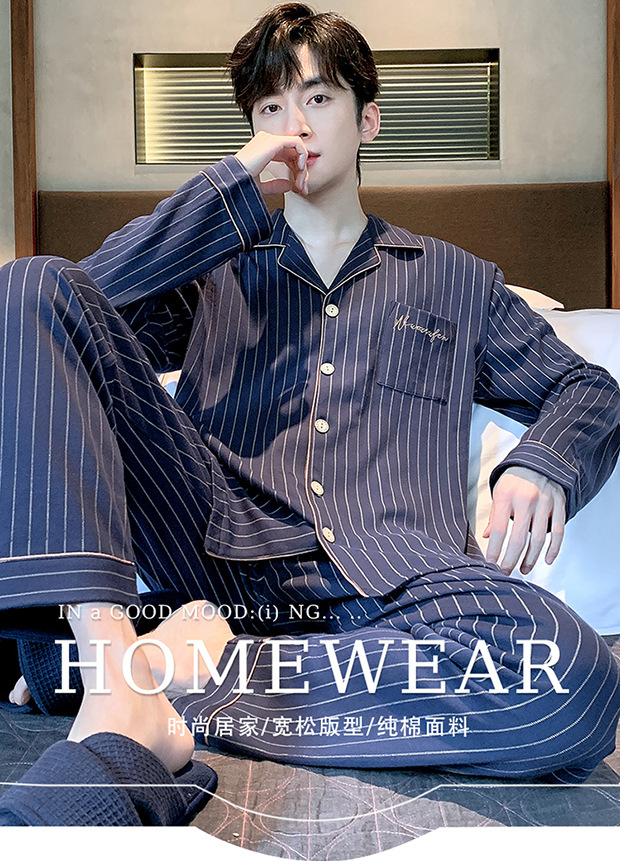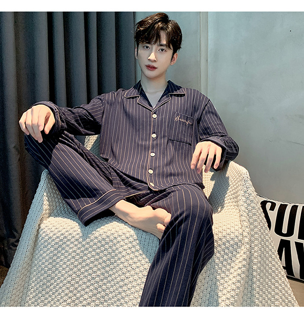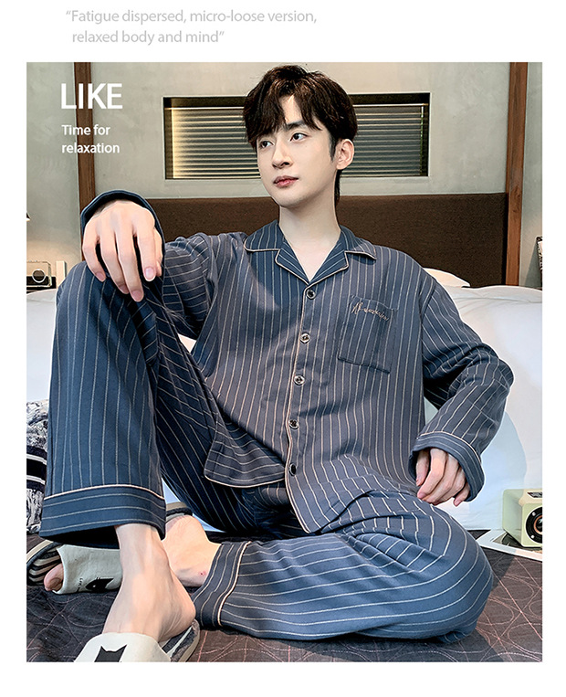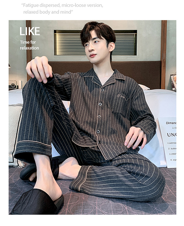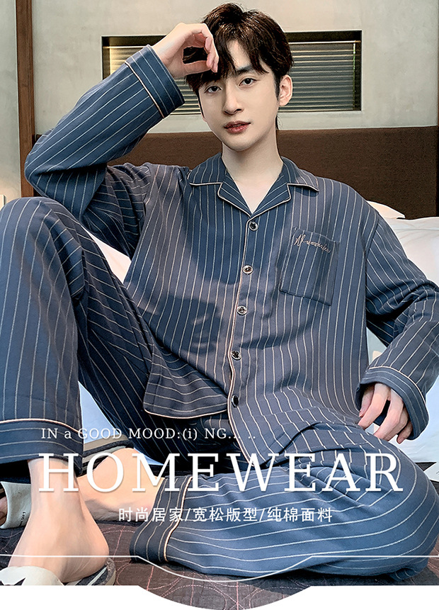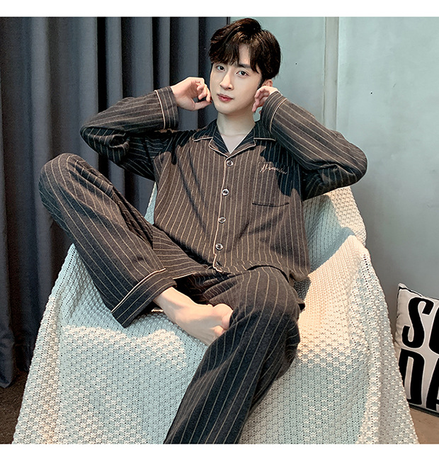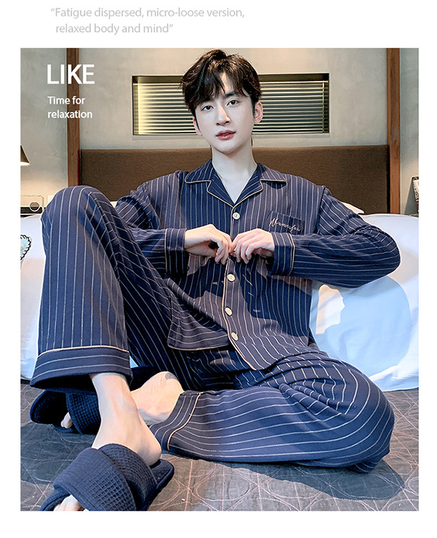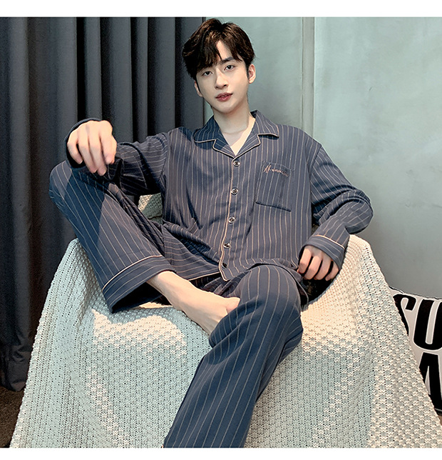 Nuevos pijamas para hombres primavera y otoño algodón de manga larga grande conjunto para hombres dormitorios universitarios coreanos pijamas para el hogar