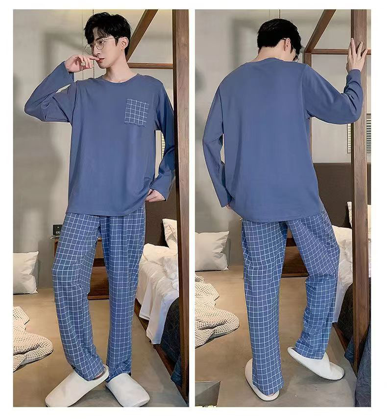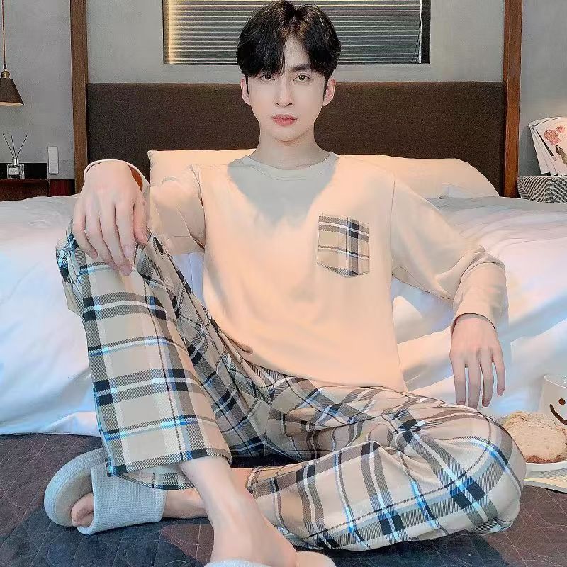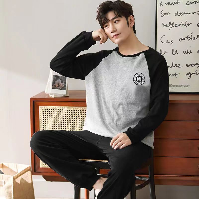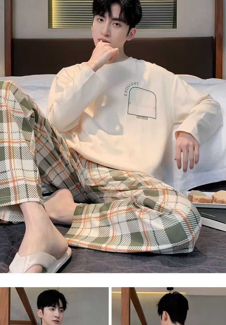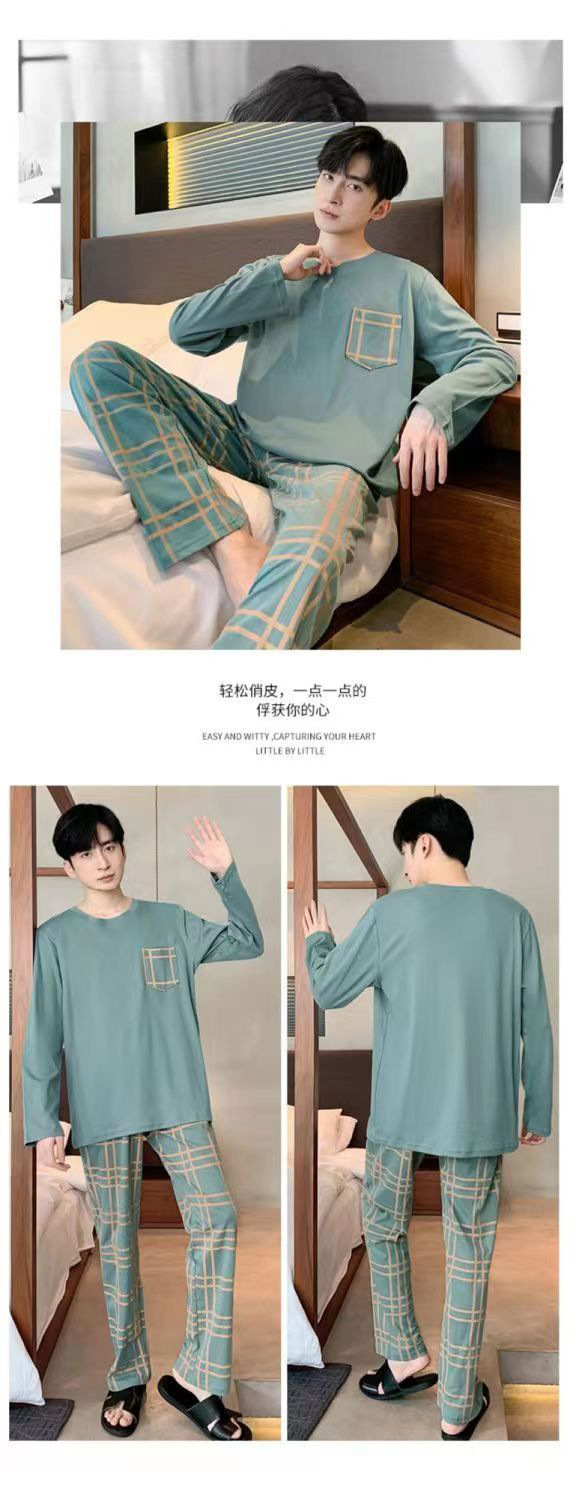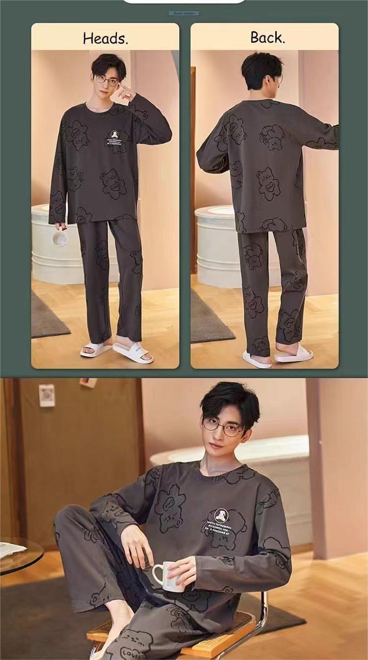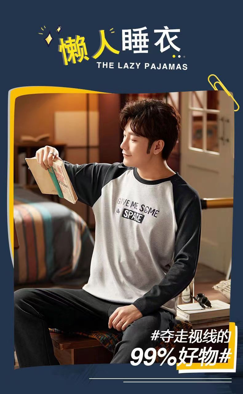 2026 pijamas de manga larga para hombres primavera y otoño simple chaqueta casual juvenil invierno set de ropa de hogar se puede usar para el comercio exterior