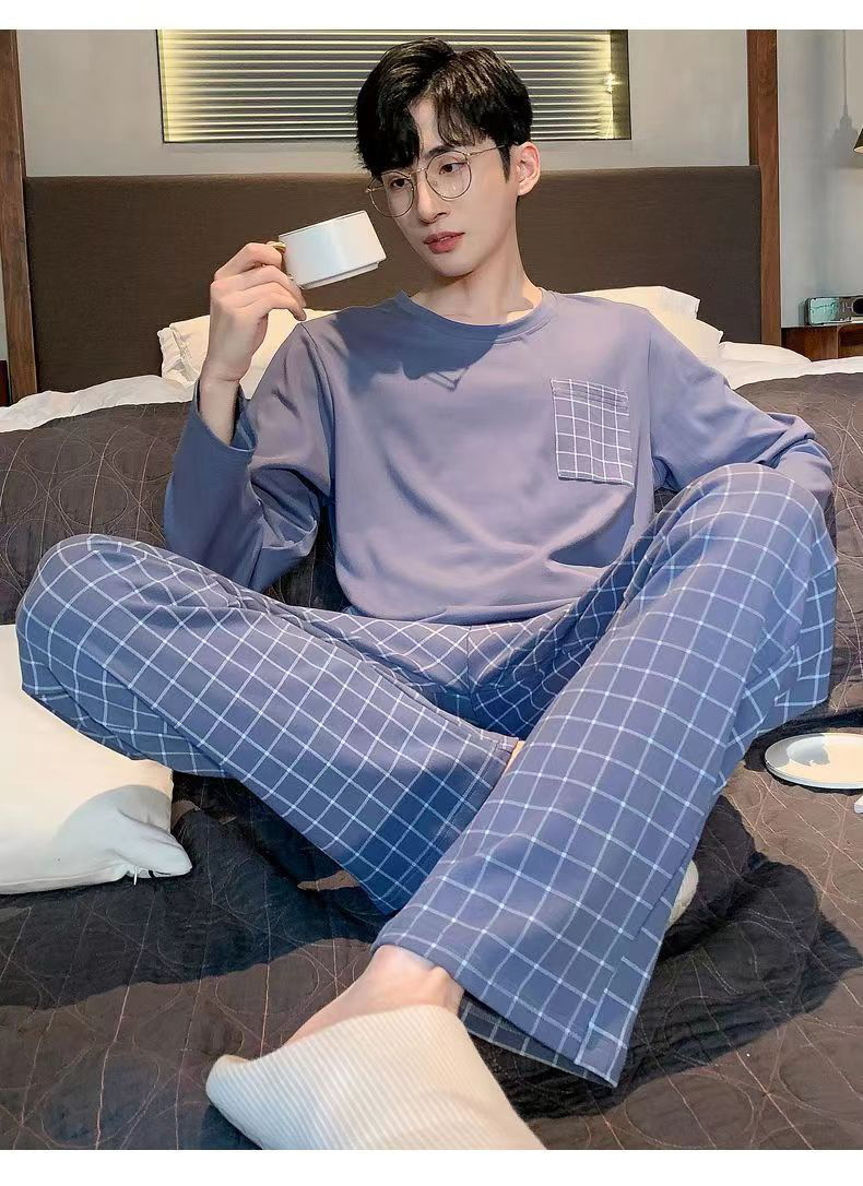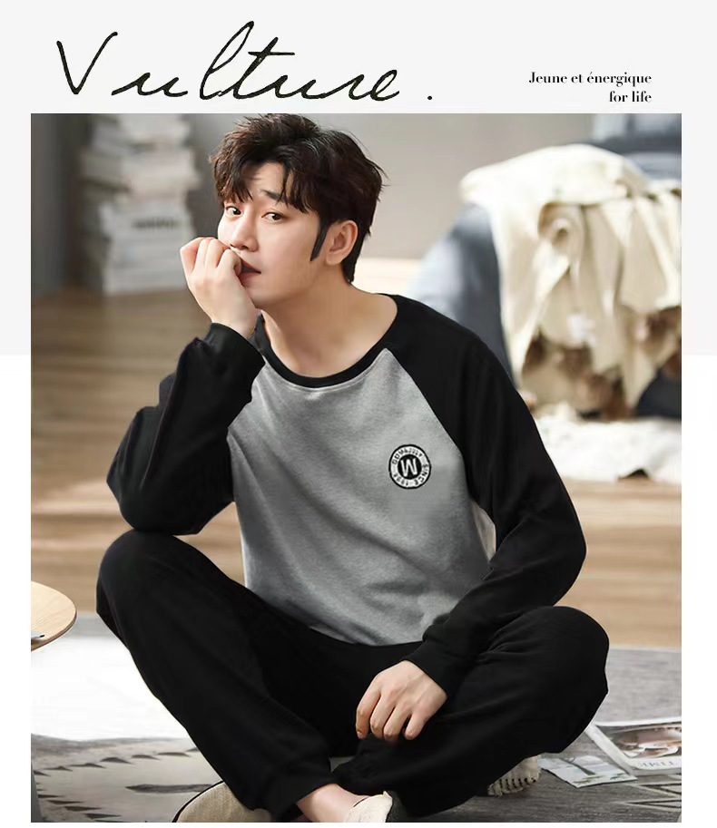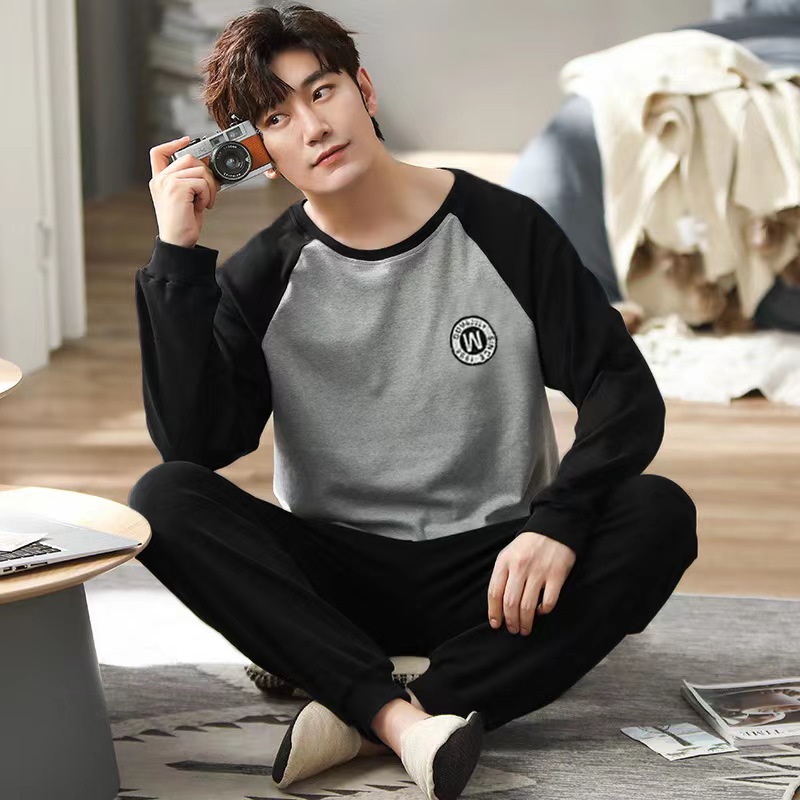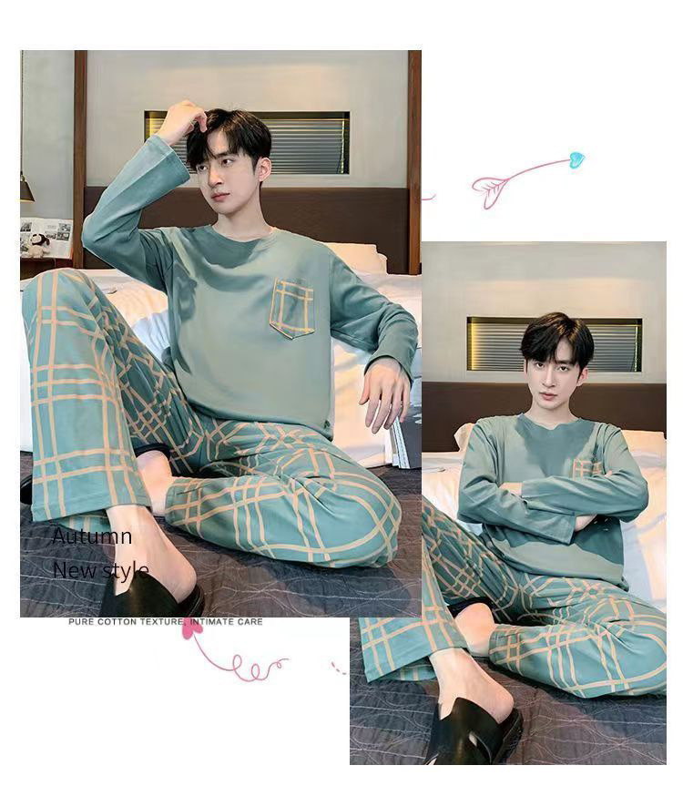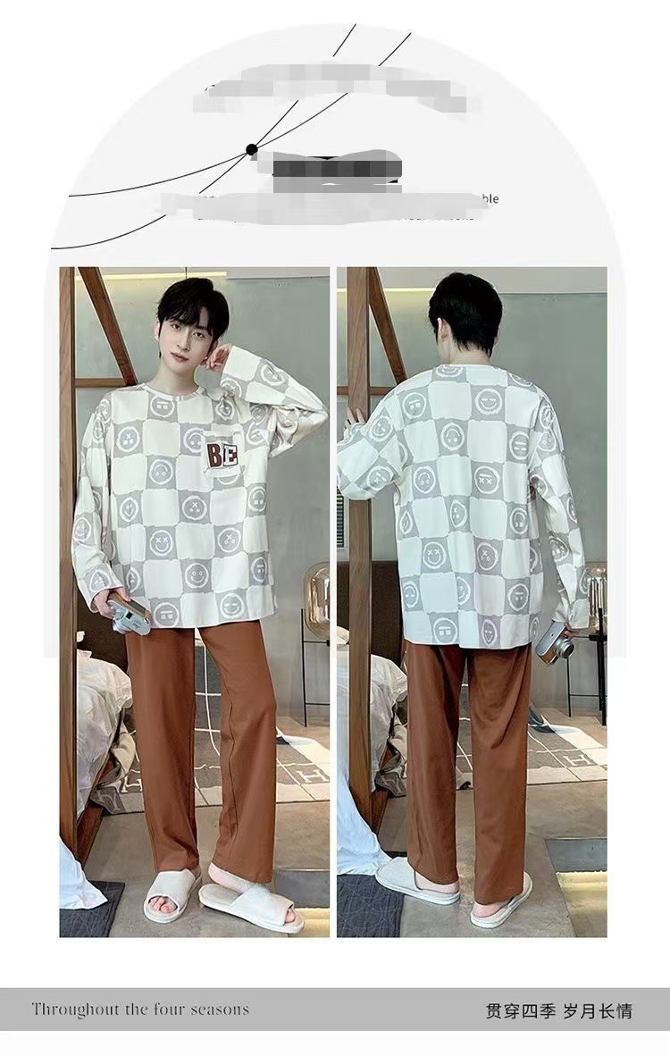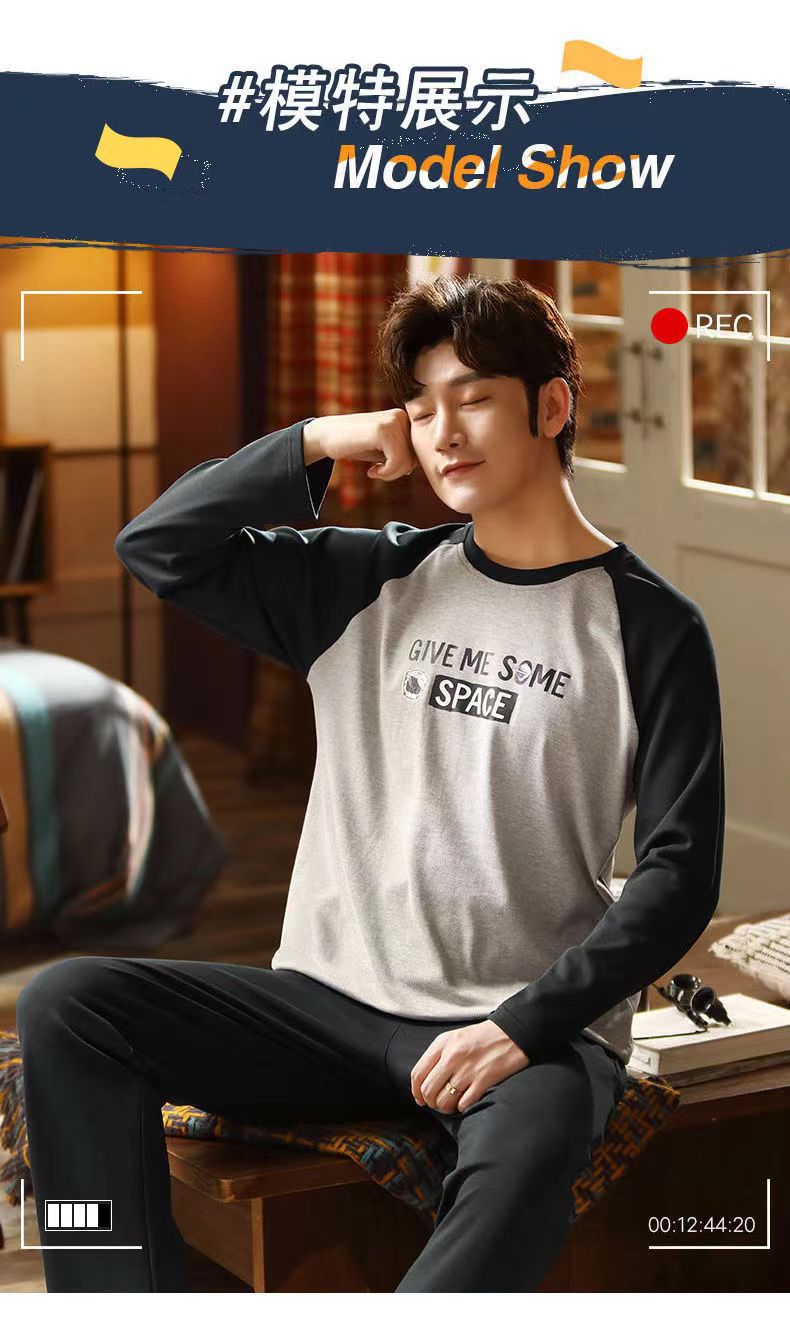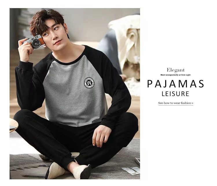 2026 pijamas de manga larga para hombres primavera y otoño simple chaqueta casual juvenil invierno set de ropa de hogar se puede usar para el comercio exterior