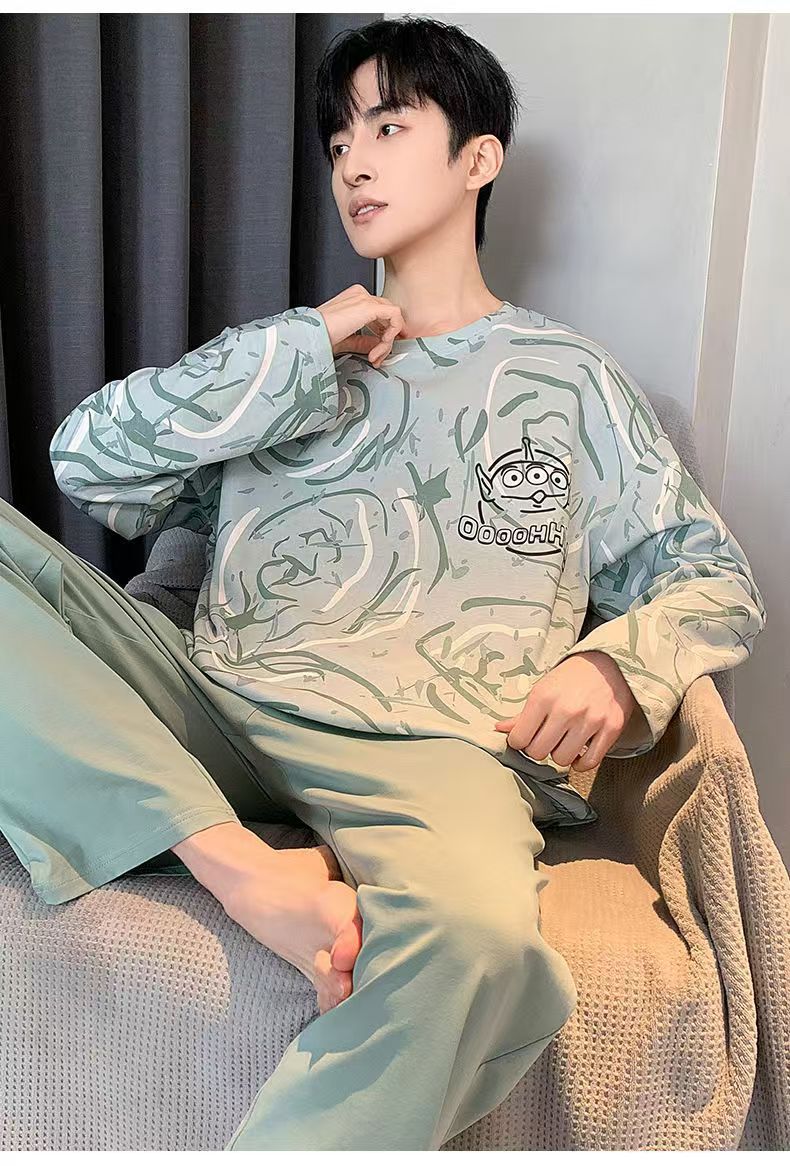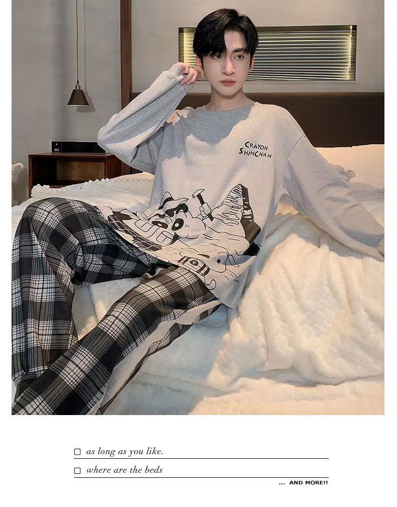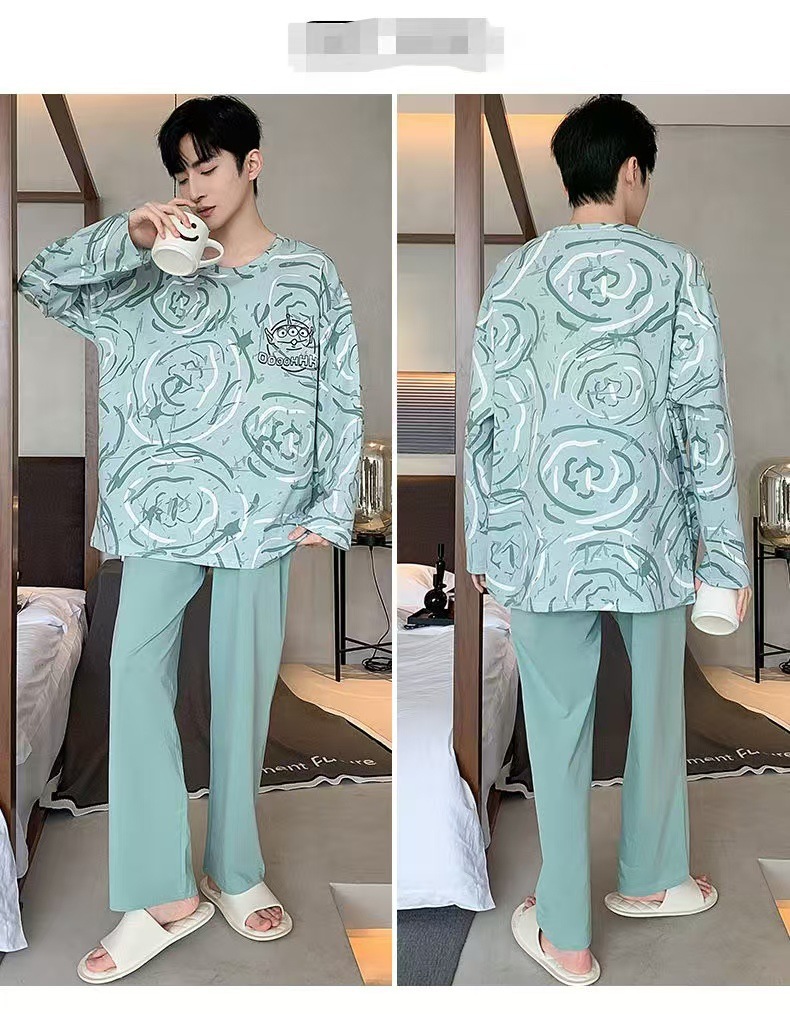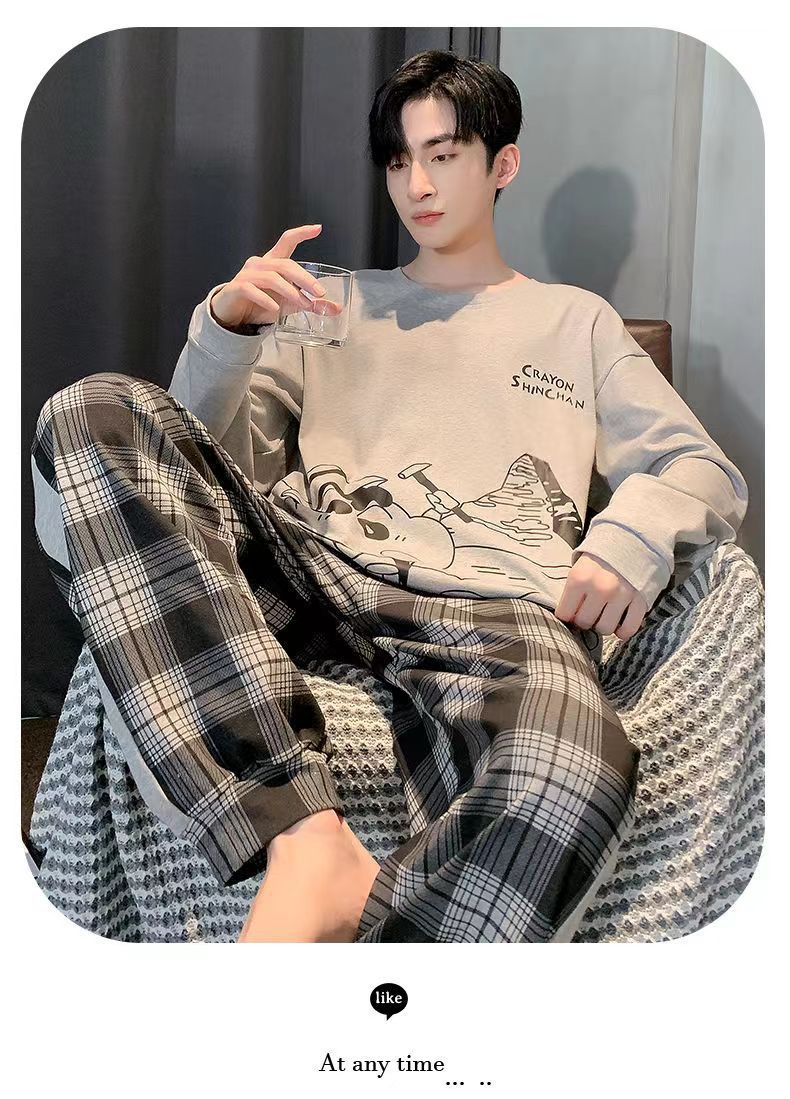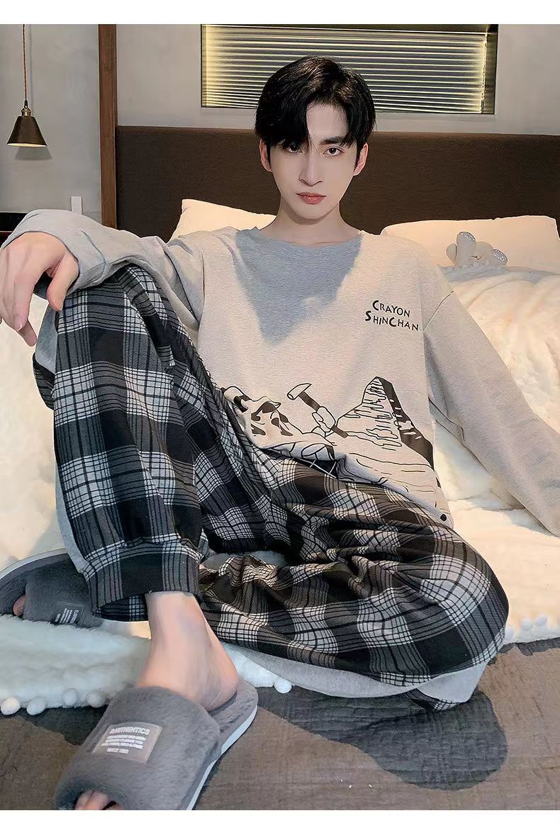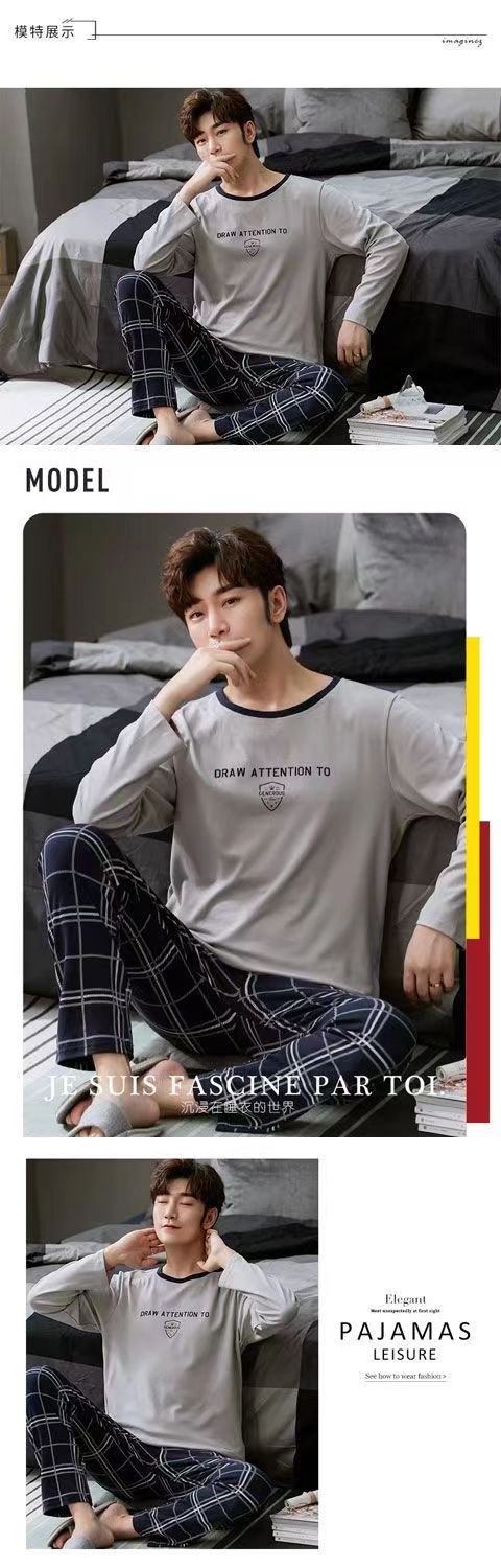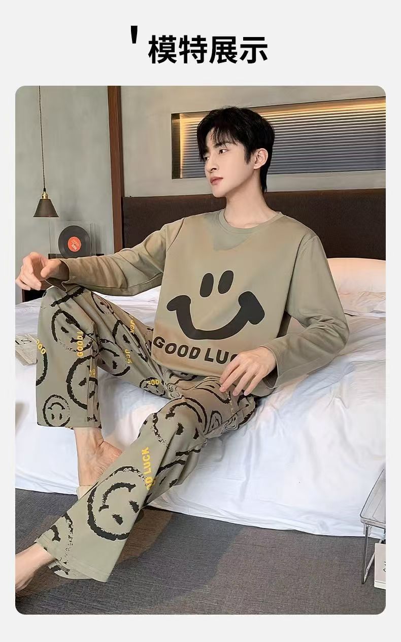 2026 pijamas de manga larga para hombres primavera y otoño simple chaqueta casual juvenil invierno set de ropa de hogar se puede usar para el comercio exterior