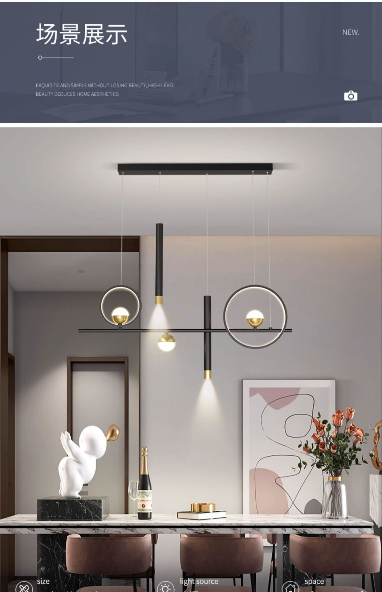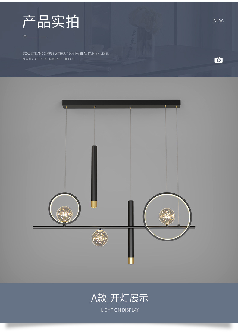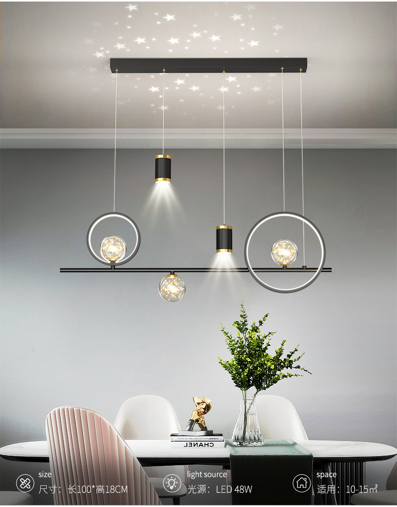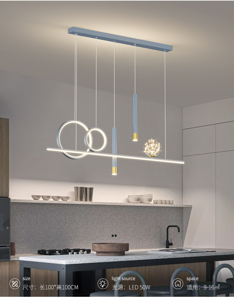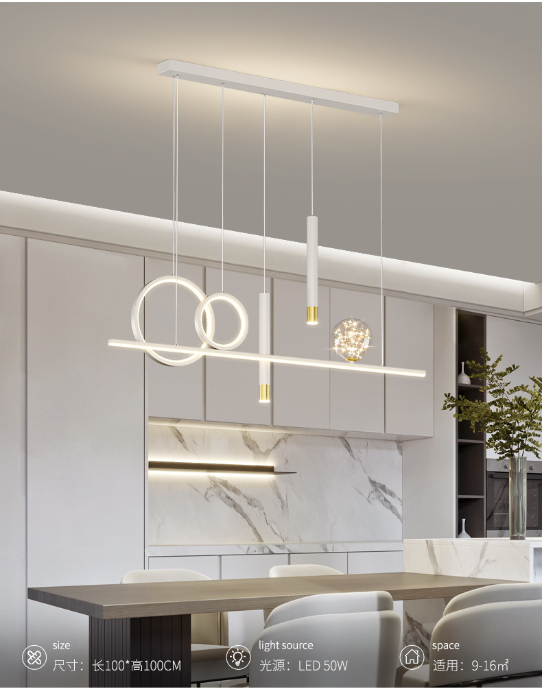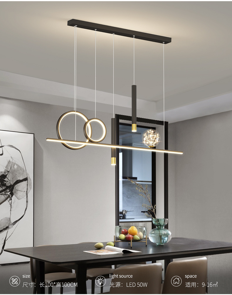 Chandelier de comedor moderno y simple 2024 nuevo bar doméstico de estilo pequeño mesa de comedor creativa minimalista lámpara de tira larga