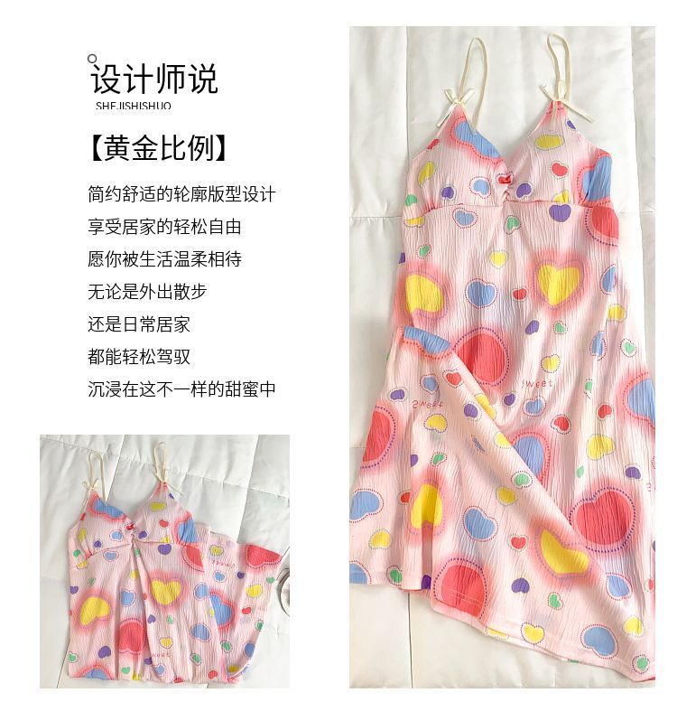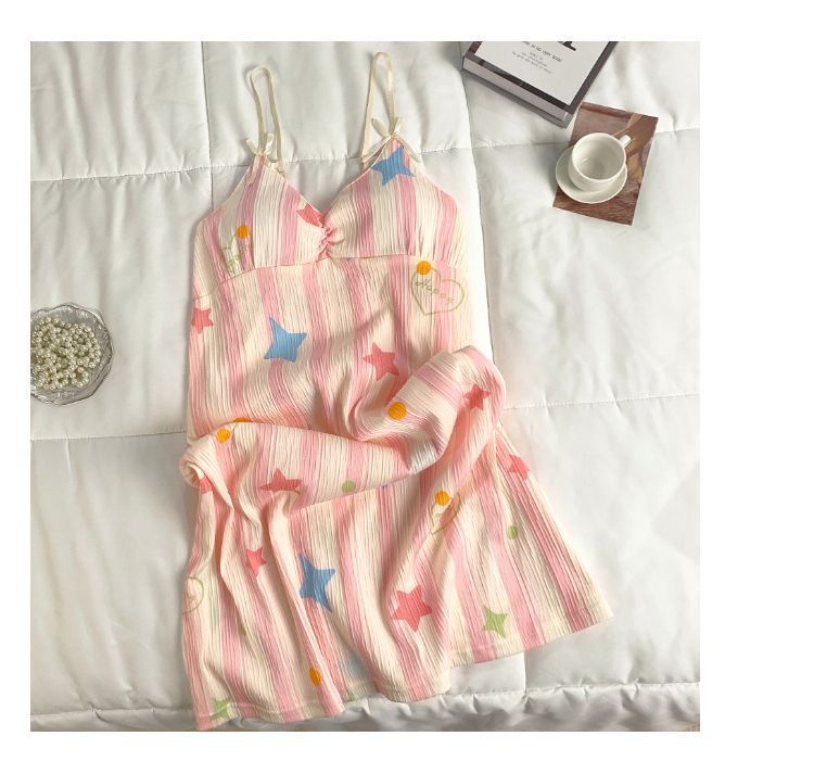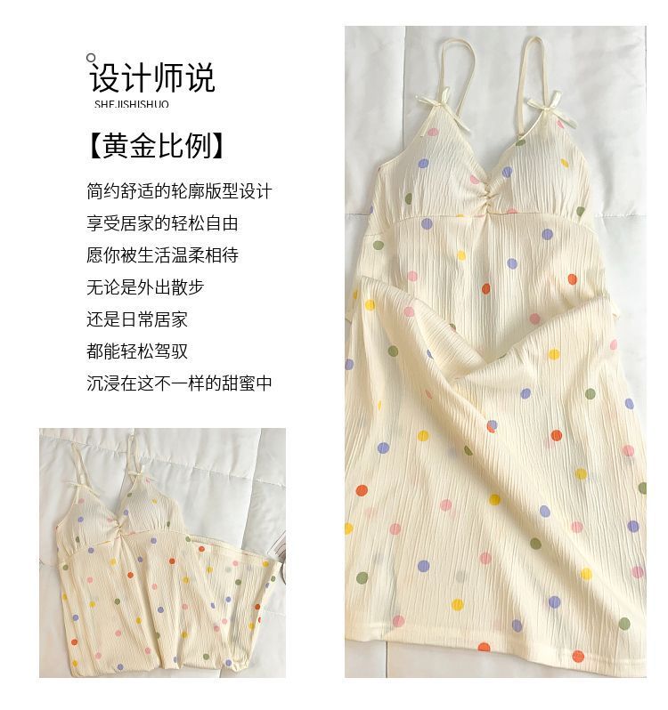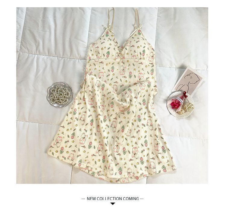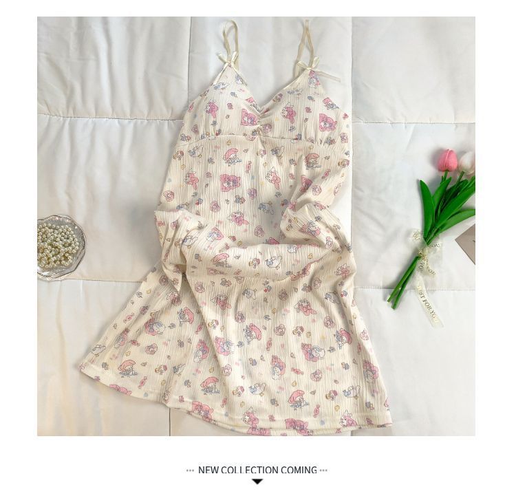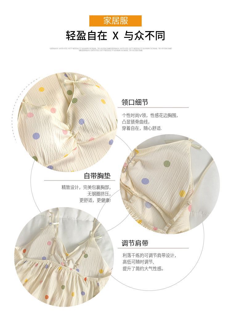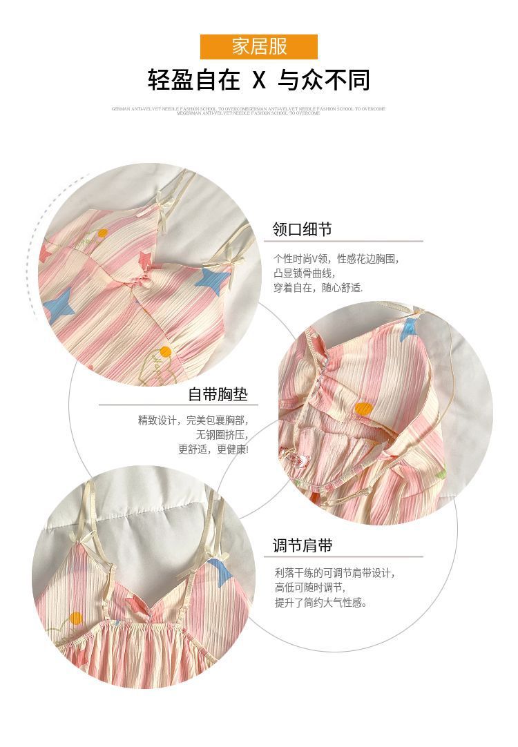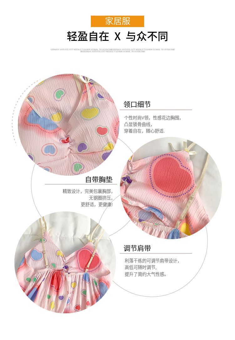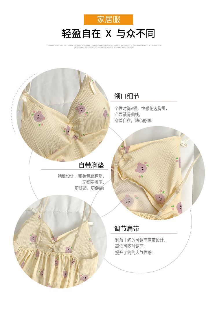 Pijama de verano giratorio desmontable con cojín de pecho dulce lindo vestido de algodón arrugado ropa para el hogar