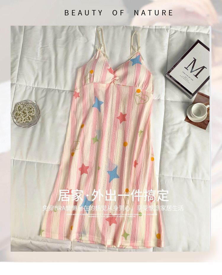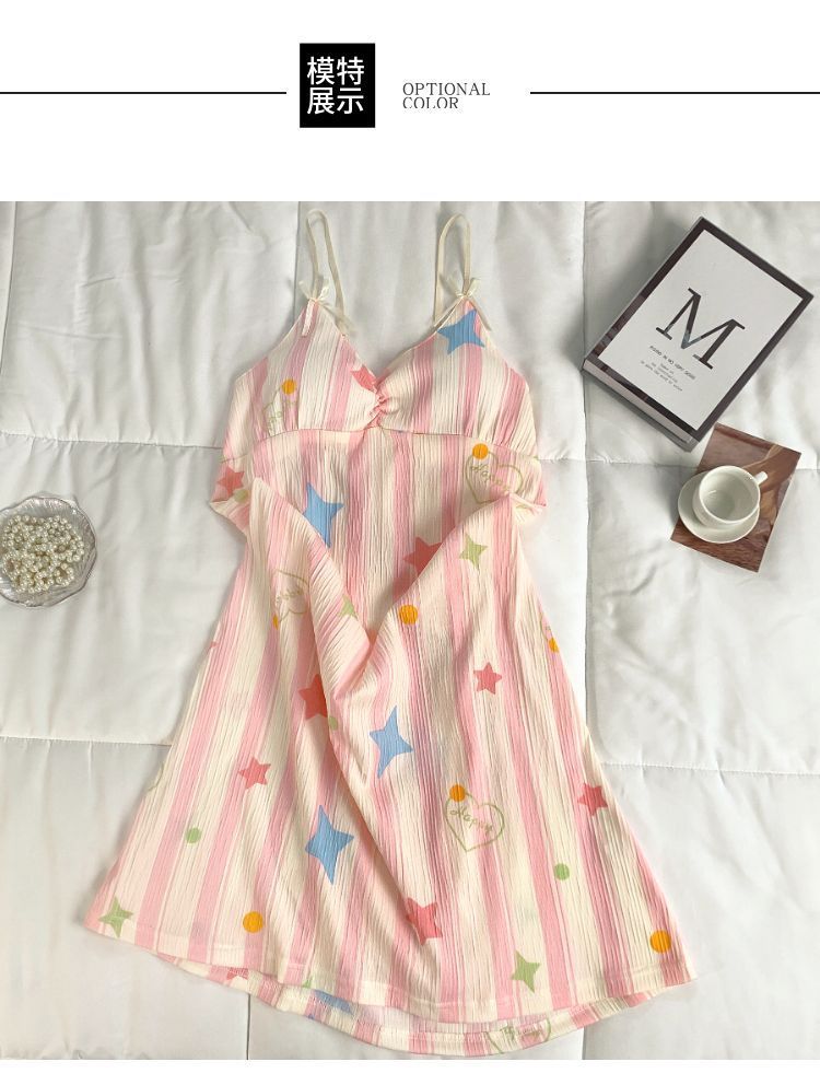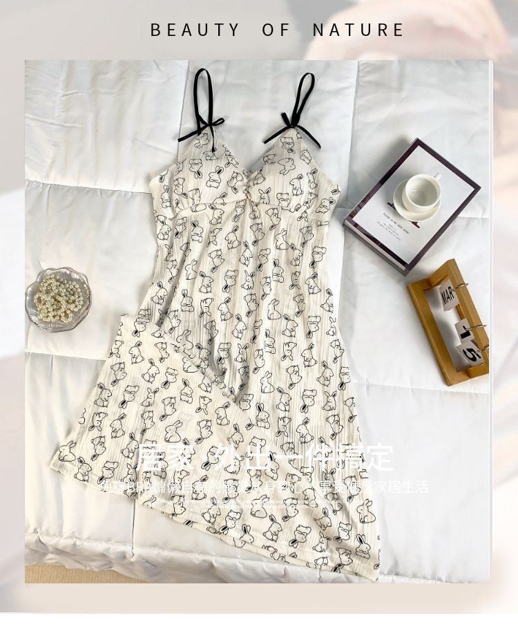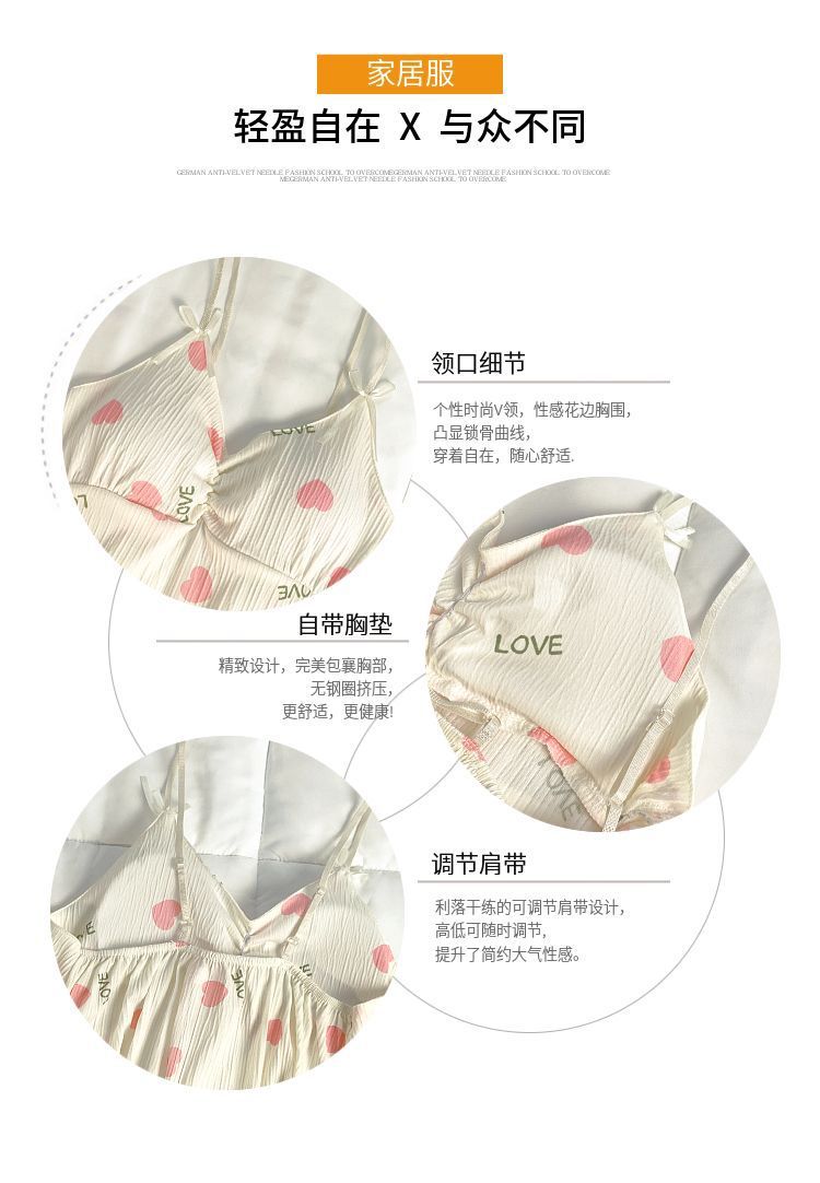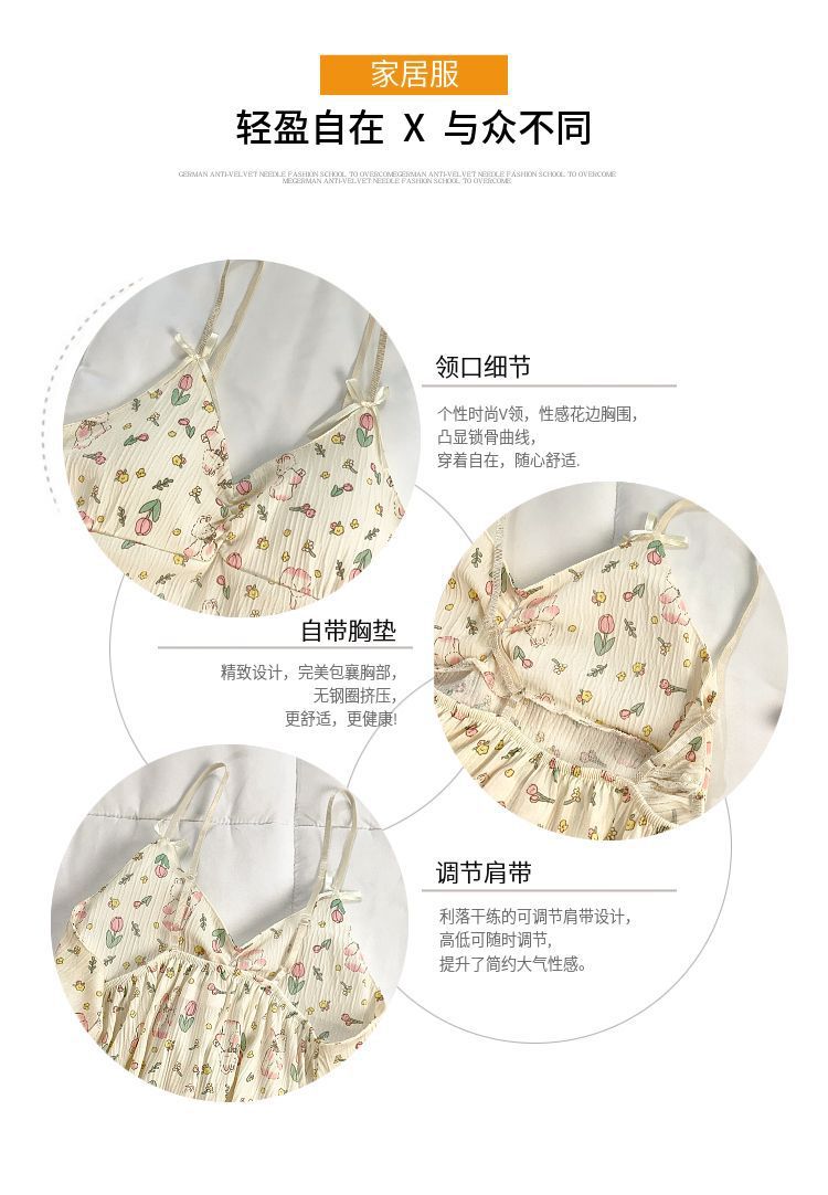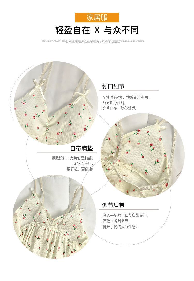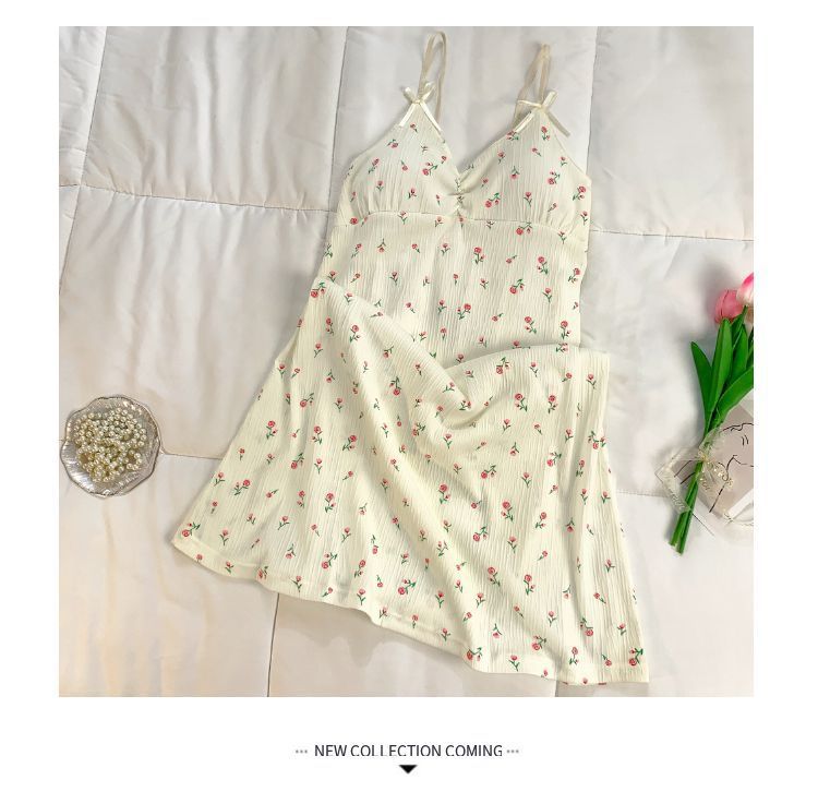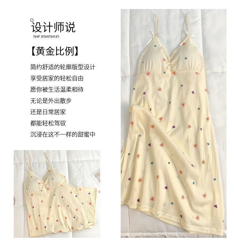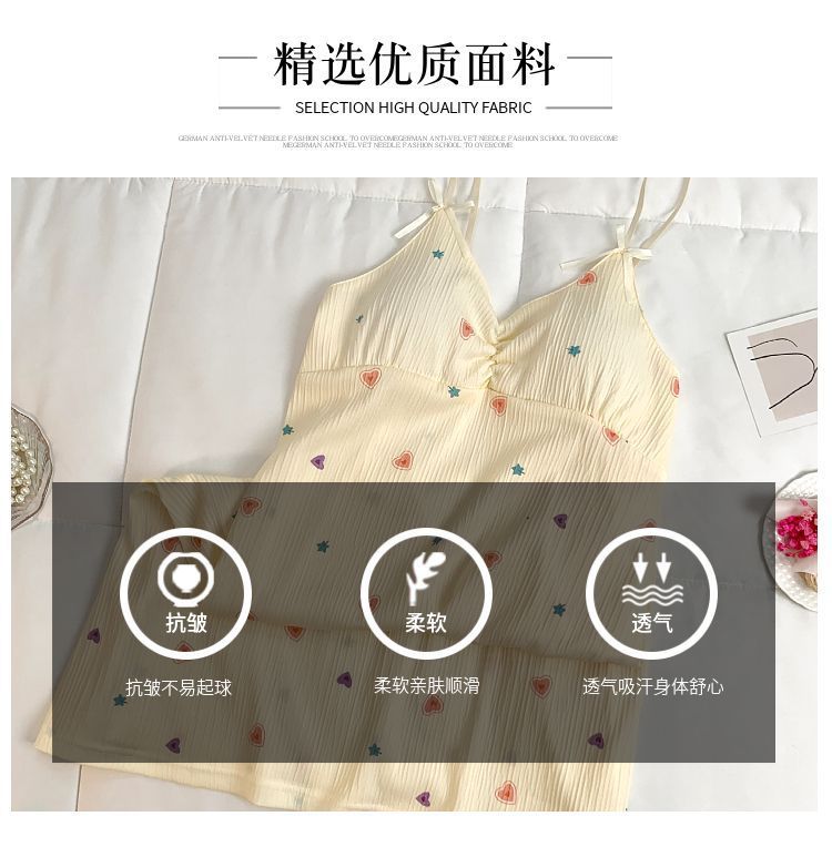 Pijama de verano giratorio desmontable con cojín de pecho dulce lindo vestido de algodón arrugado ropa para el hogar