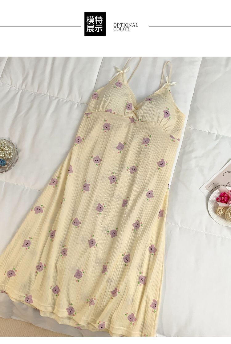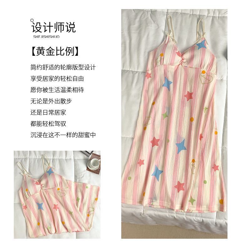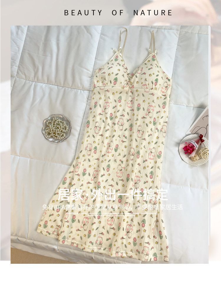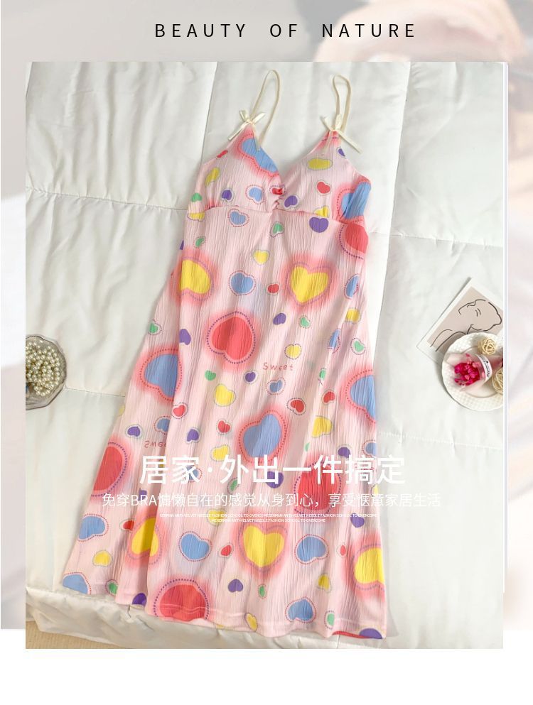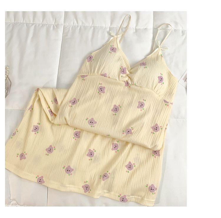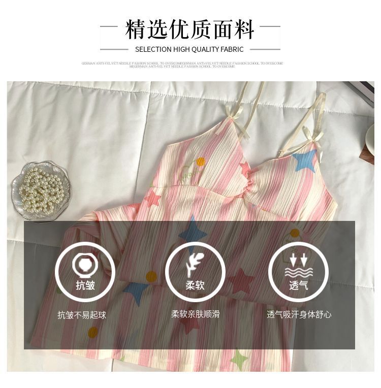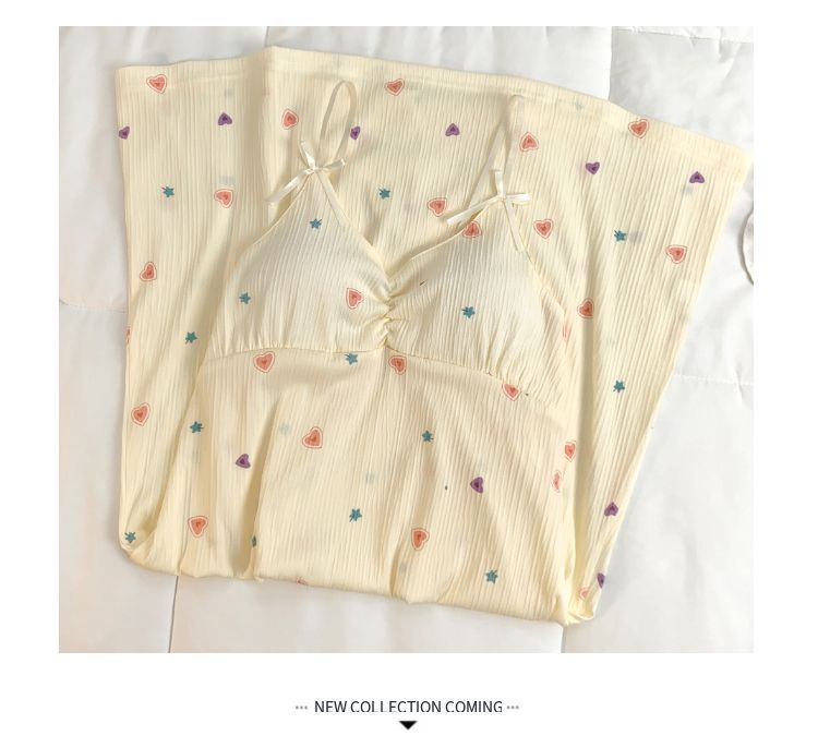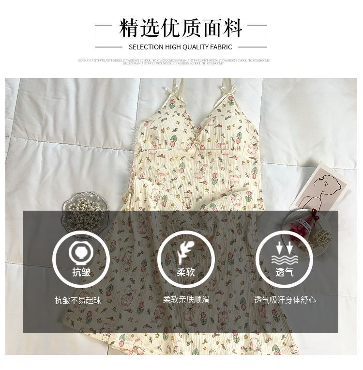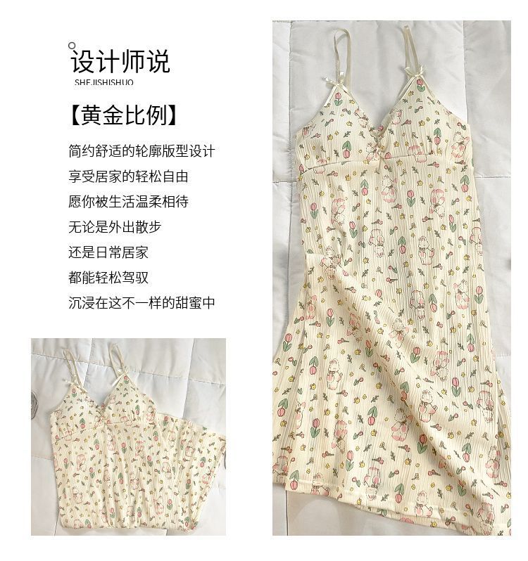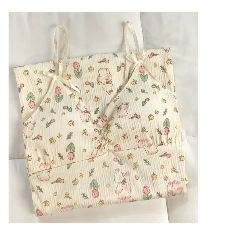 Pijama de verano giratorio desmontable con cojín de pecho dulce lindo vestido de algodón arrugado ropa para el hogar