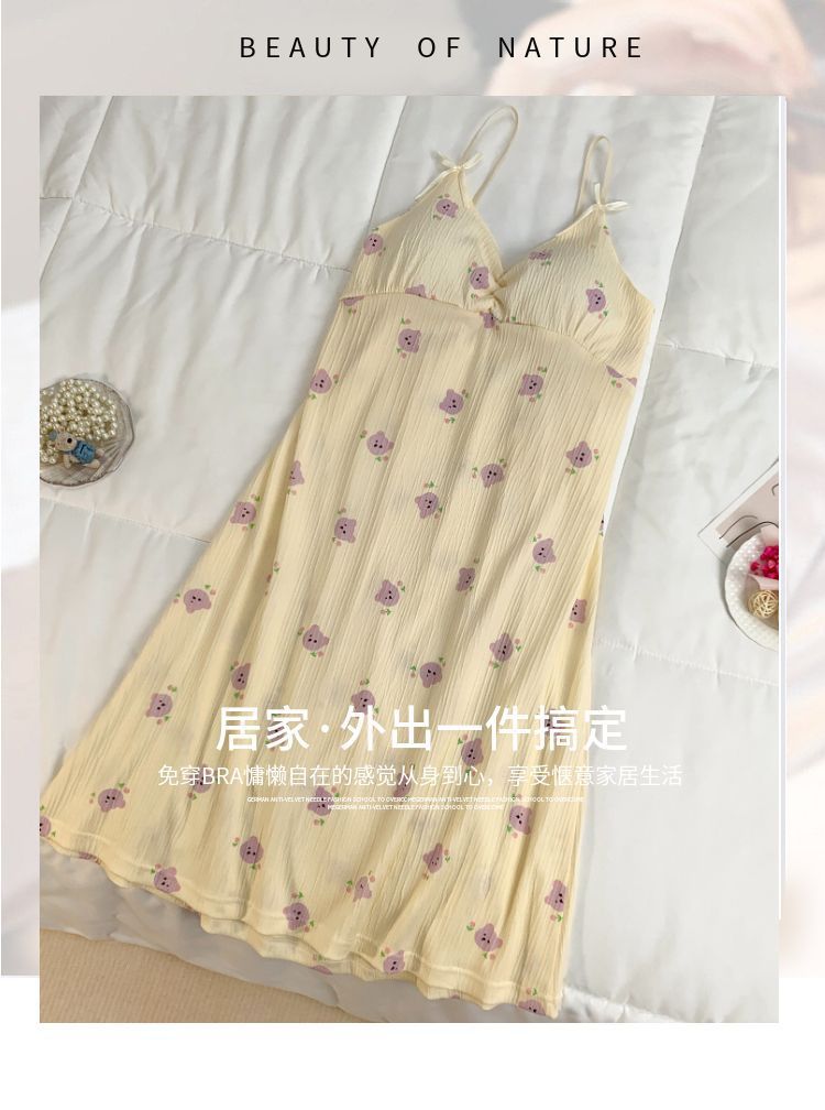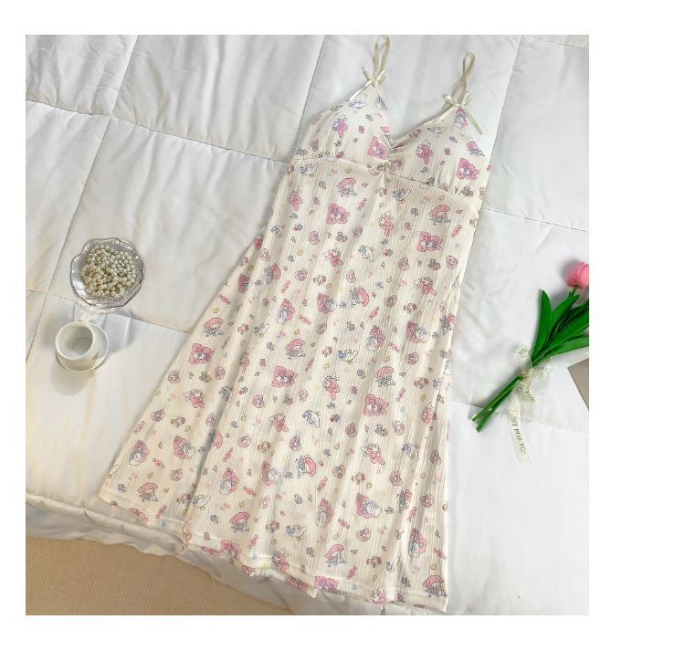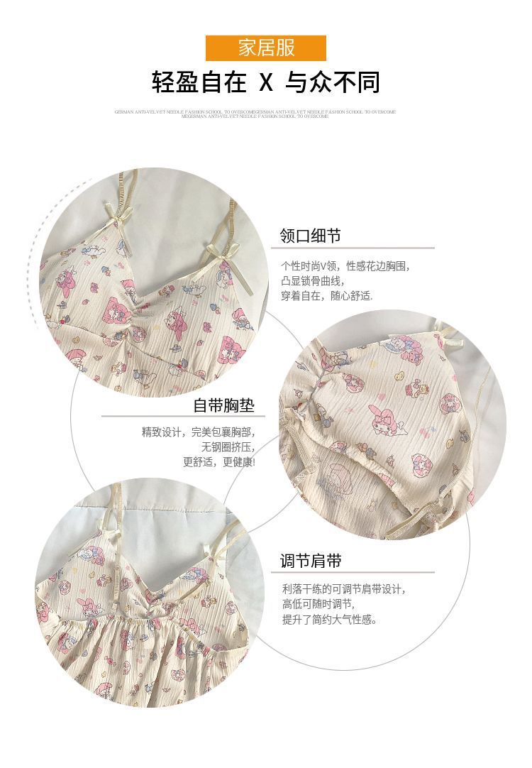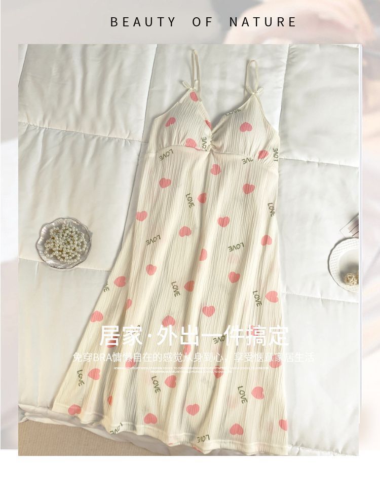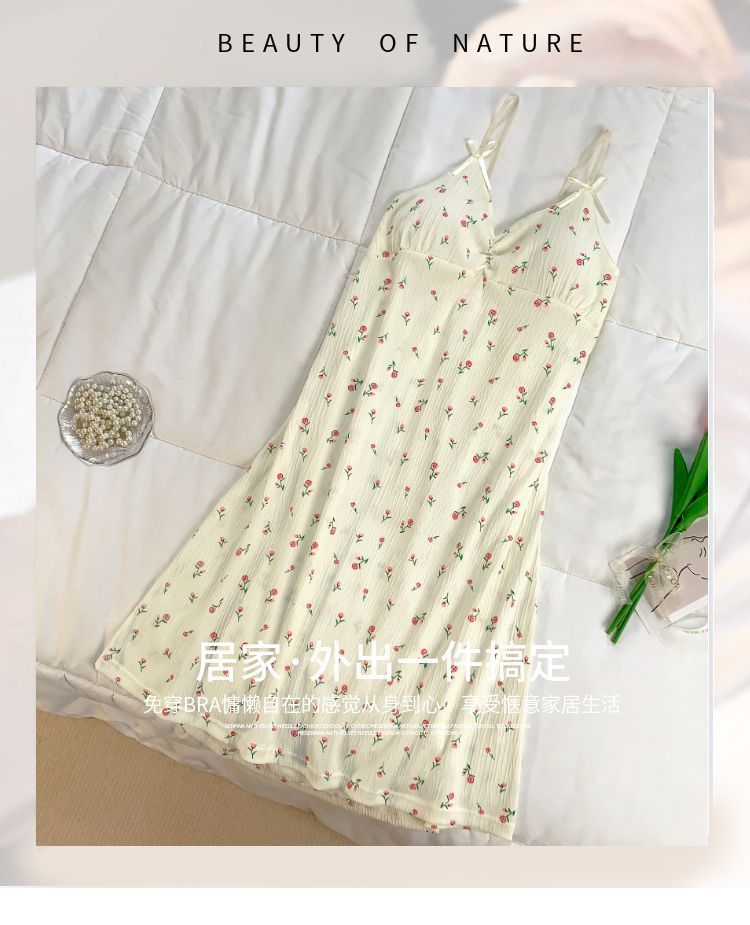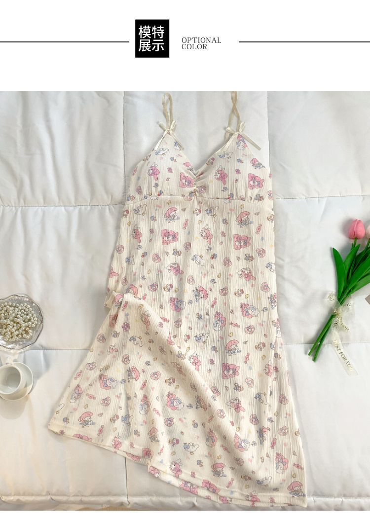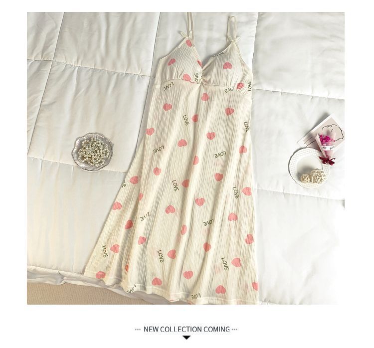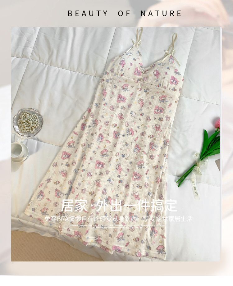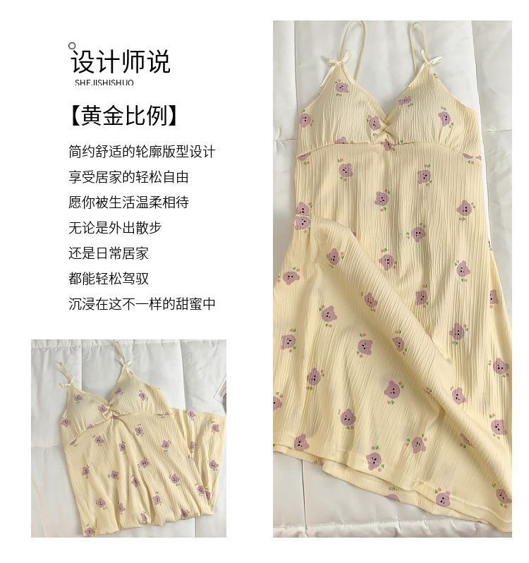 Pijama de verano giratorio desmontable con cojín de pecho dulce lindo vestido de algodón arrugado ropa para el hogar