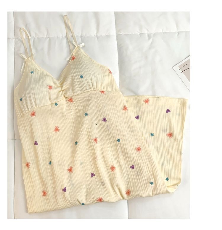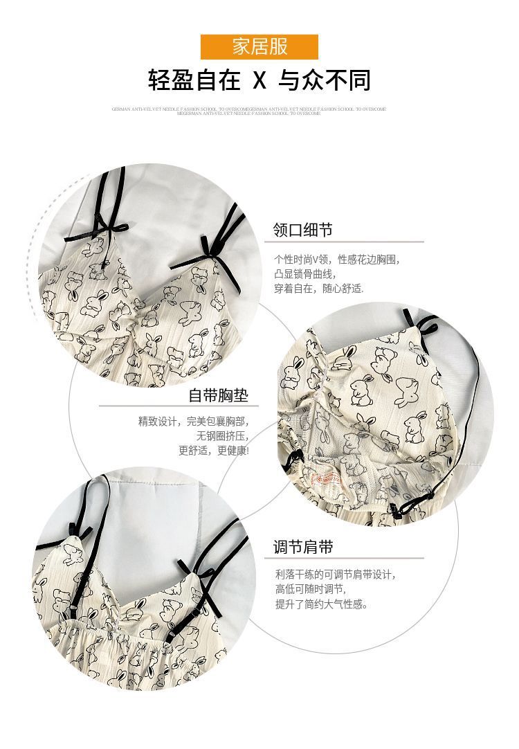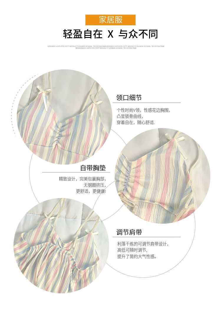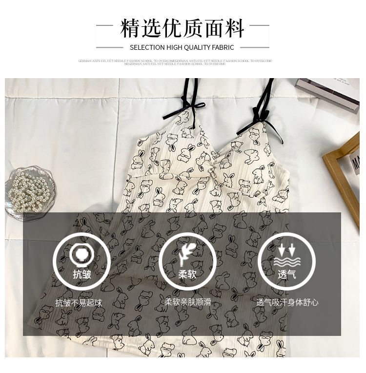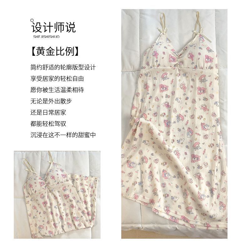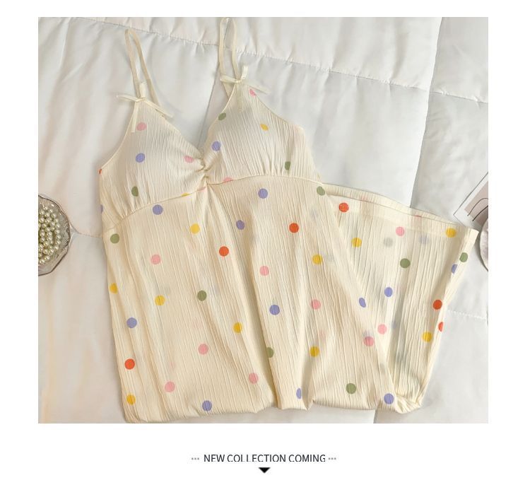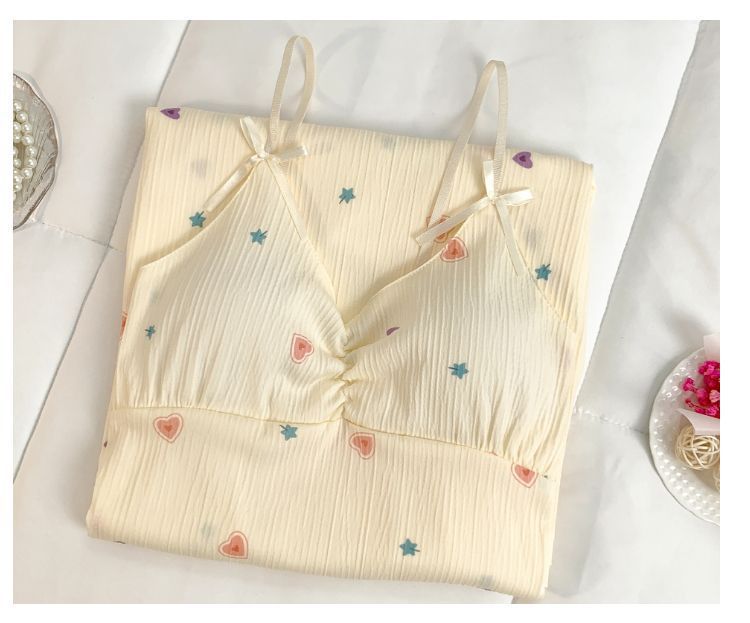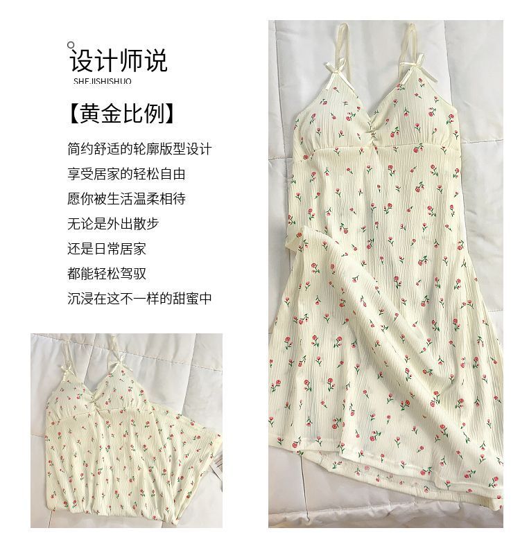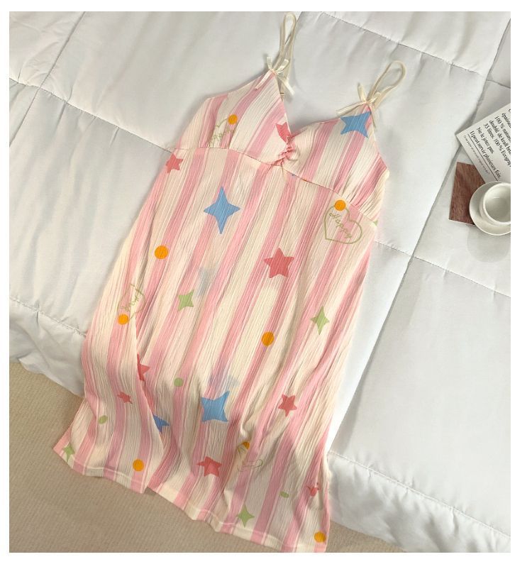 Pijama de verano giratorio desmontable con cojín de pecho dulce lindo vestido de algodón arrugado ropa para el hogar