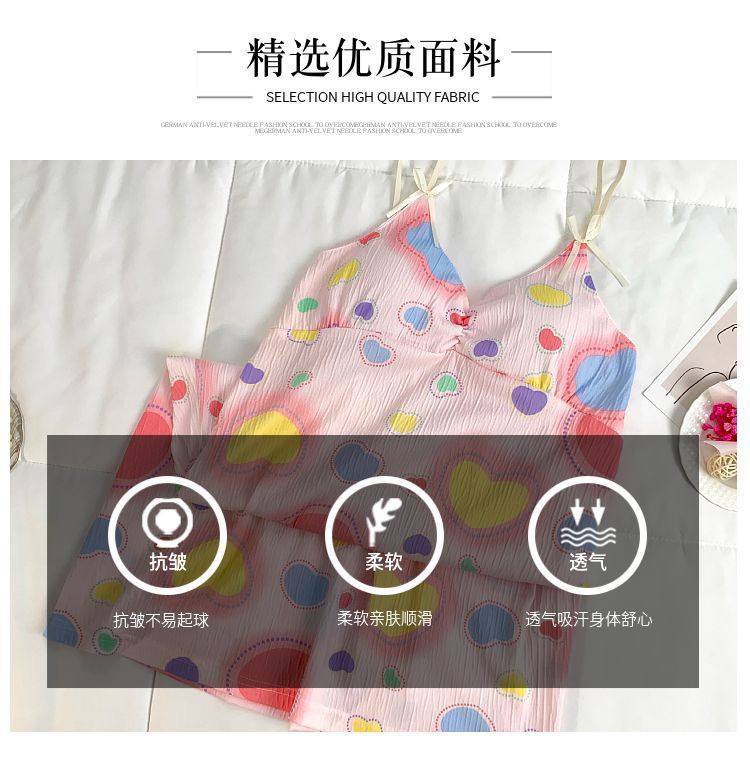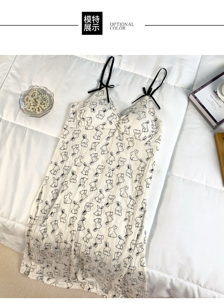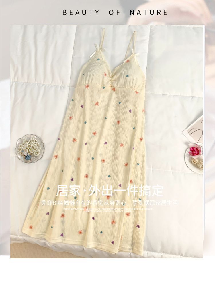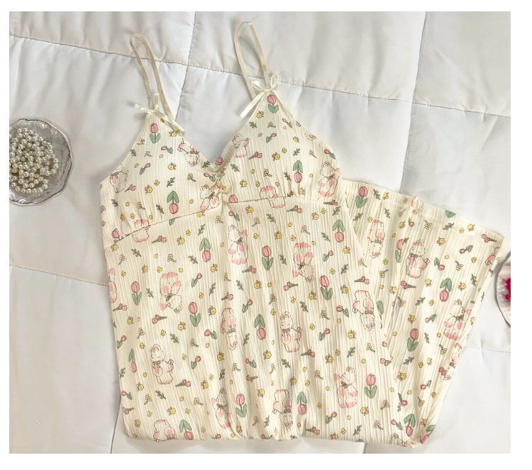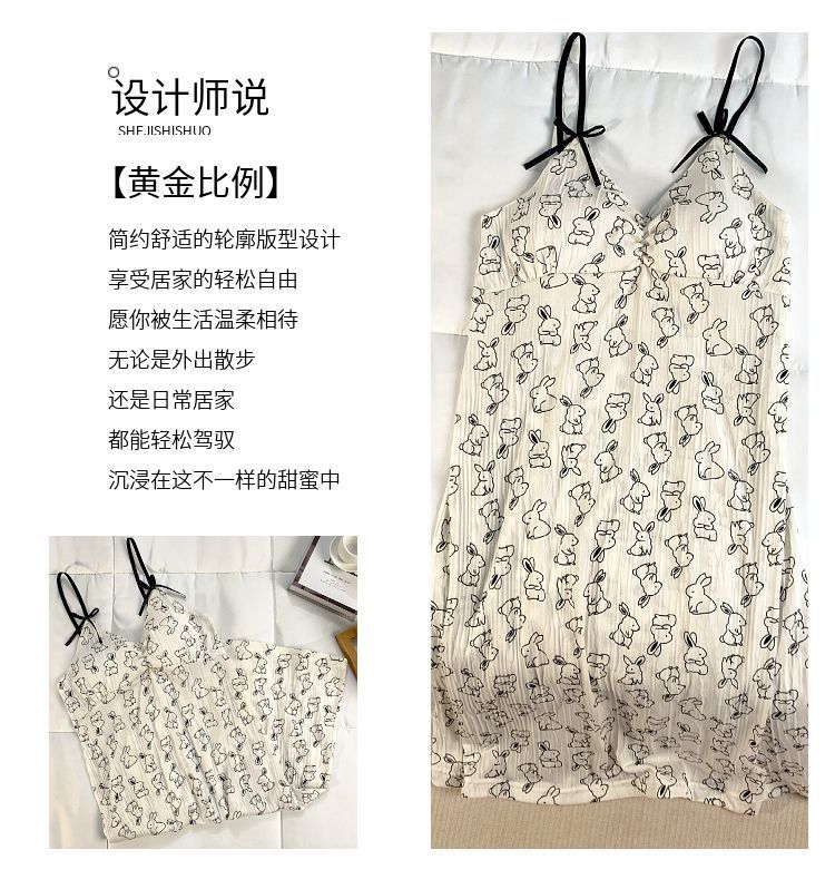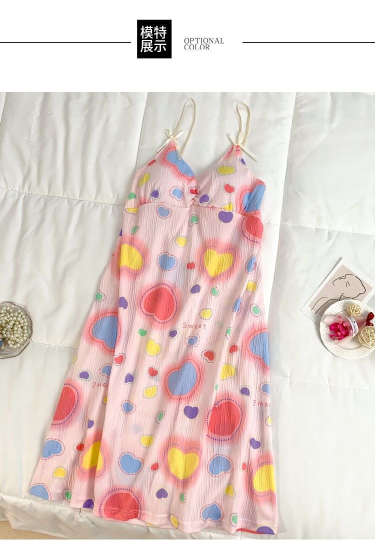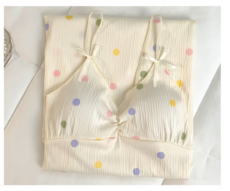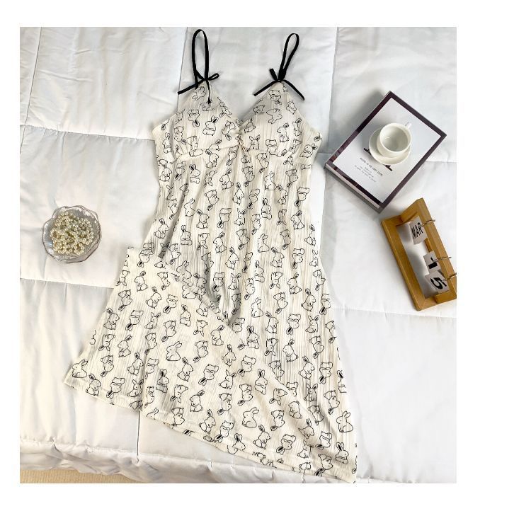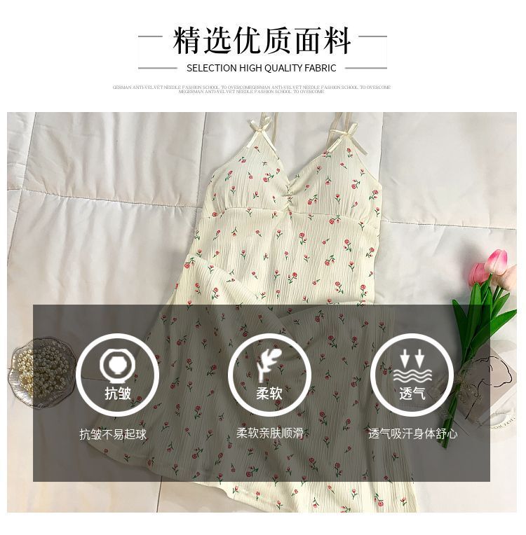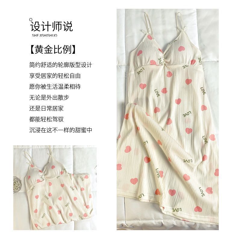 Pijama de verano giratorio desmontable con cojín de pecho dulce lindo vestido de algodón arrugado ropa para el hogar
