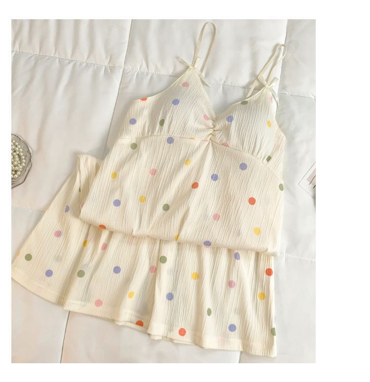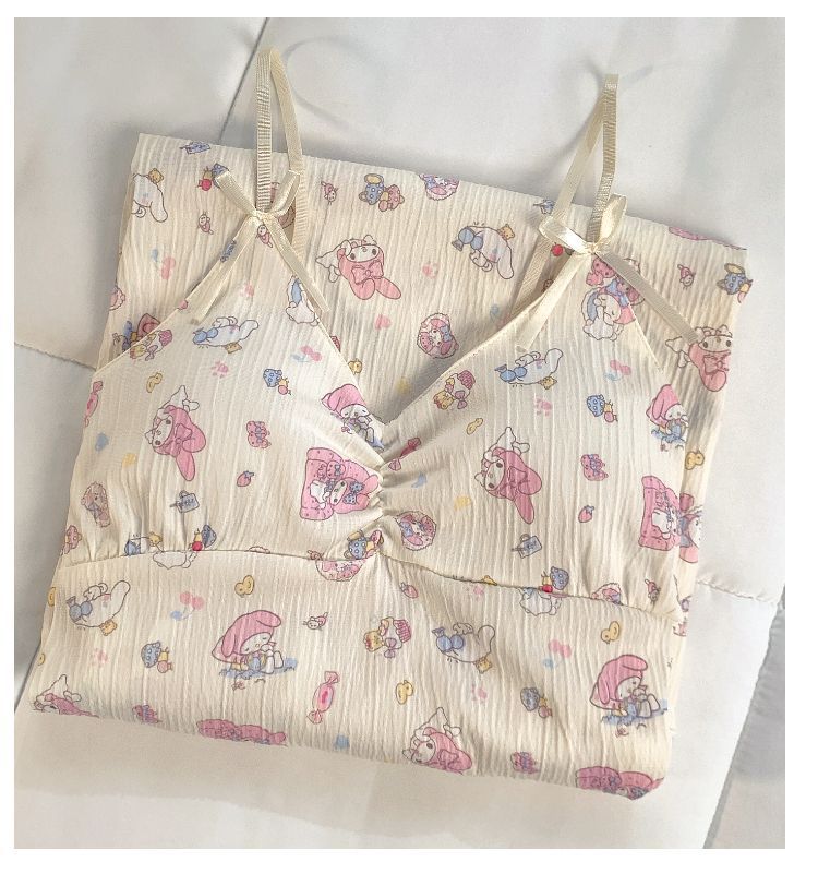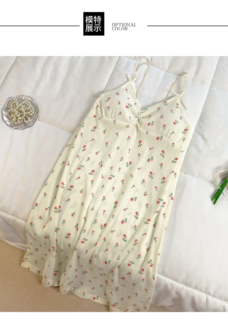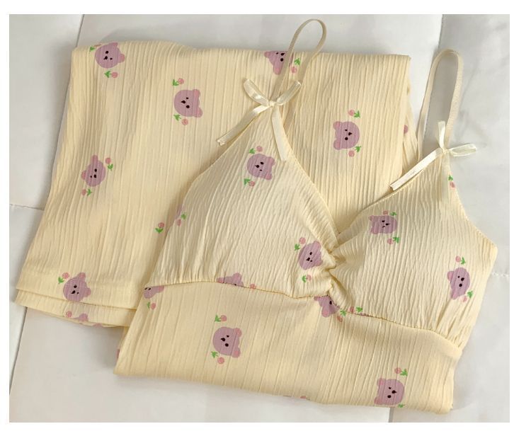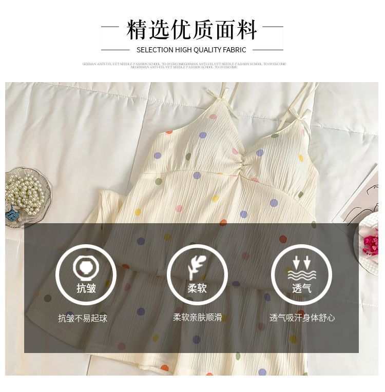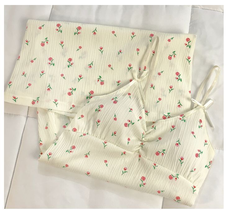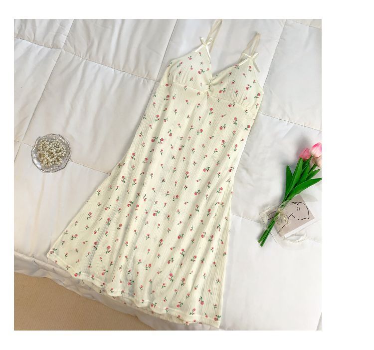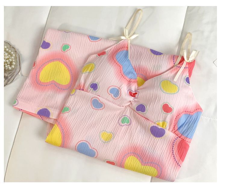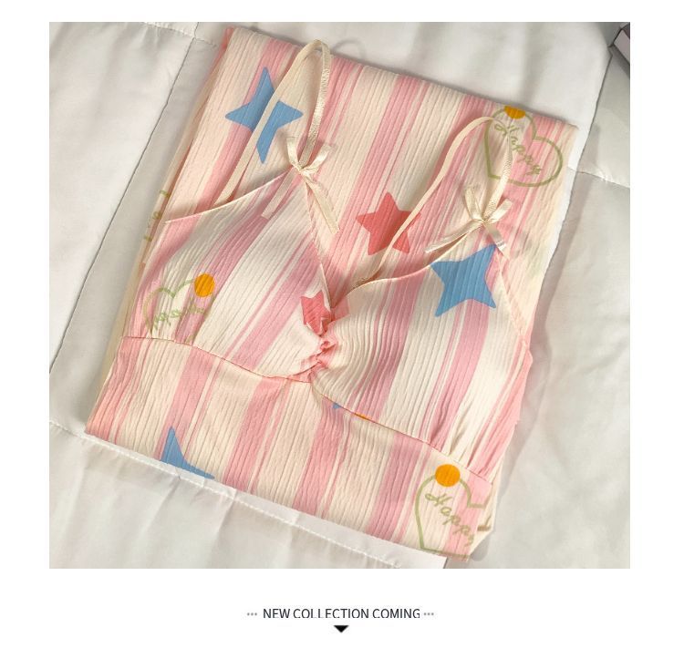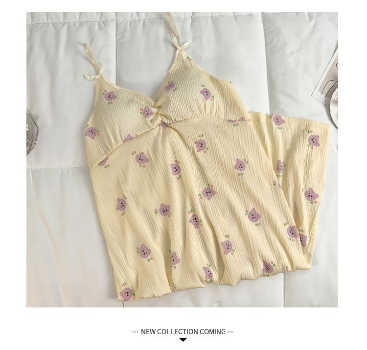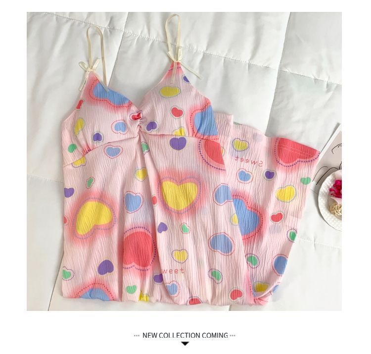 Pijama de verano giratorio desmontable con cojín de pecho dulce lindo vestido de algodón arrugado ropa para el hogar