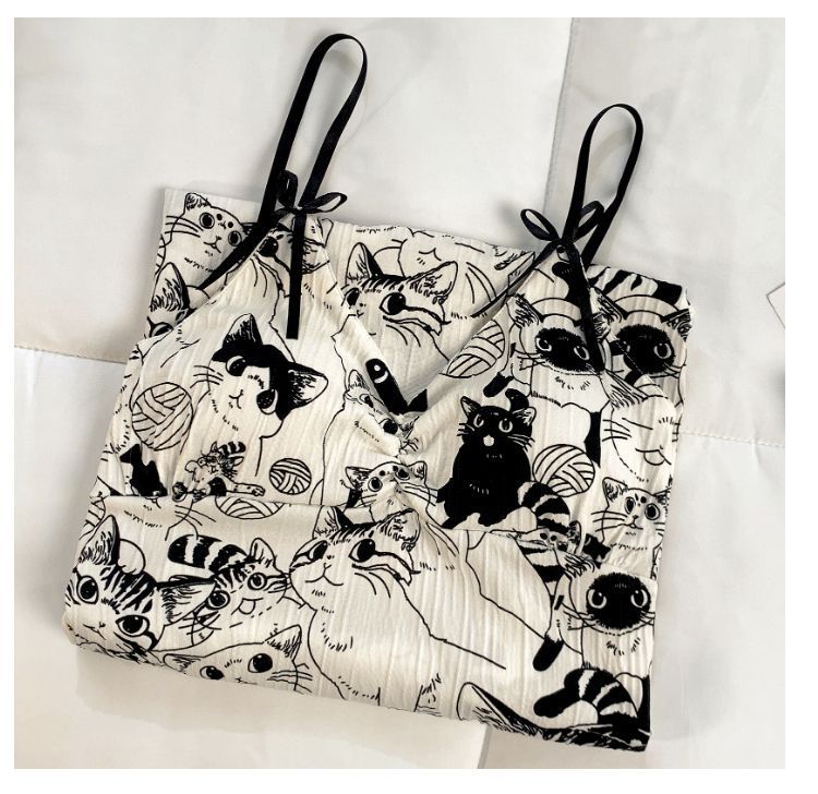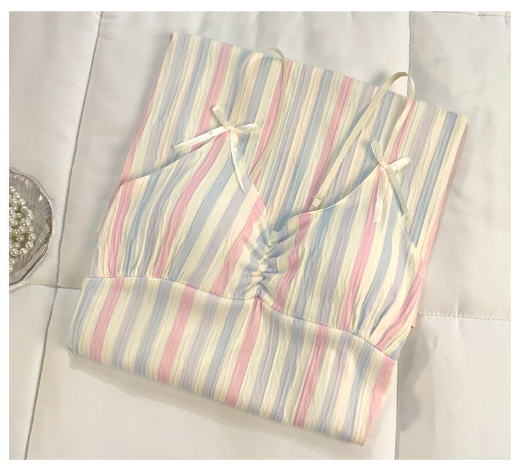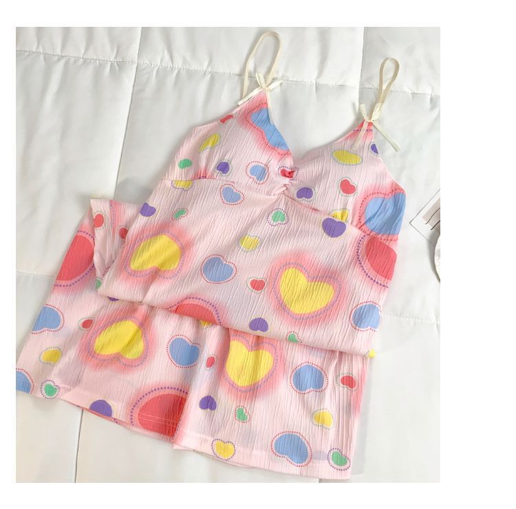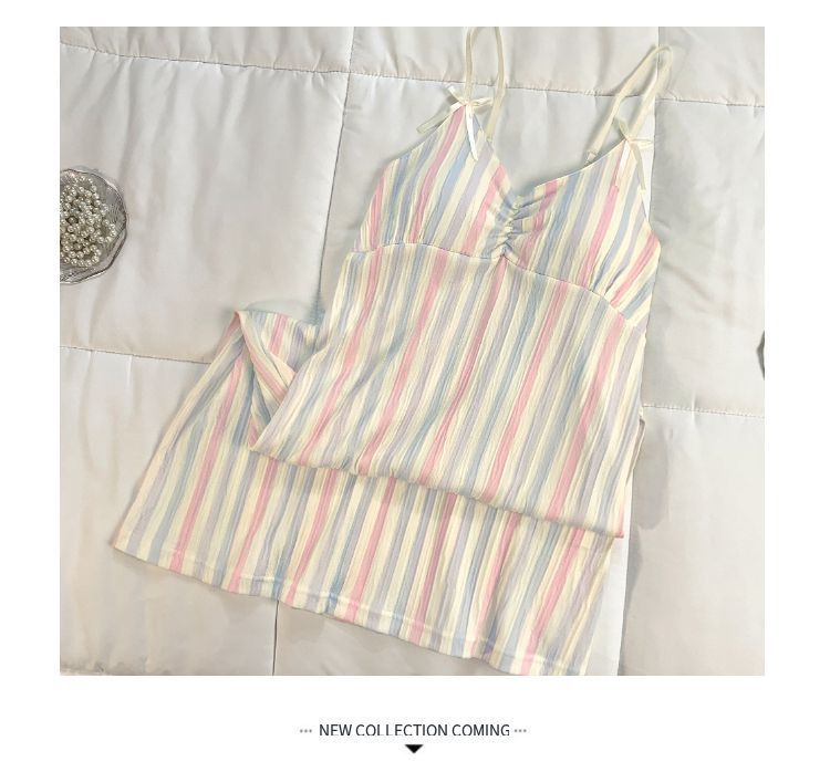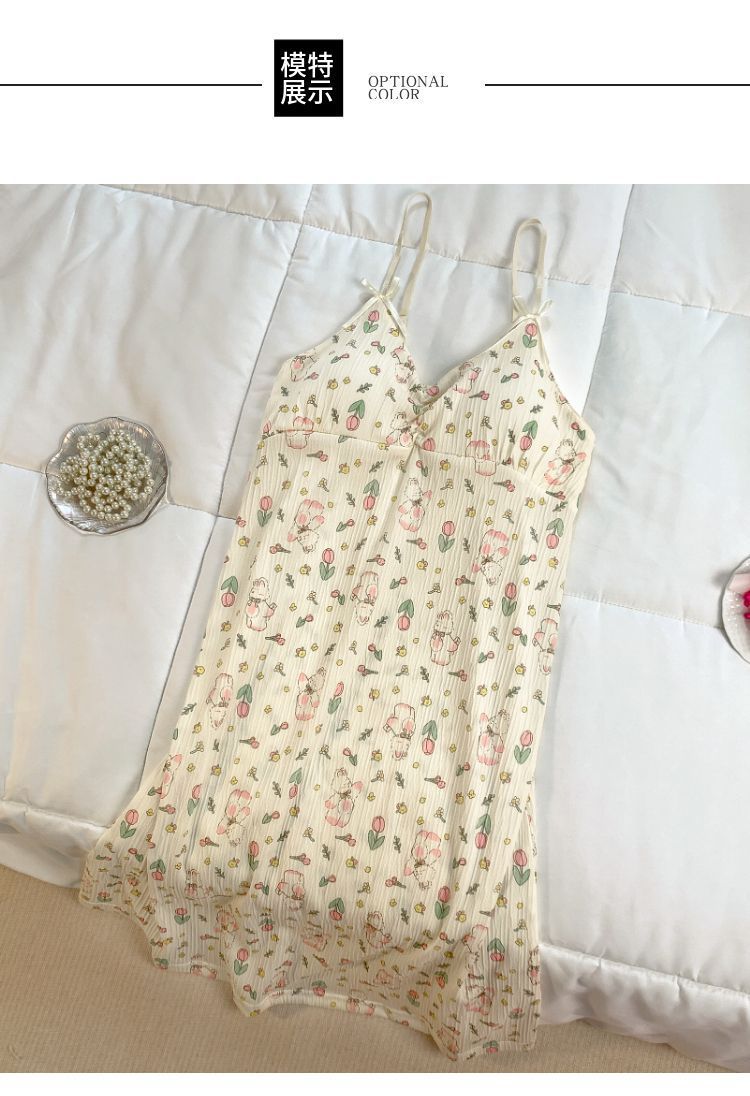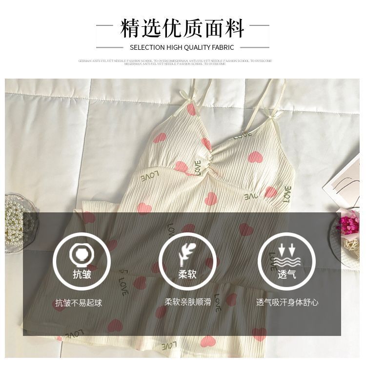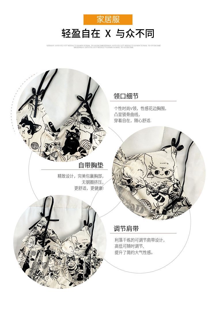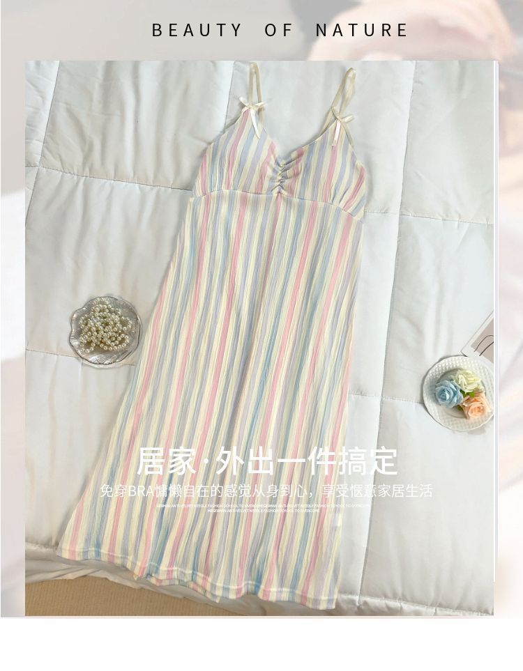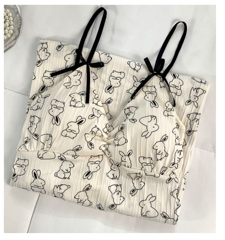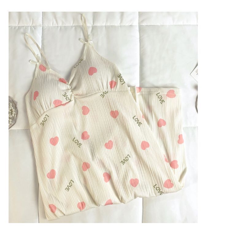 Pijama de verano giratorio desmontable con cojín de pecho dulce lindo vestido de algodón arrugado ropa para el hogar
