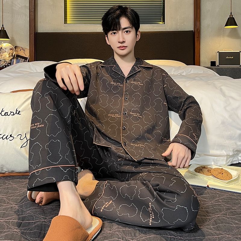 2025 pijama de primavera hombre juvenil de mediana edad, set de algodón de manga larga cardigan de manga larga ropa casera mayorista