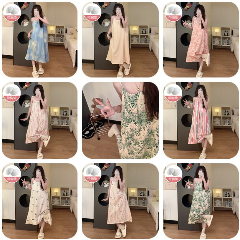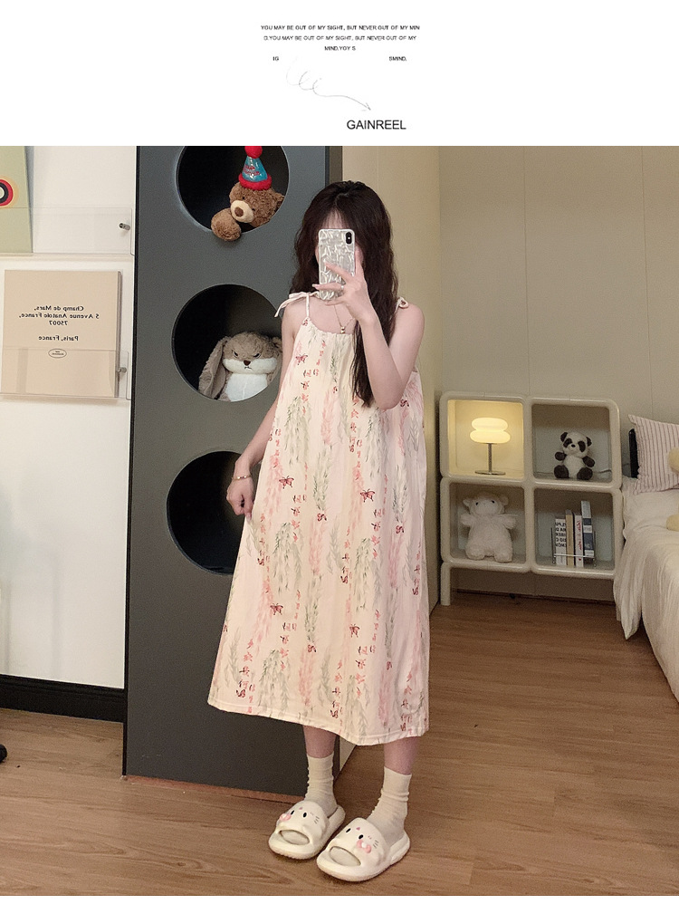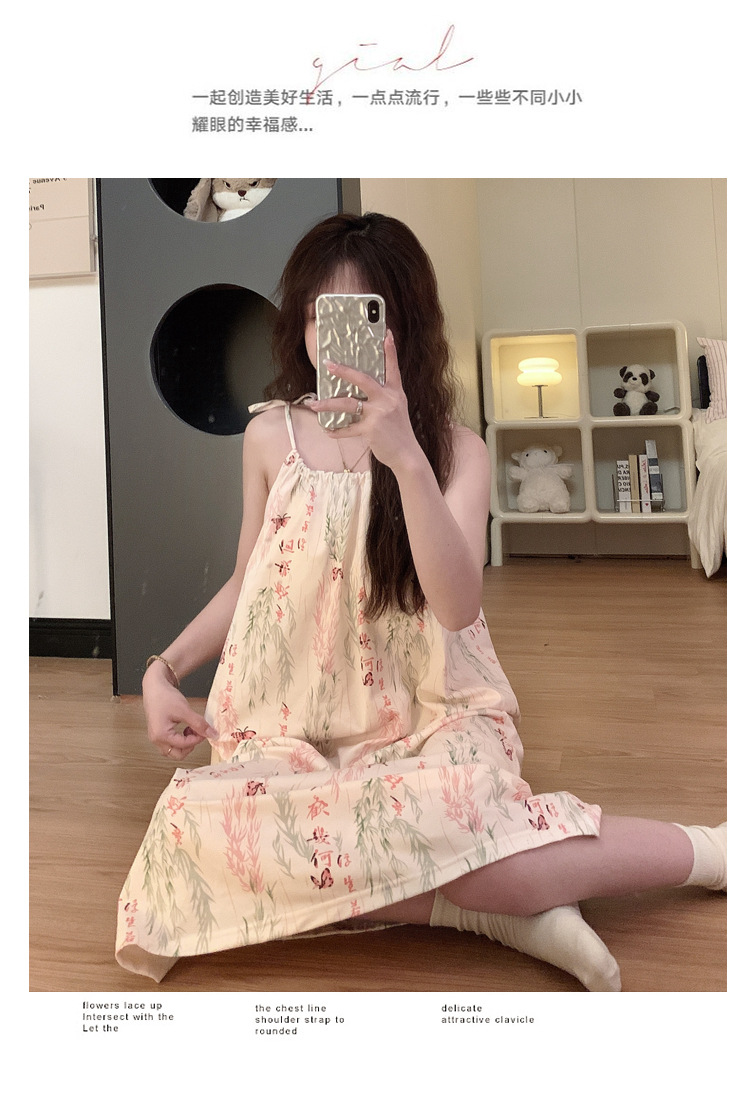 Pijamas de verano, ropa de dormir de cinturón de pecho delgada, ropa de dormir de estudiantes frescos, ropa de algodón al por mayor.