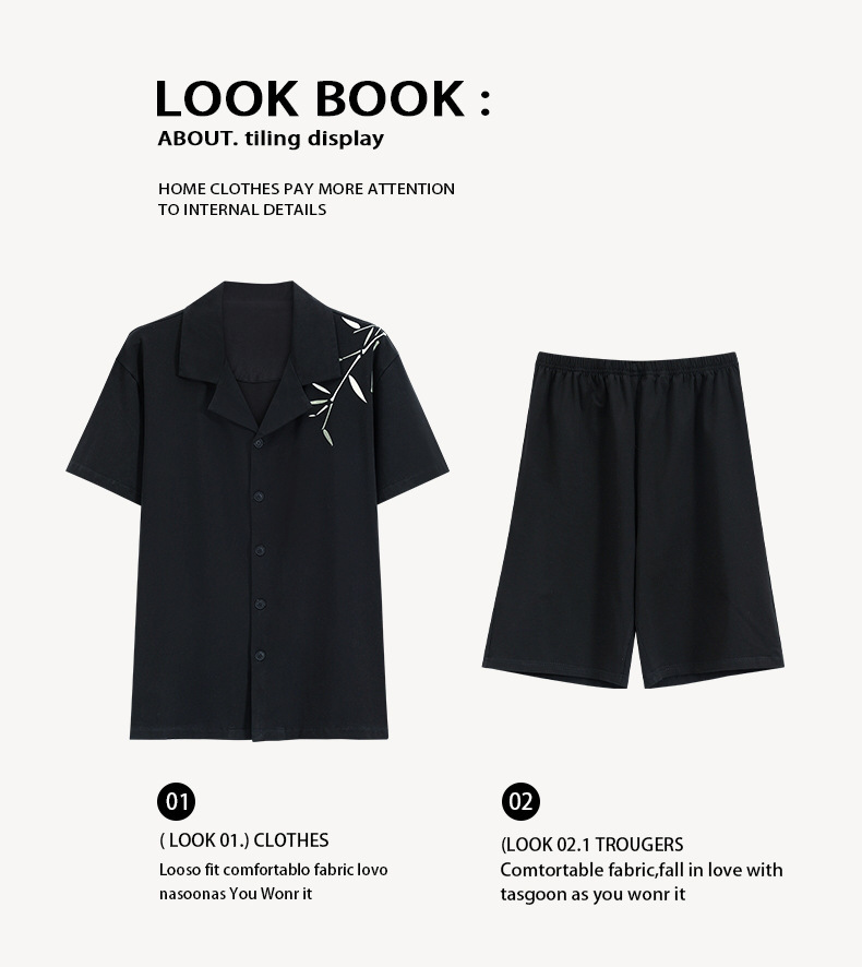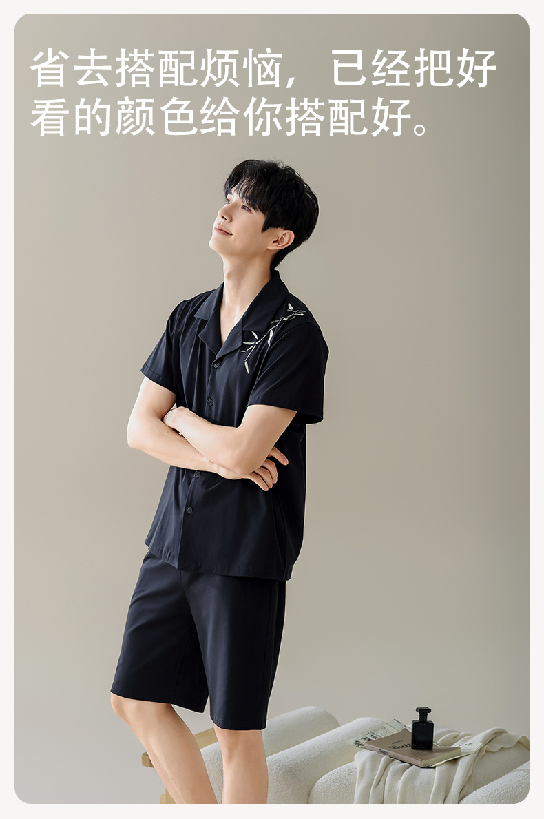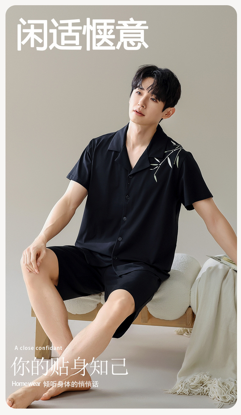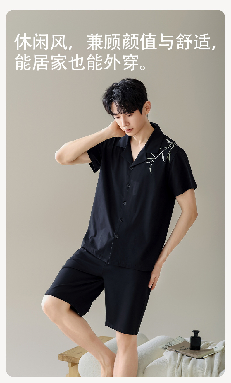 2025 verano pantalones cortos de manga corta pijama hombre bordado delgado algodón ropa casera casal de color sólido dos piezas de ropa exterior