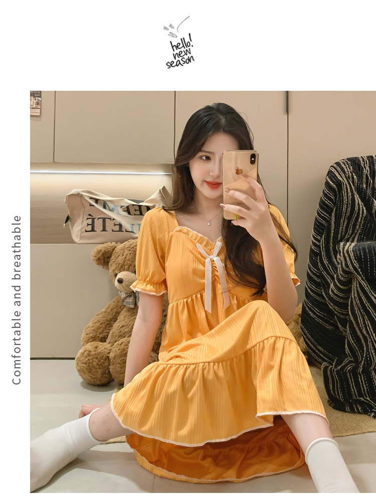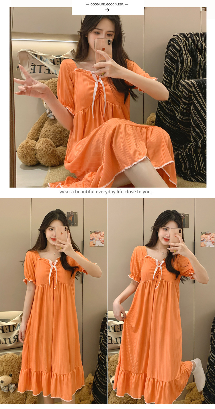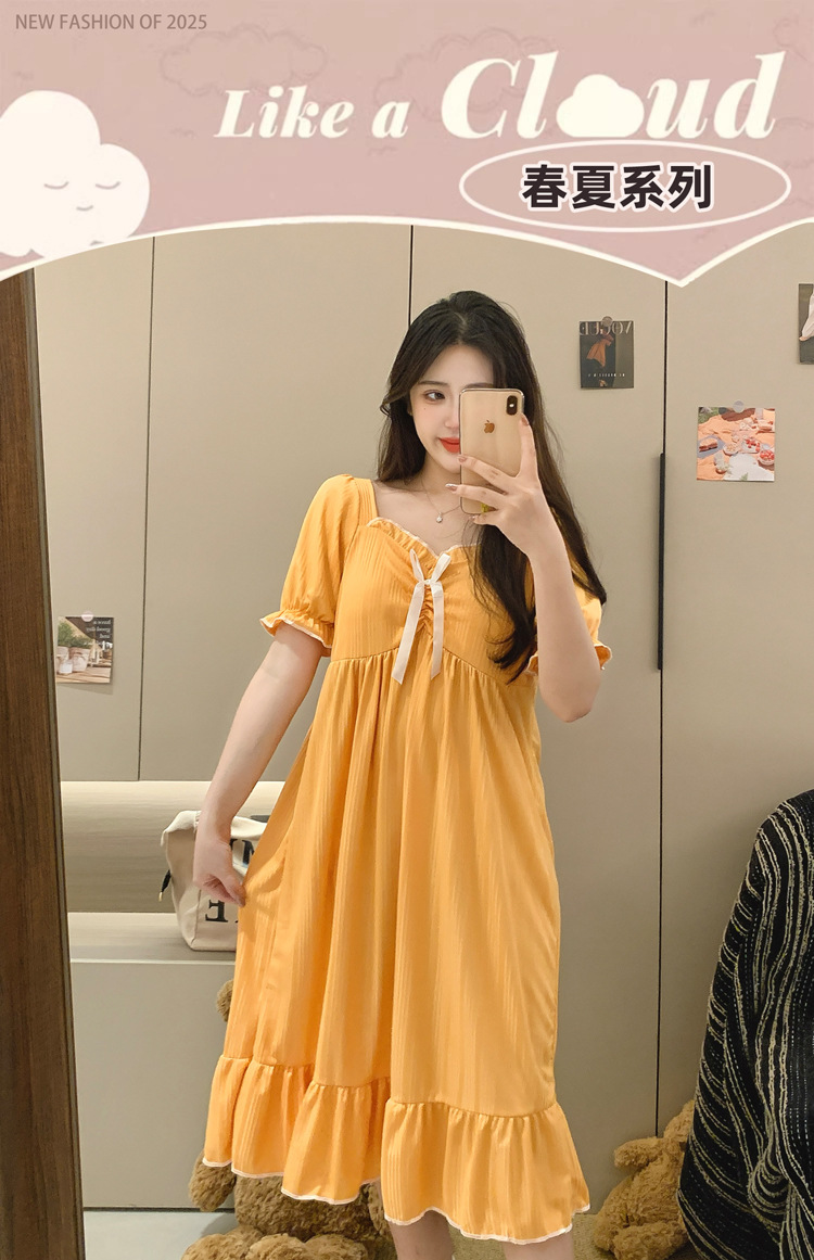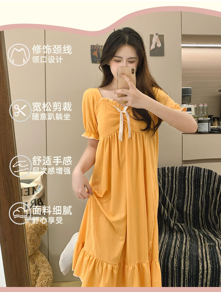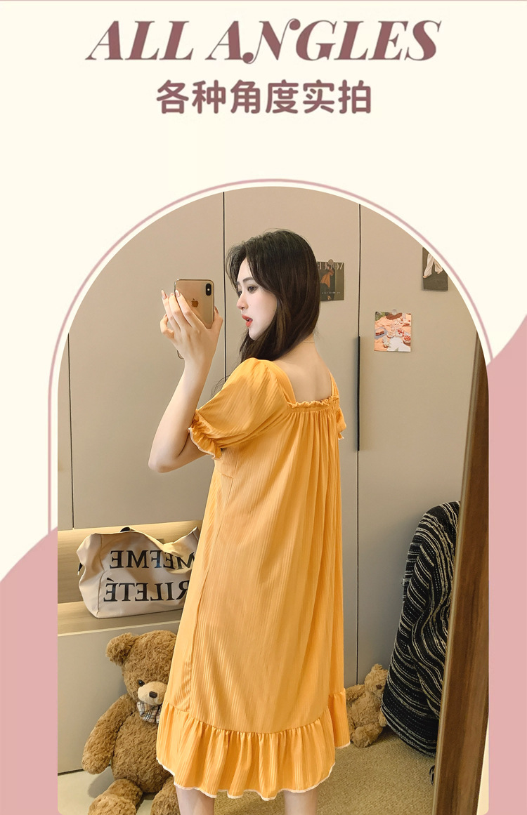 Fábrica directa de verano vestido de pijama de mujer sobre rodillas dopamina de color sólido plegado pozo cómodo vestido de hogar vestido largo cojín de pecho