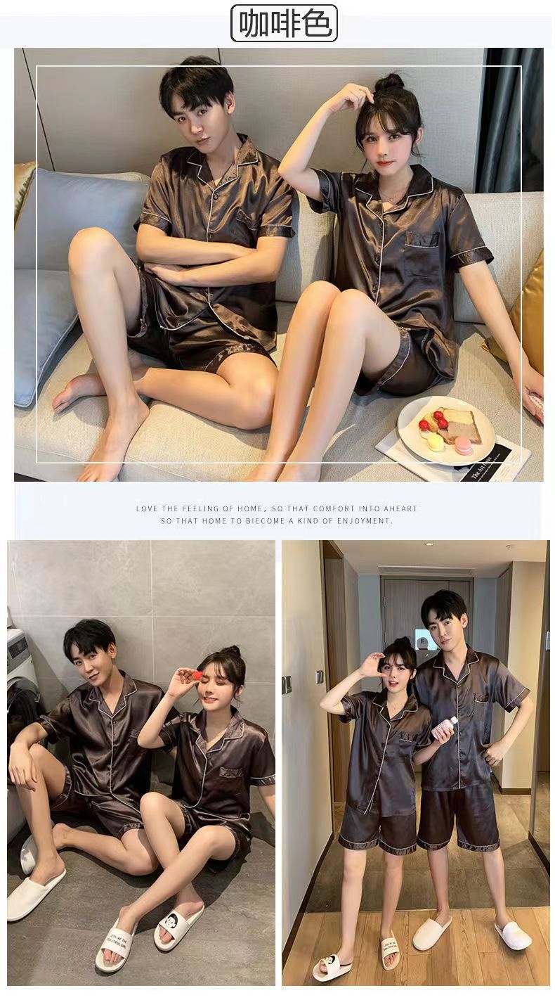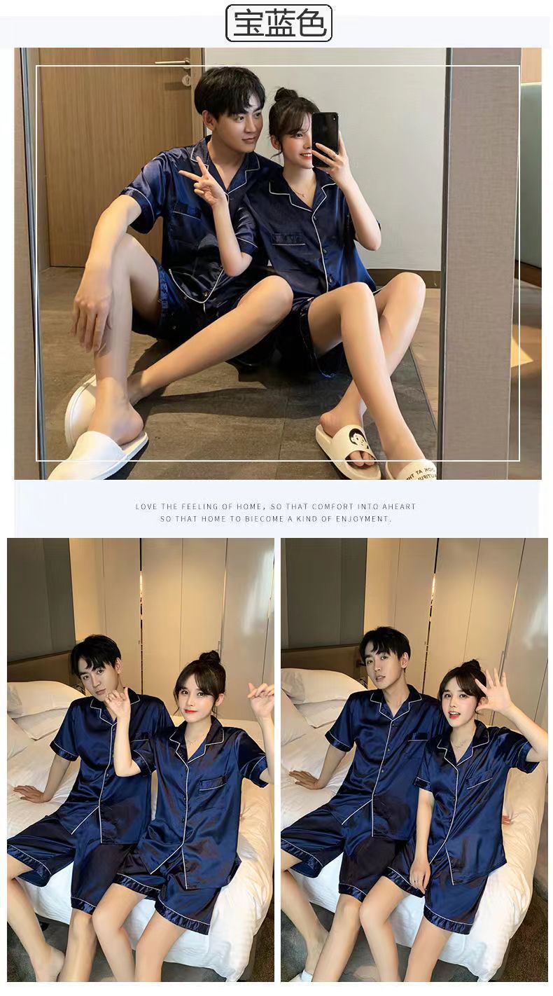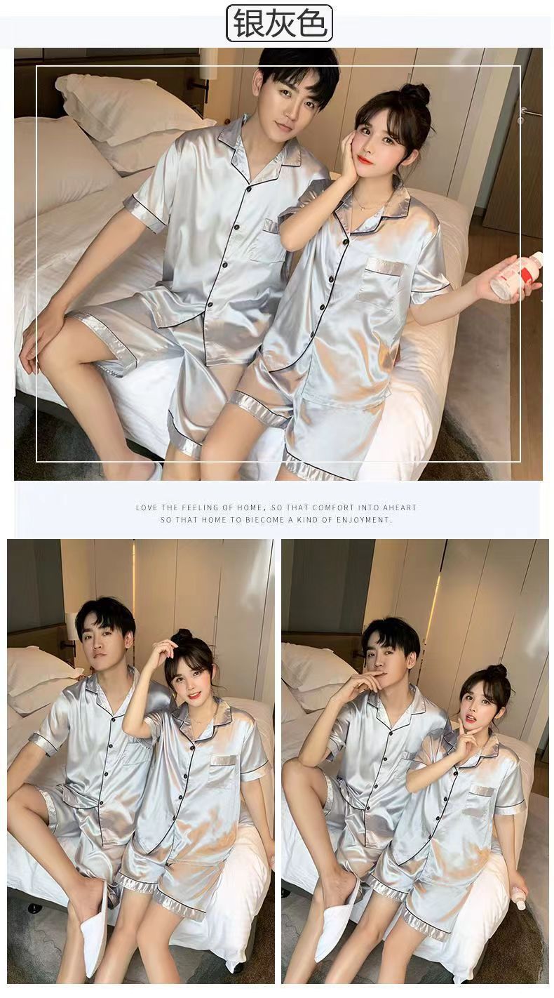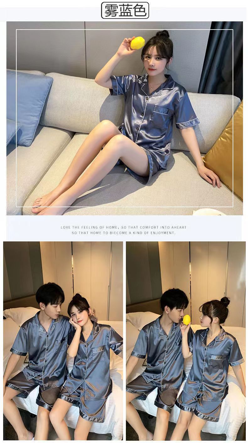Fabricantes de verano de camisa de dama, pijama de seda de hielo, pantalones cortos de manga corta, set de seda de pareja, ropa de casa de verano para hombres