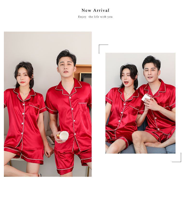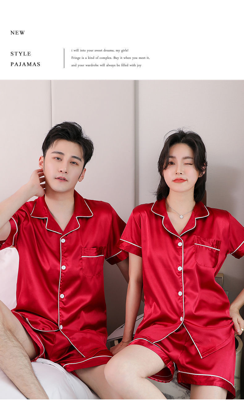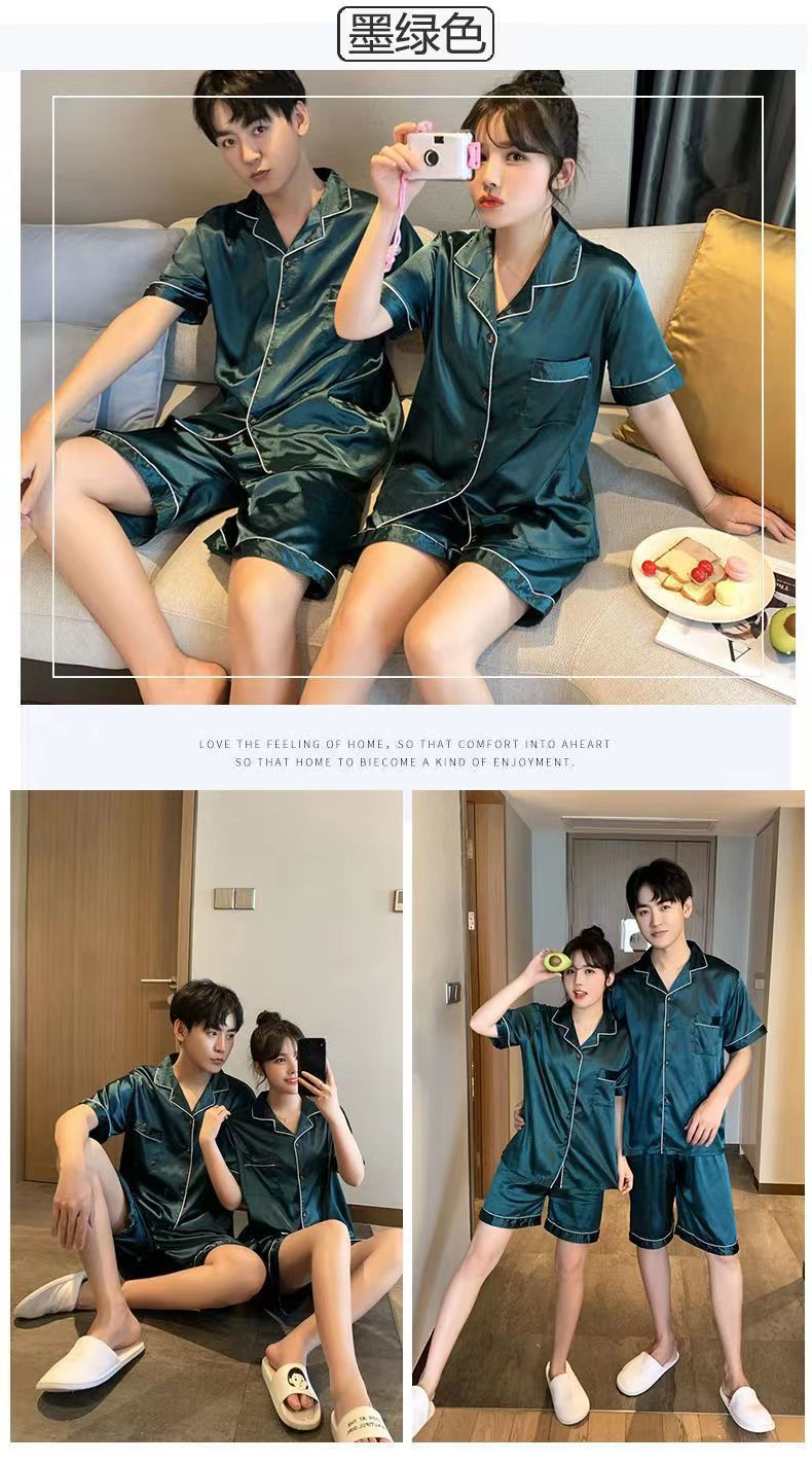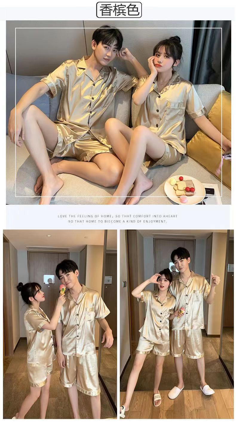 Fabricantes de verano de camisa de dama, pijama de seda de hielo, pantalones cortos de manga corta, set de seda de pareja, ropa de casa de verano para hombres