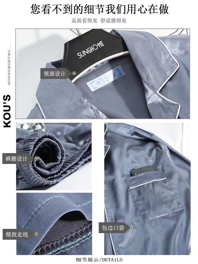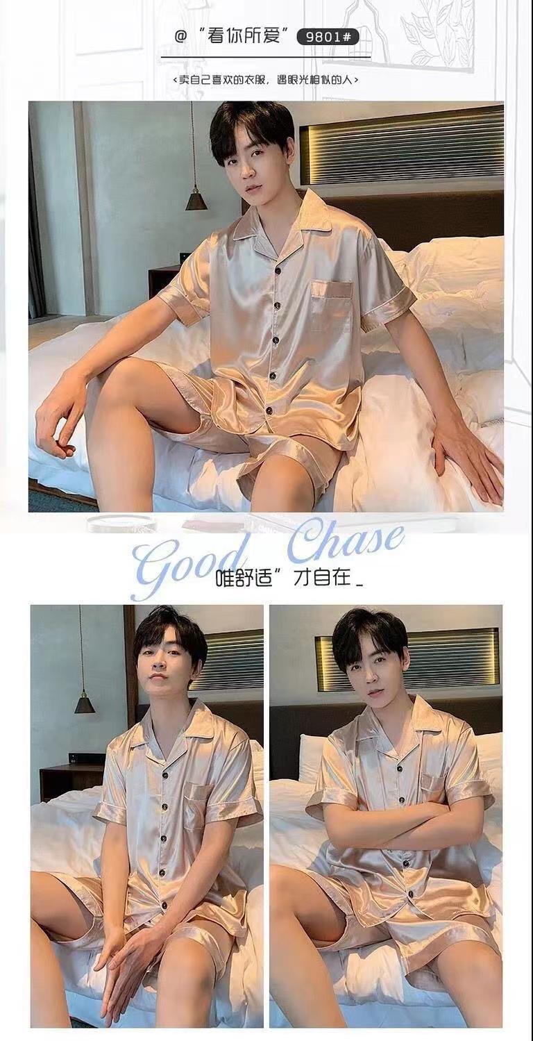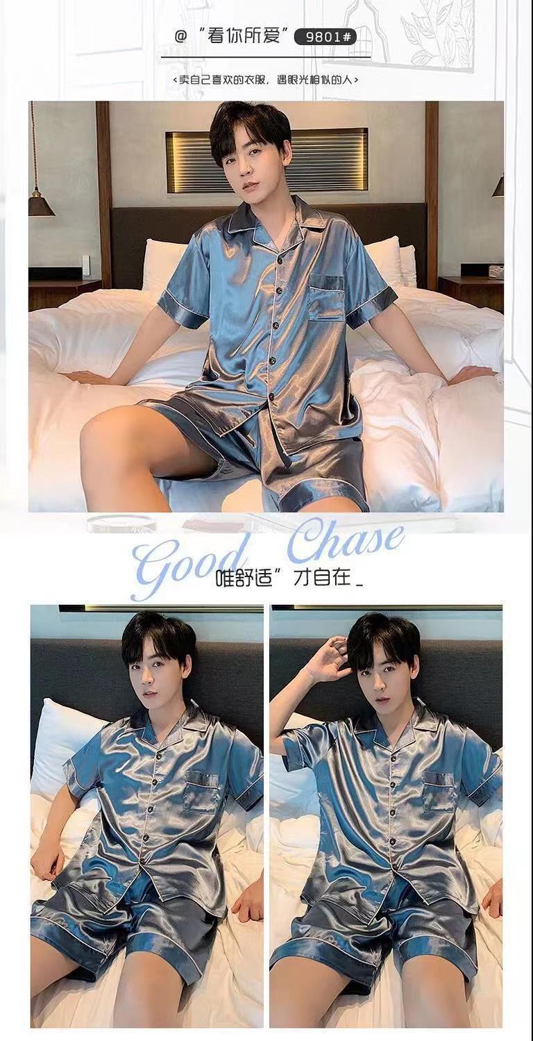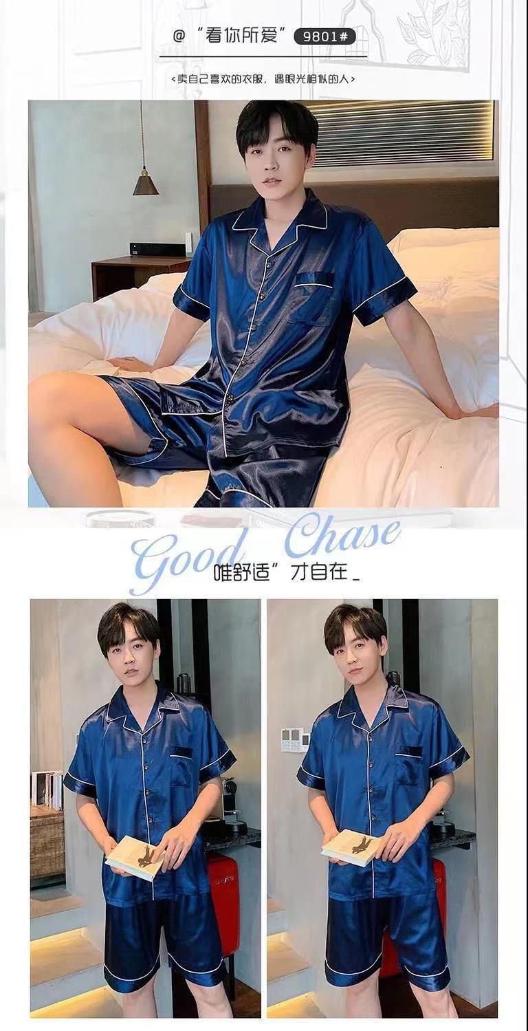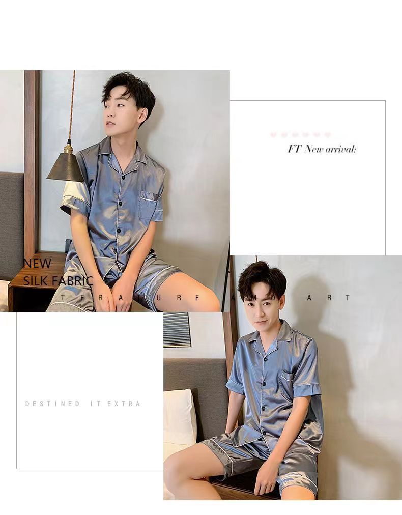 Fábrica directa de seda de hielo de verano de manga corta delgada seda de imitación de tamaño grande camiseta pijama hombre juvenil conjunto de ropa de hogar