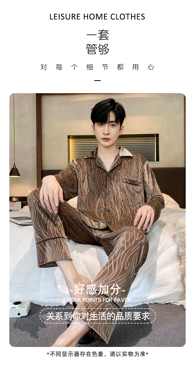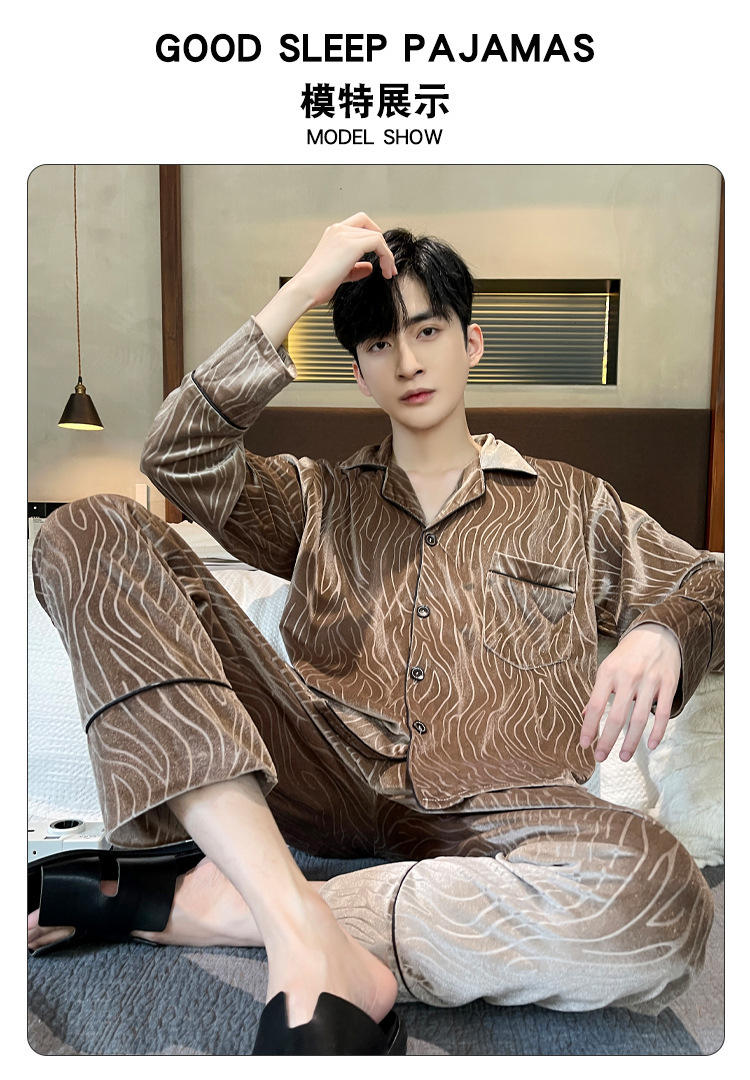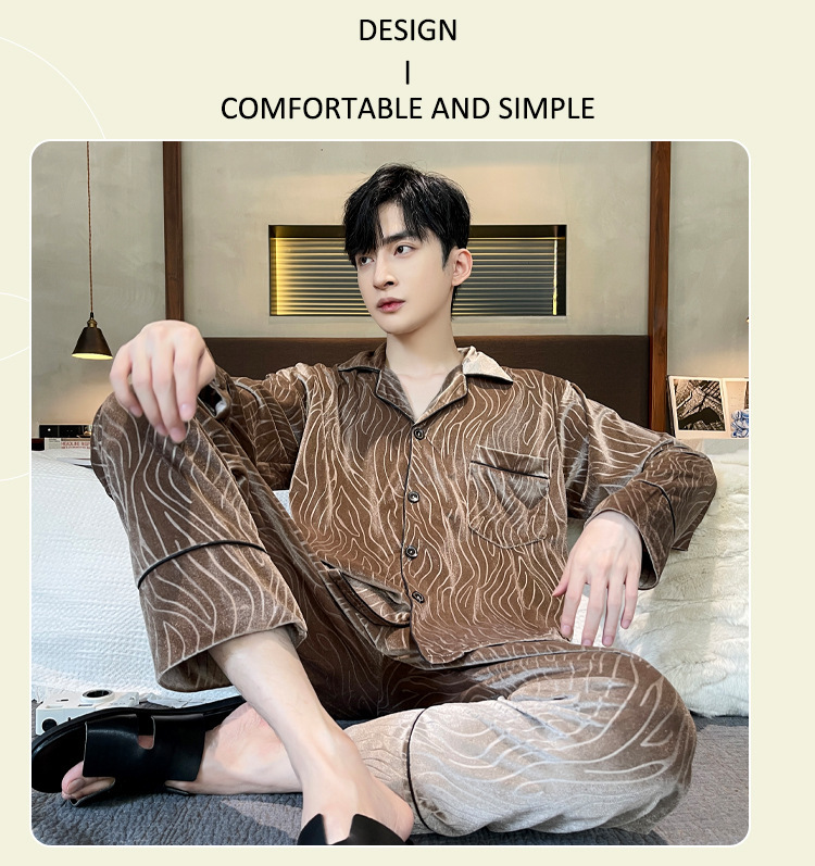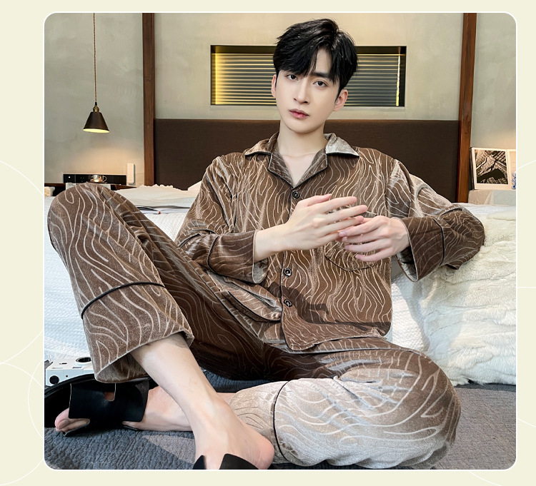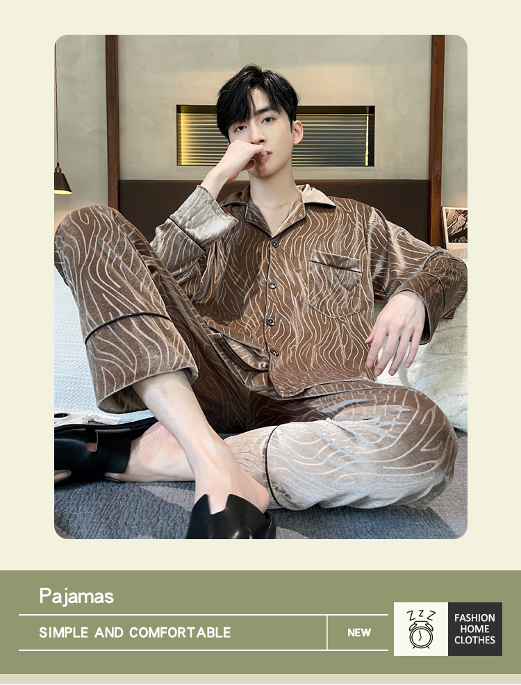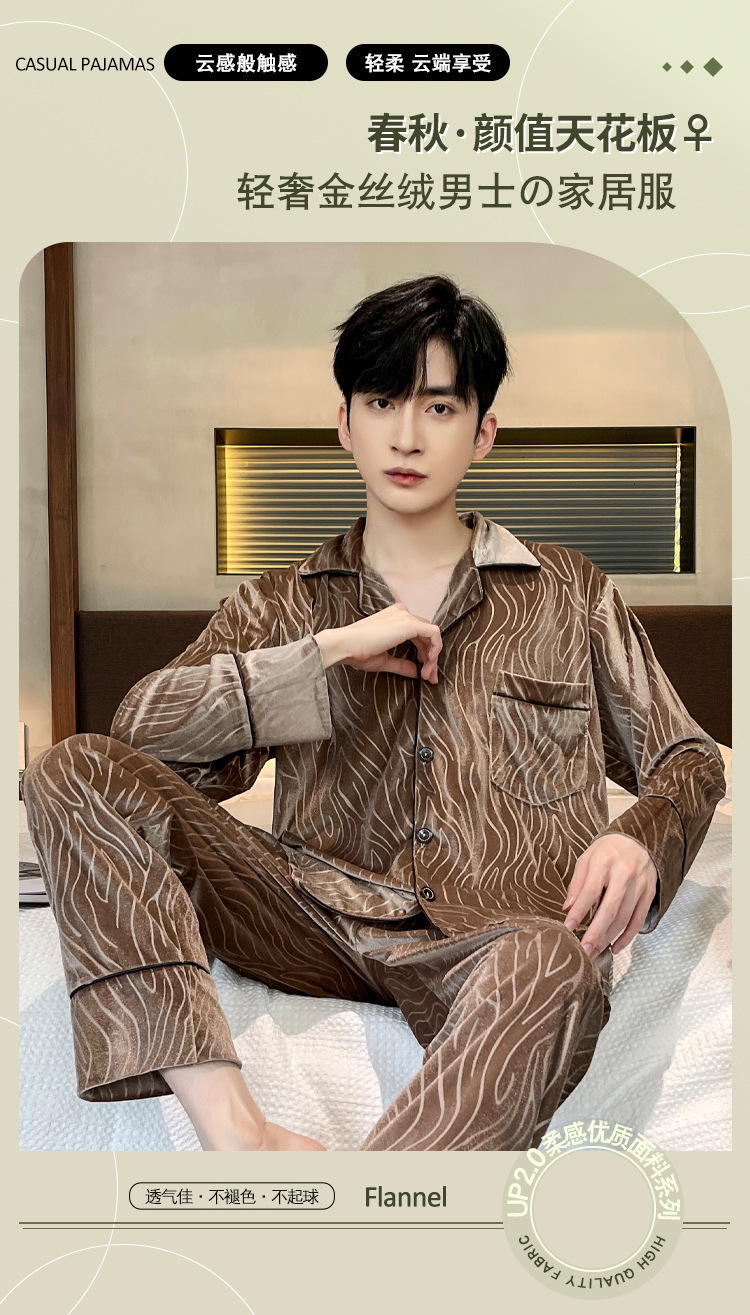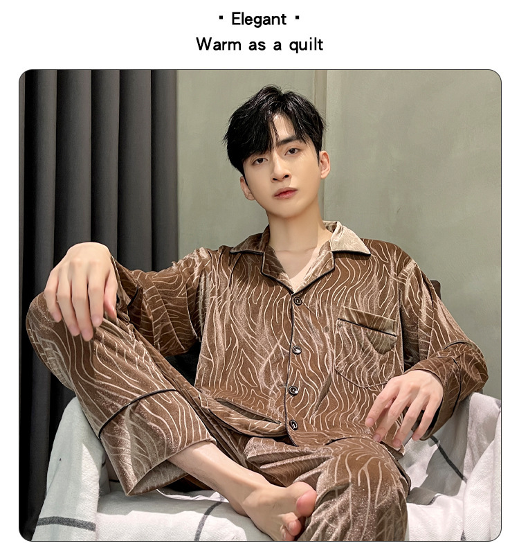 2025 pijama hombre otoño invierno terciopelo dorado calentamiento cardigan juvenil simple casual manga larga ropa de casa set de cabello