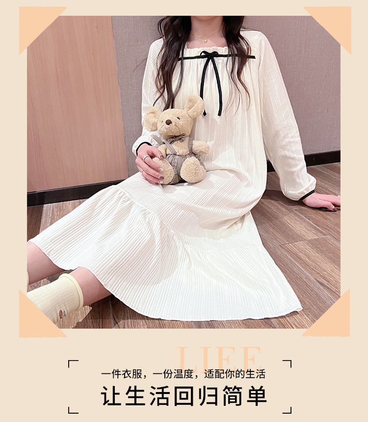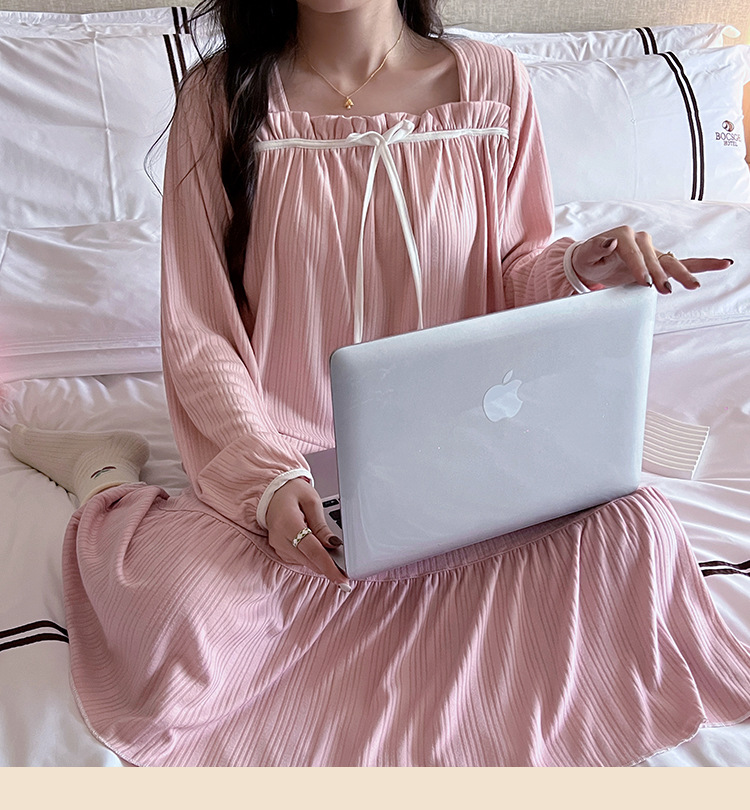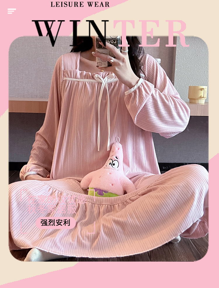 Pijama de otoño, una línea de hombro, pijama de mangas largas, pequeño hombre fresco, arco de mariposa, ropa dulce para el hogar
