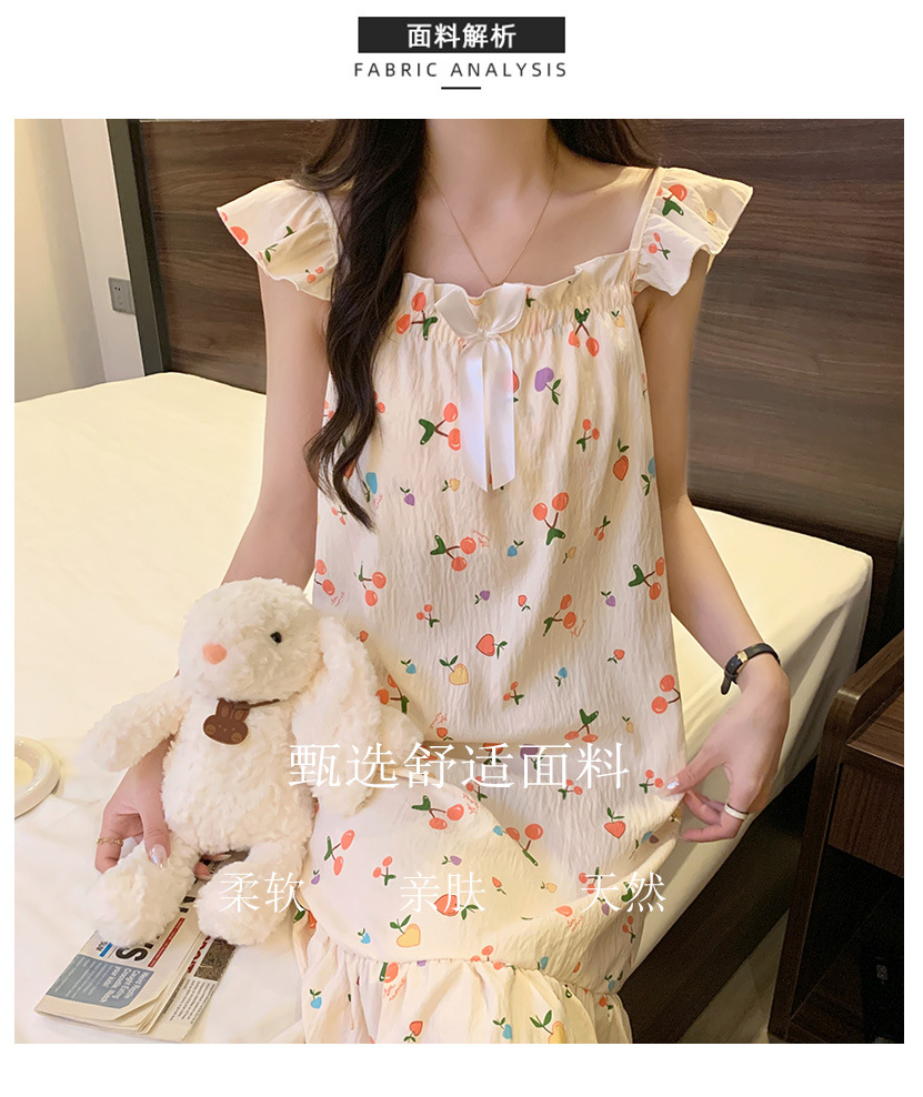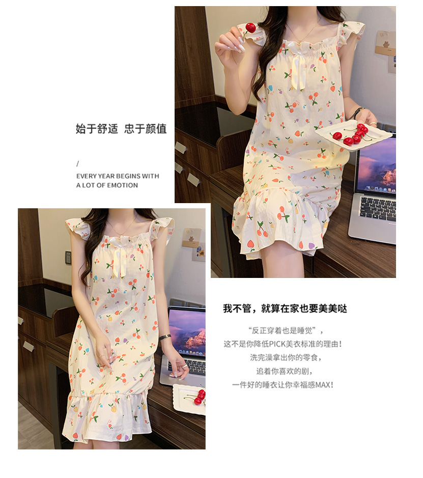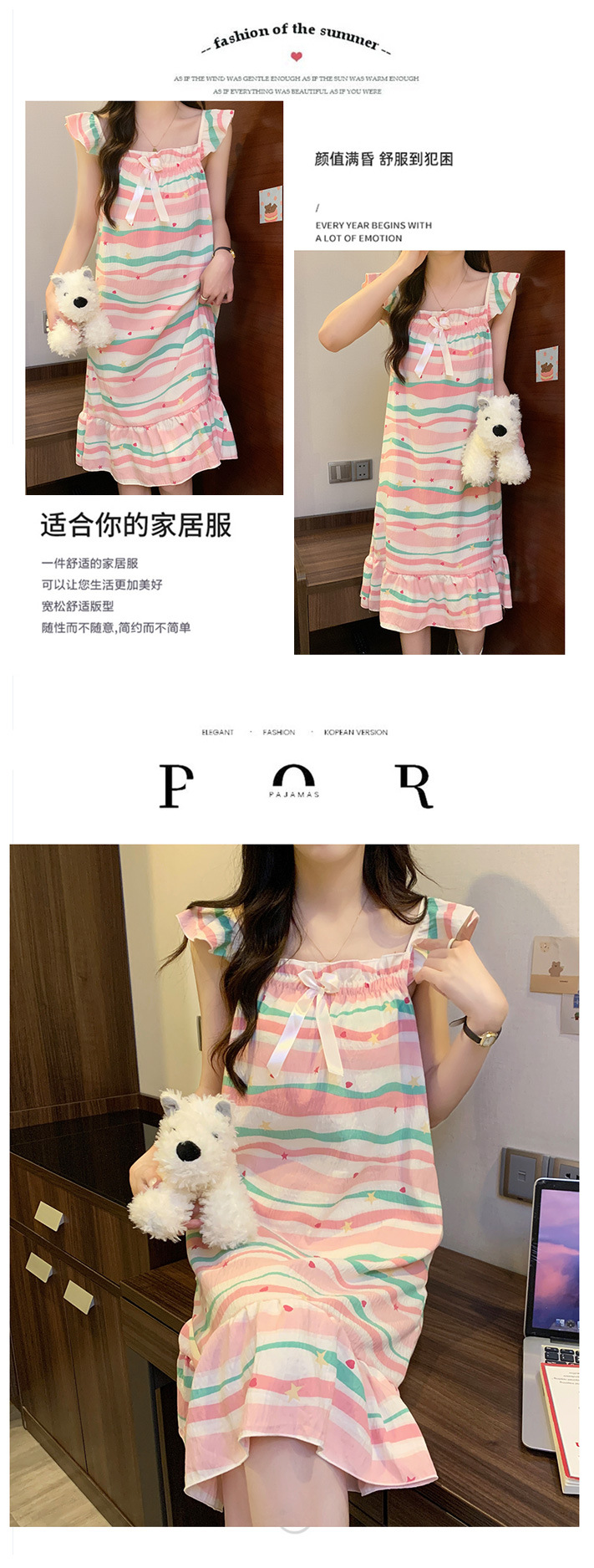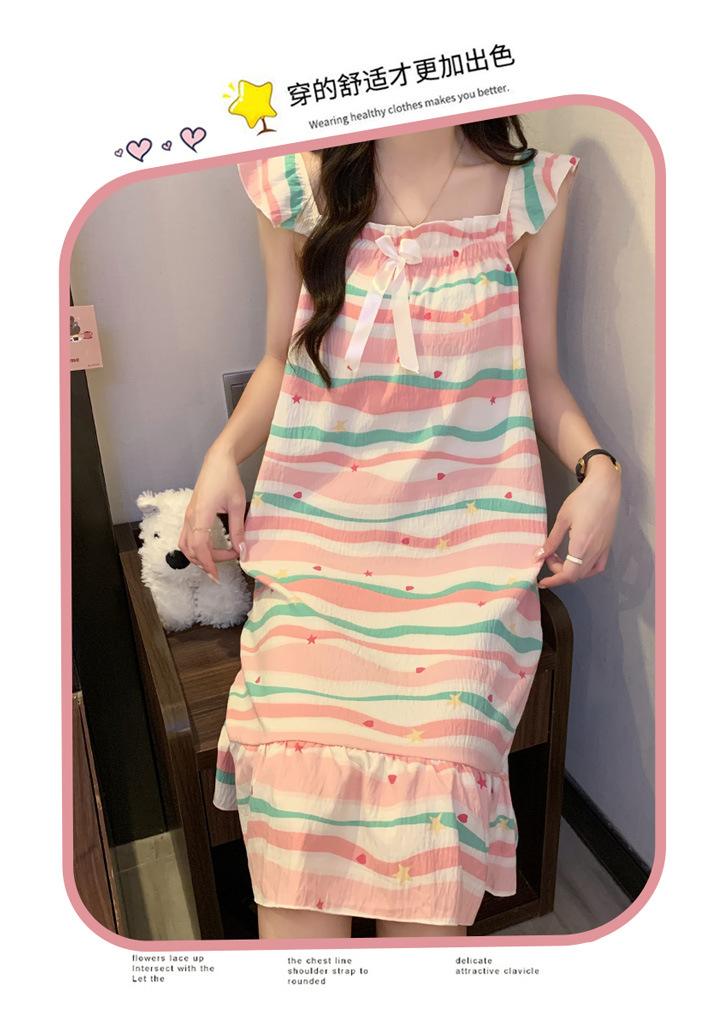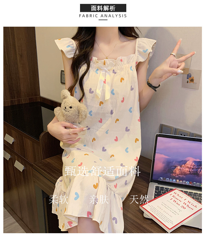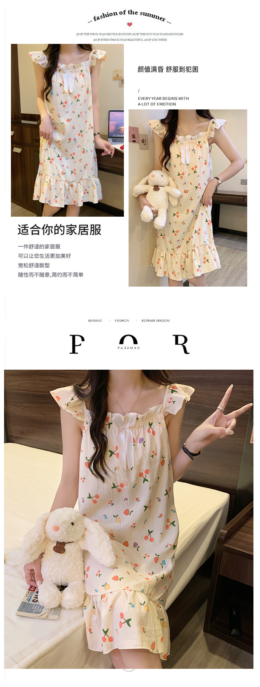 2024 con cojín de pecho ropa para el hogar nubes de verano algodón princesa pijama de viento delgado dulce y sexy vestido de pijama de la niña