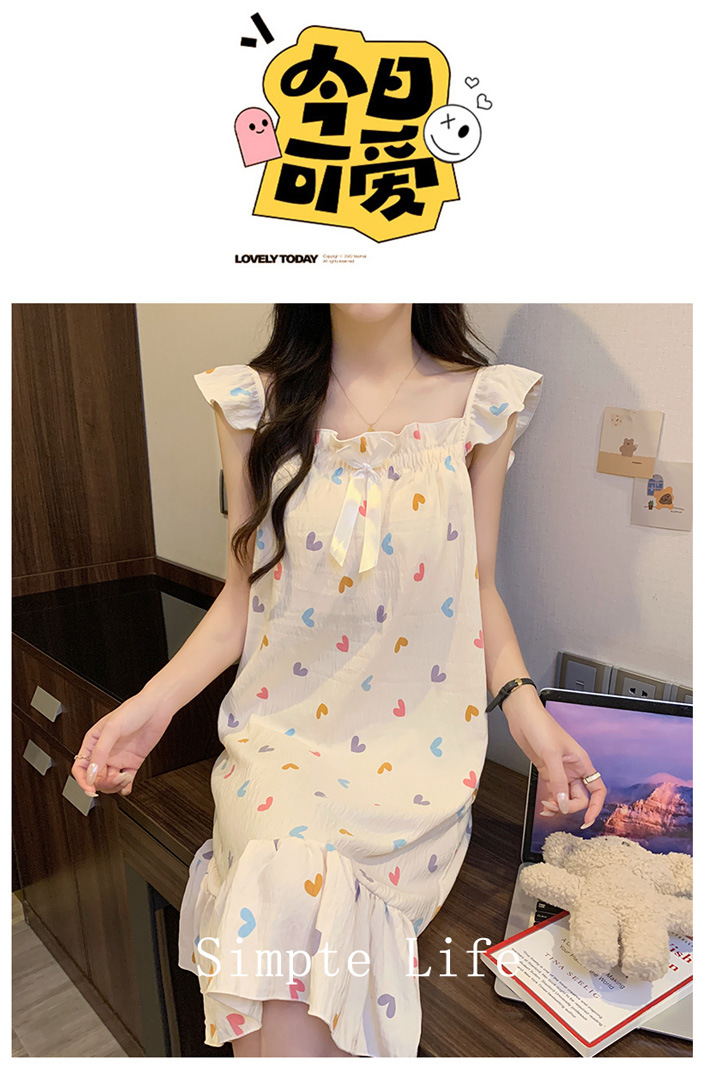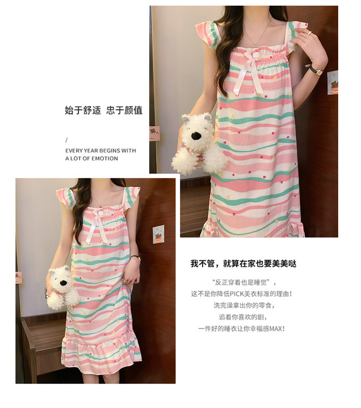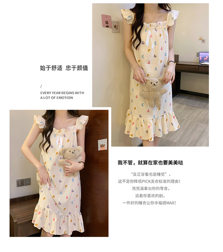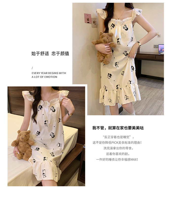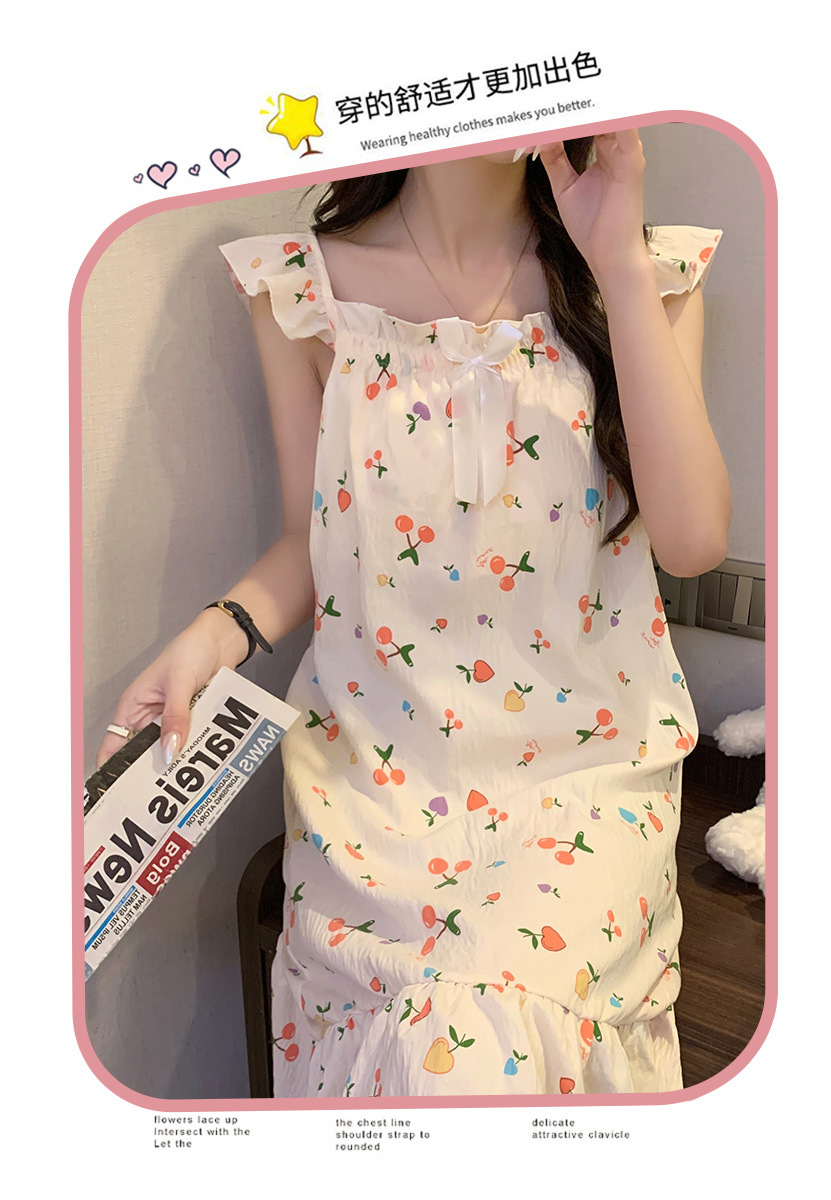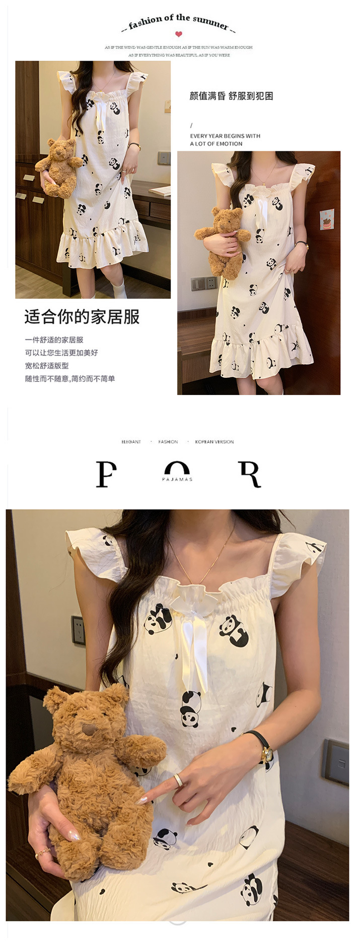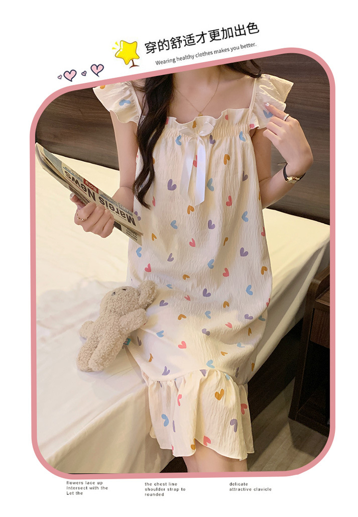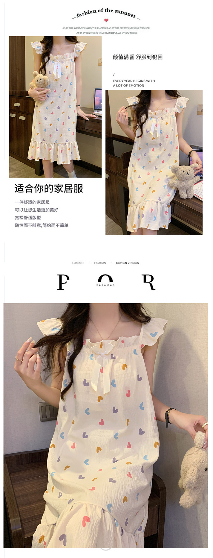 2024 con cojín de pecho ropa para el hogar nubes de verano algodón princesa pijama de viento delgado dulce y sexy vestido de pijama de la niña