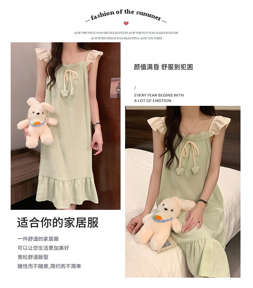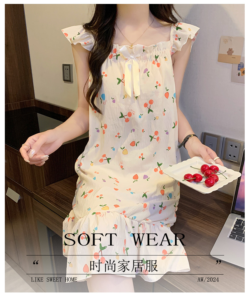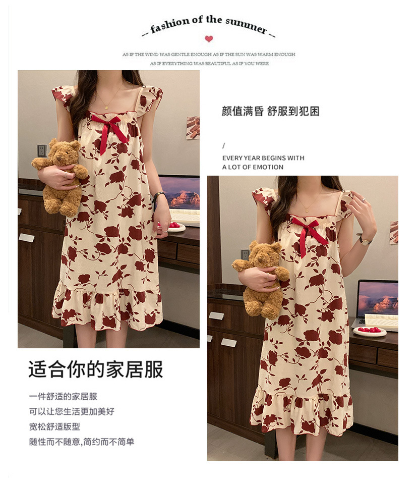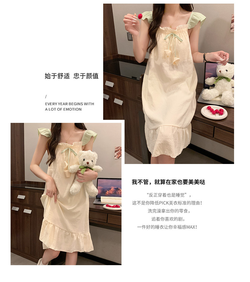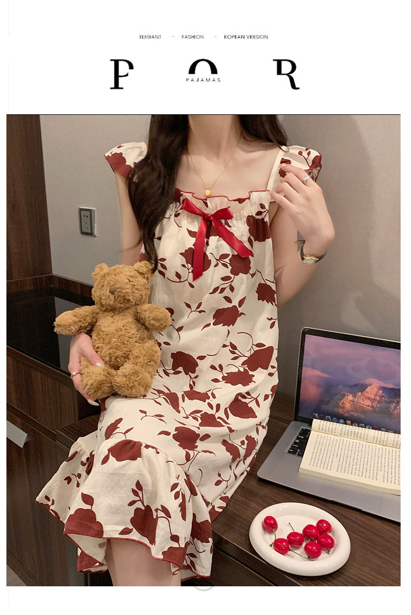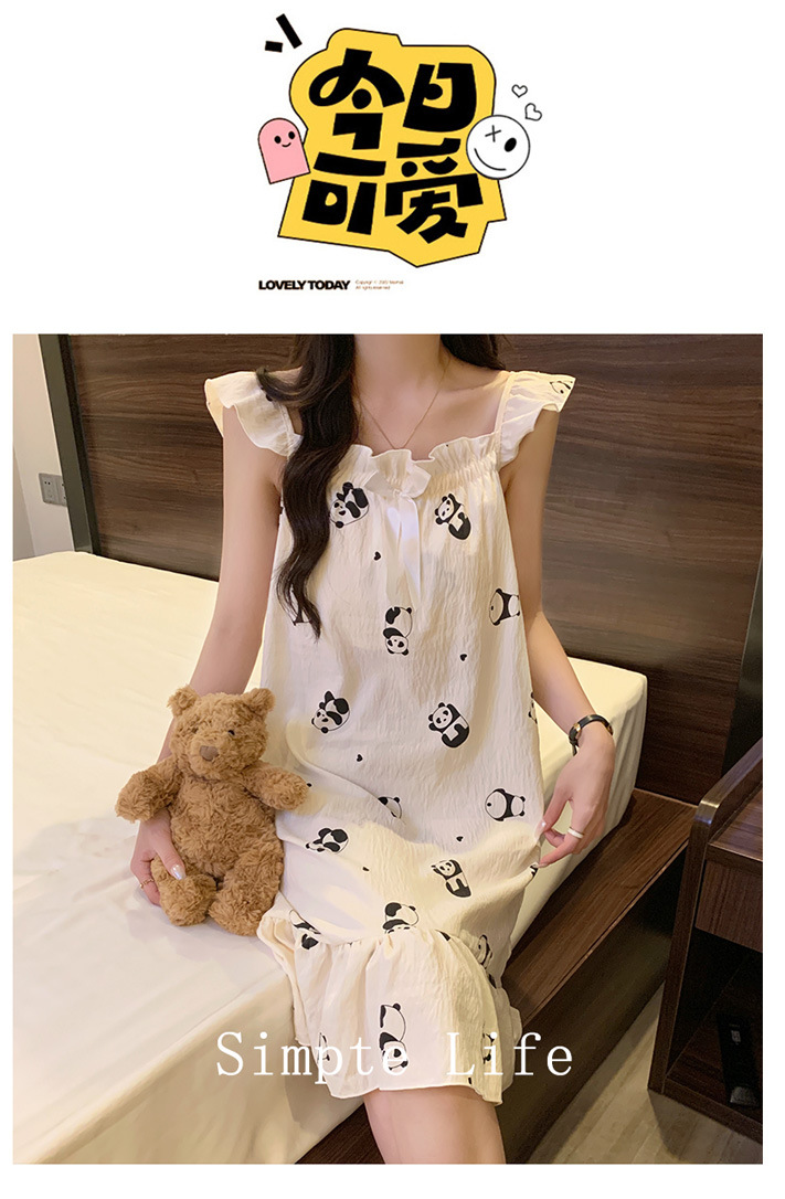 2024 con cojín de pecho ropa para el hogar nubes de verano algodón princesa pijama de viento delgado dulce y sexy vestido de pijama de la niña