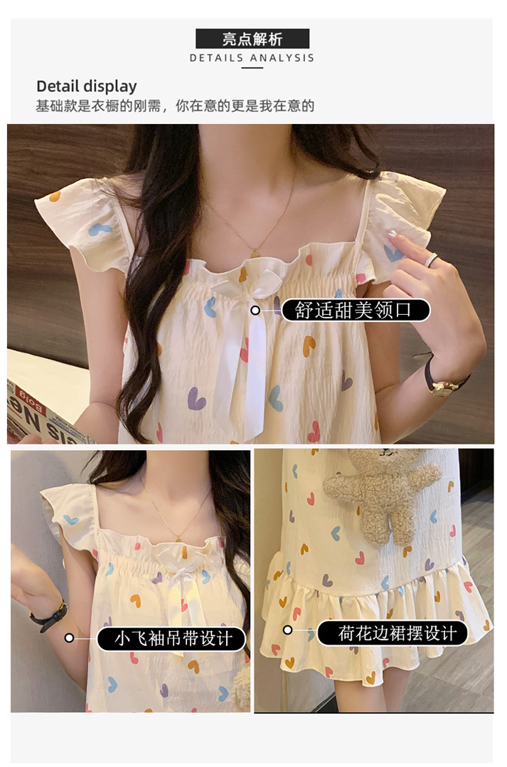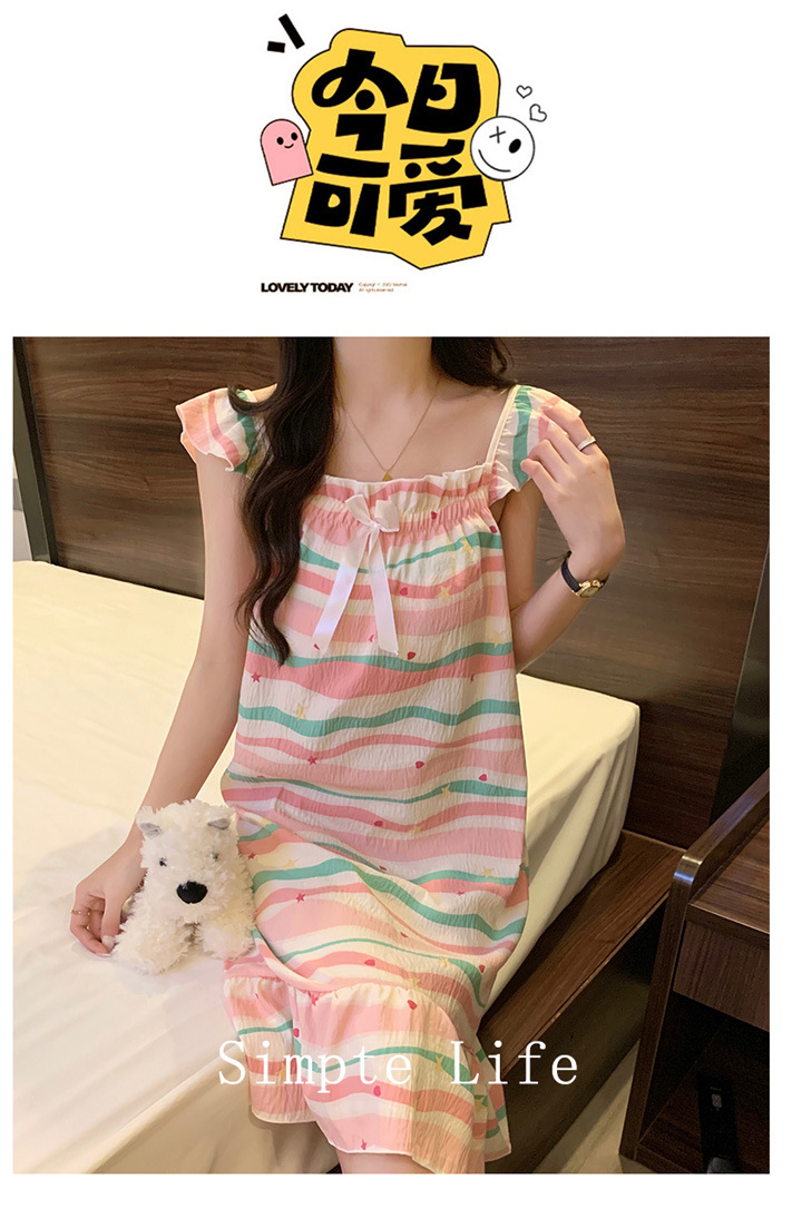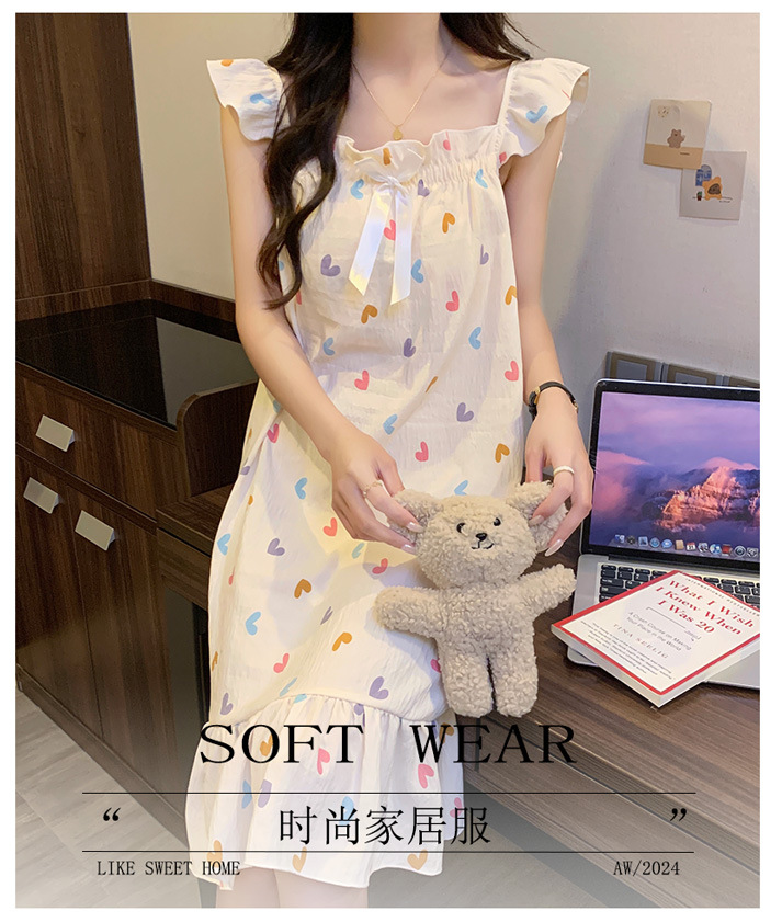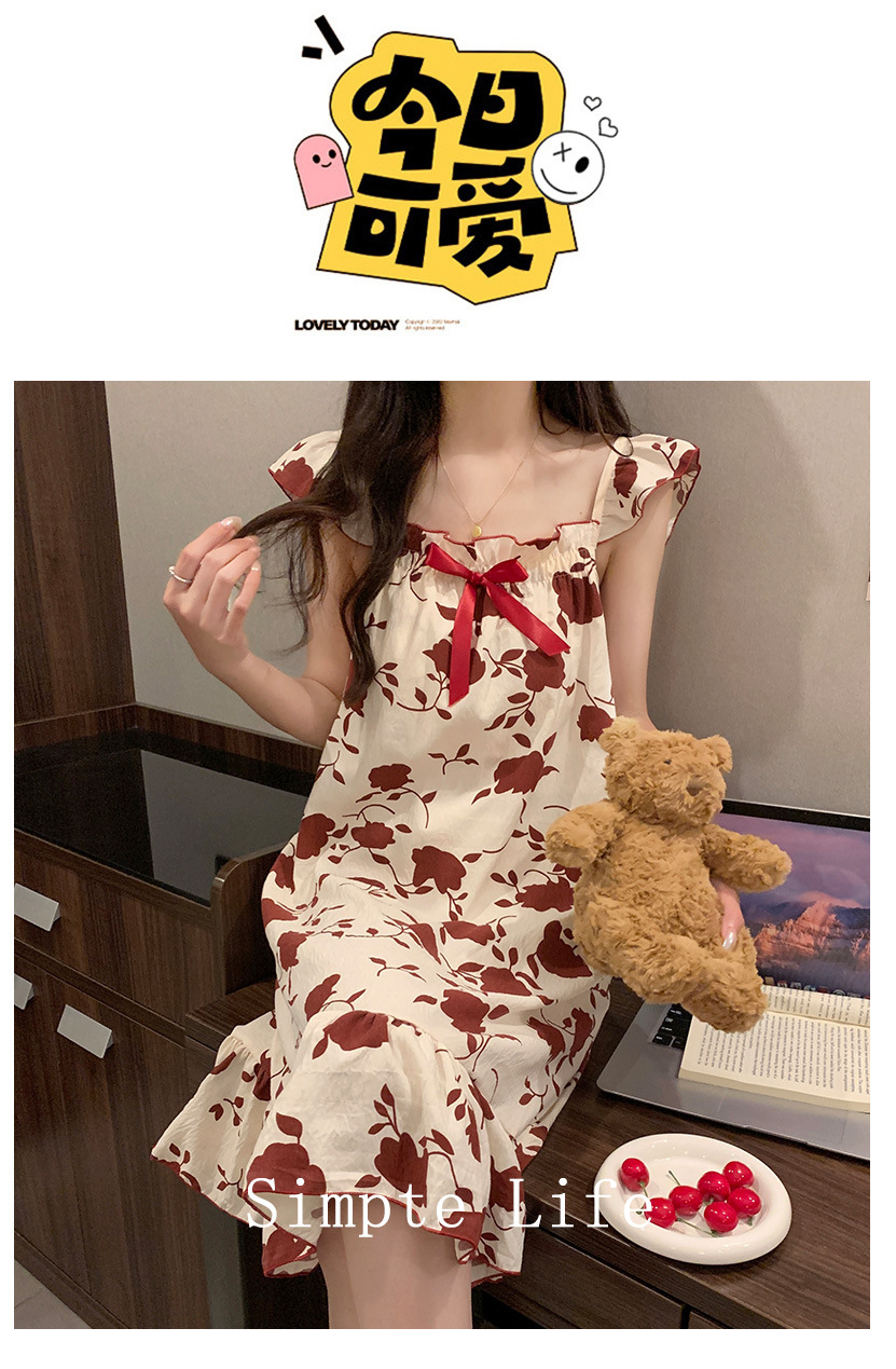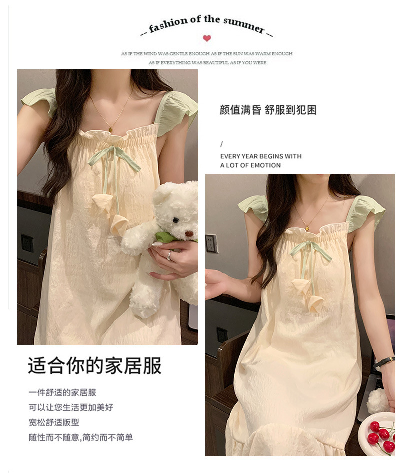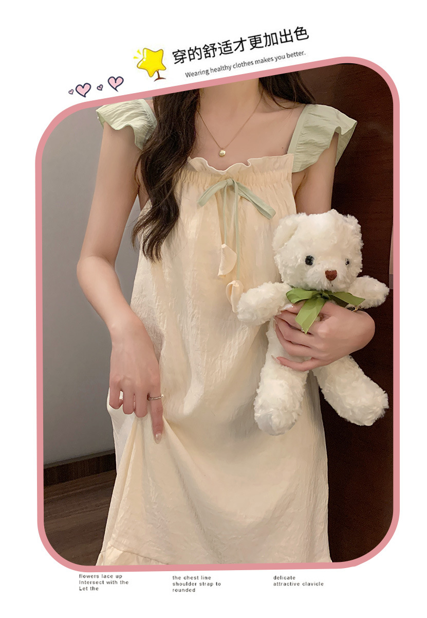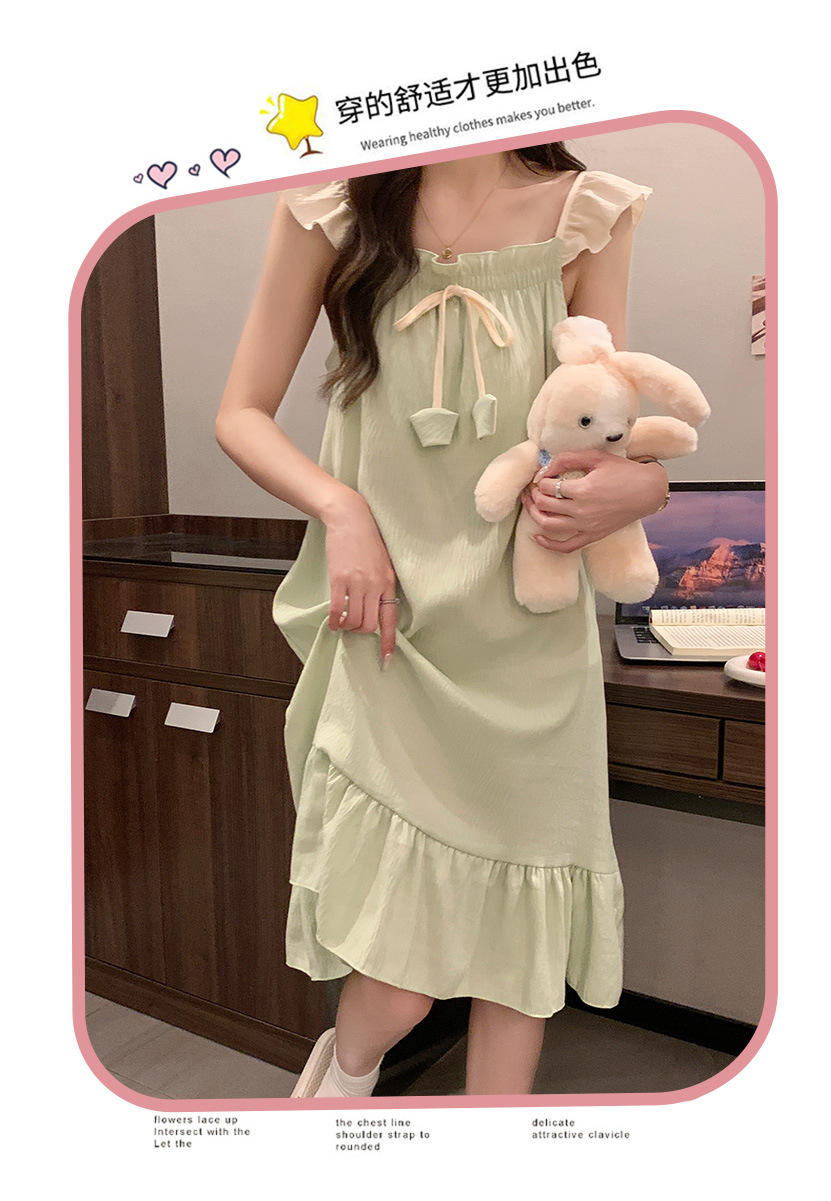 2024 con cojín de pecho ropa para el hogar nubes de verano algodón princesa pijama de viento delgado dulce y sexy vestido de pijama de la niña