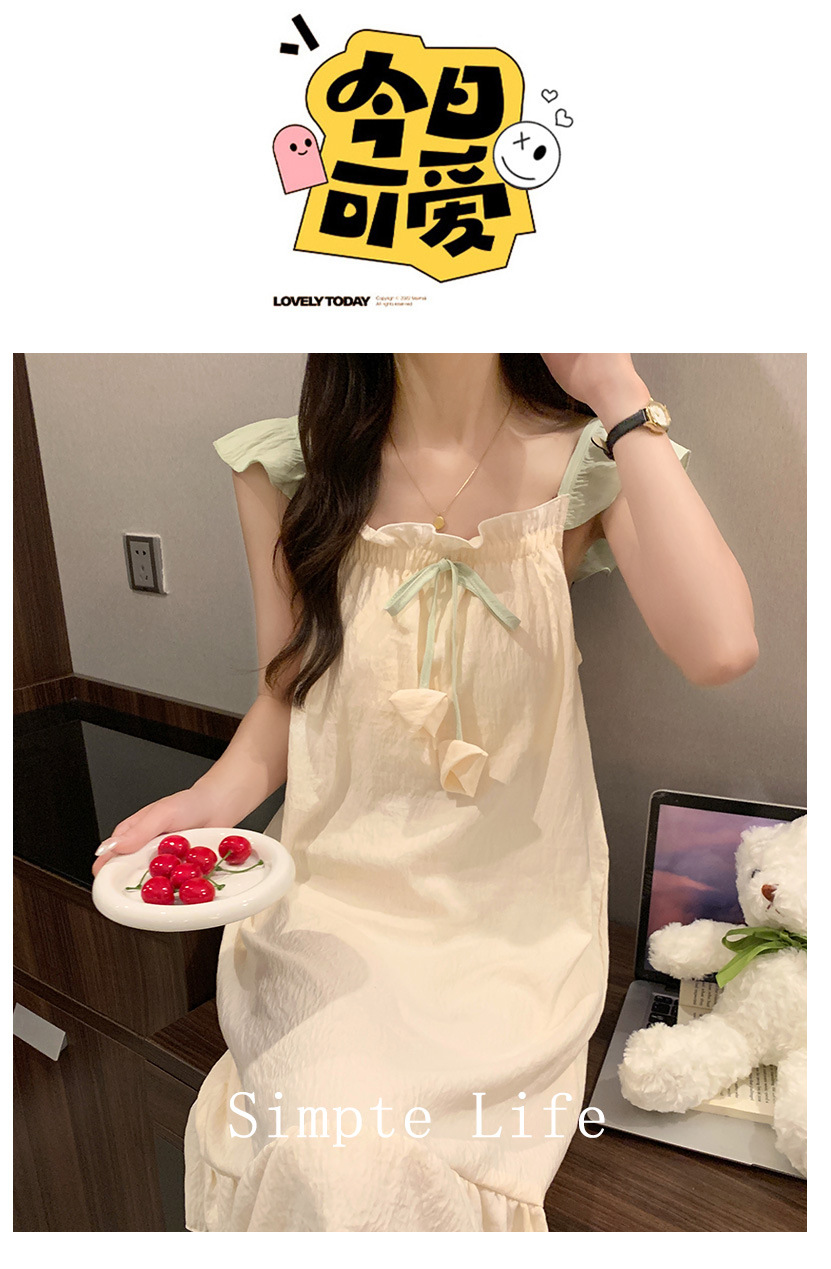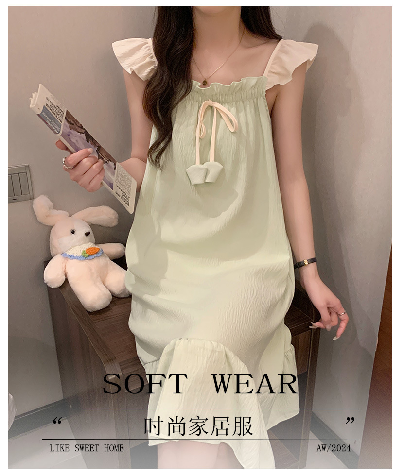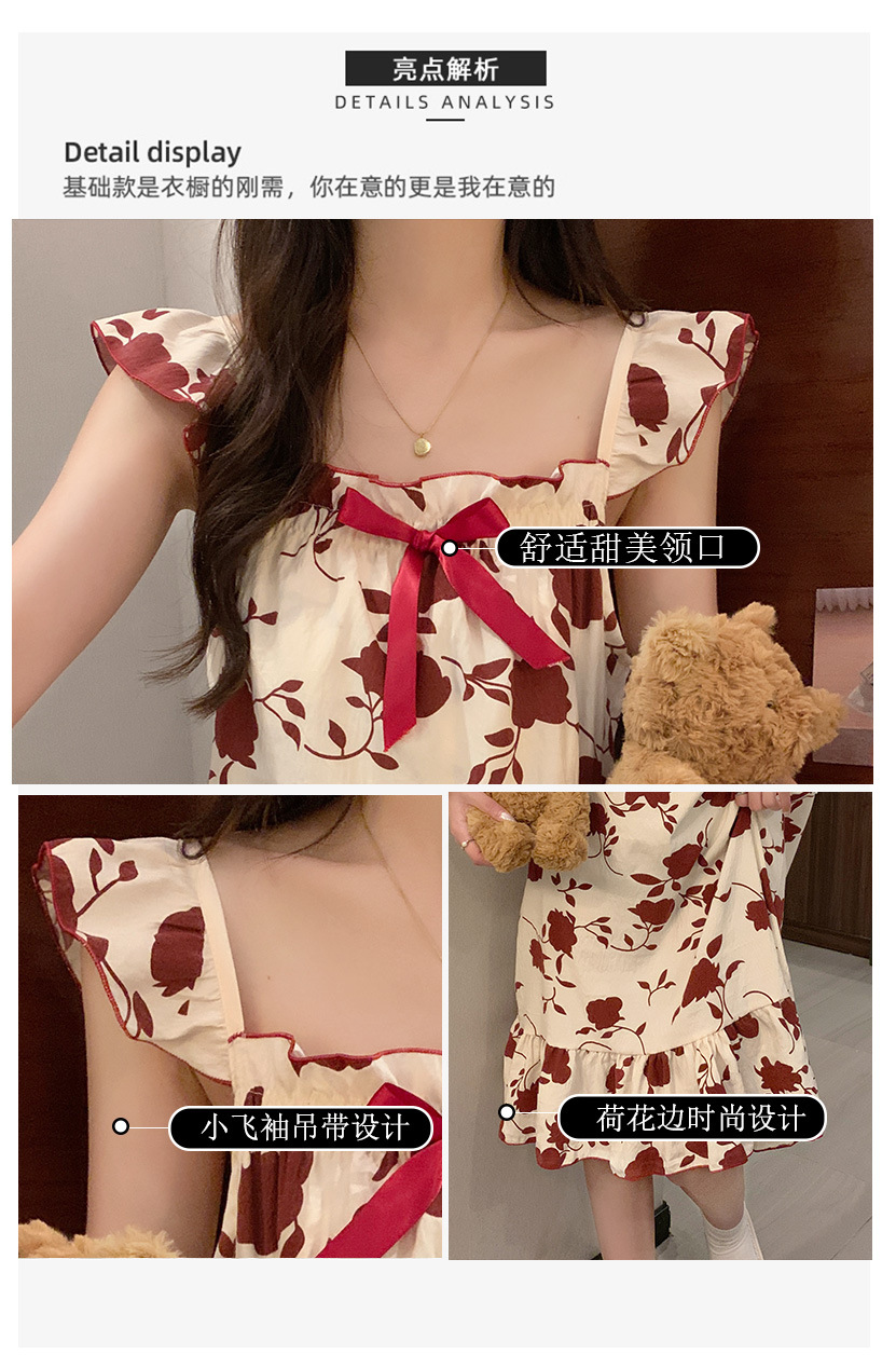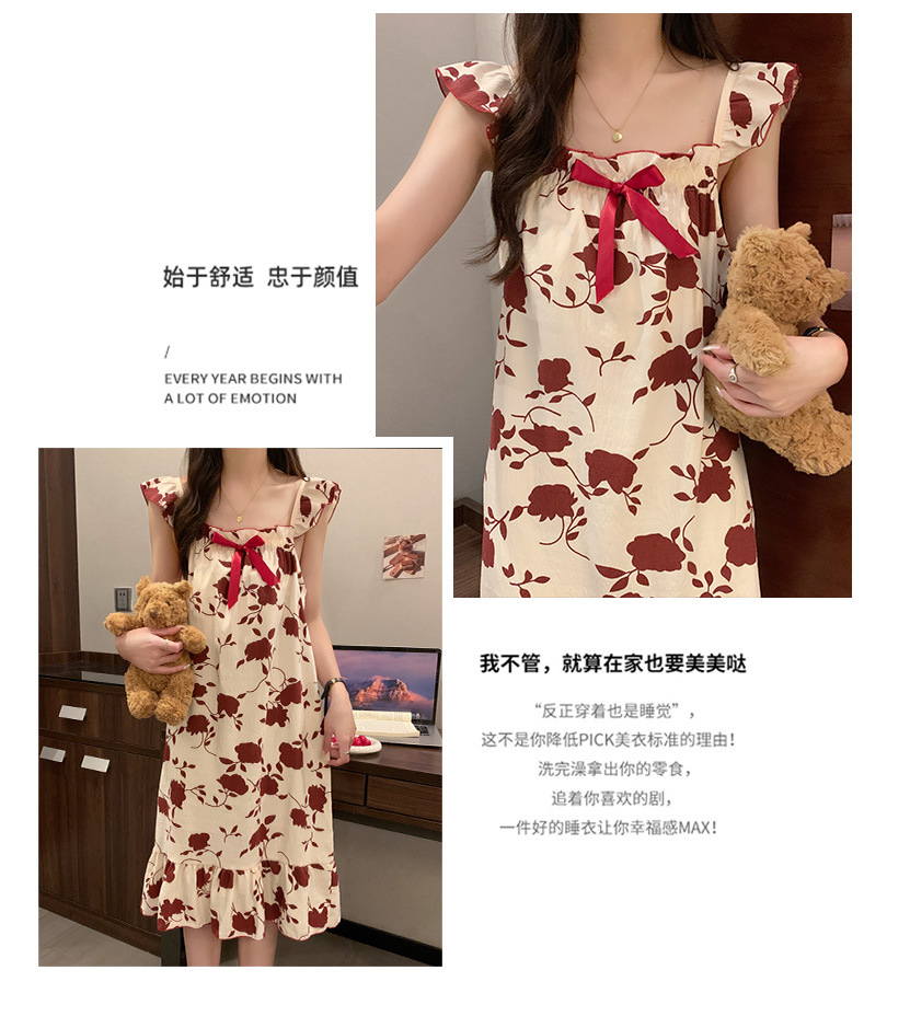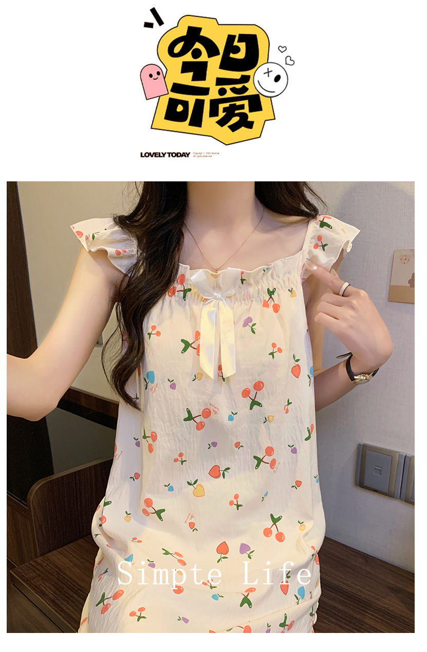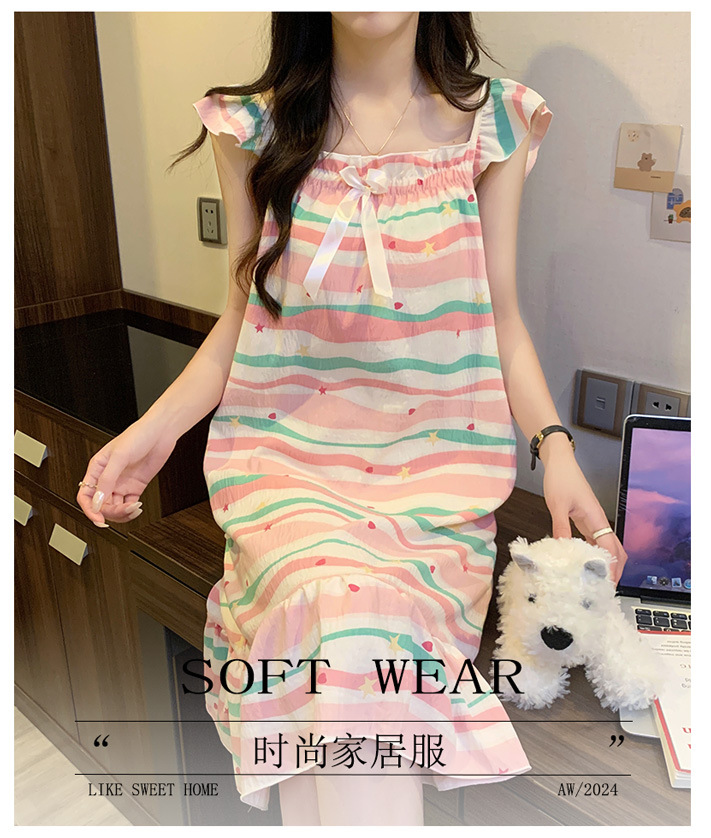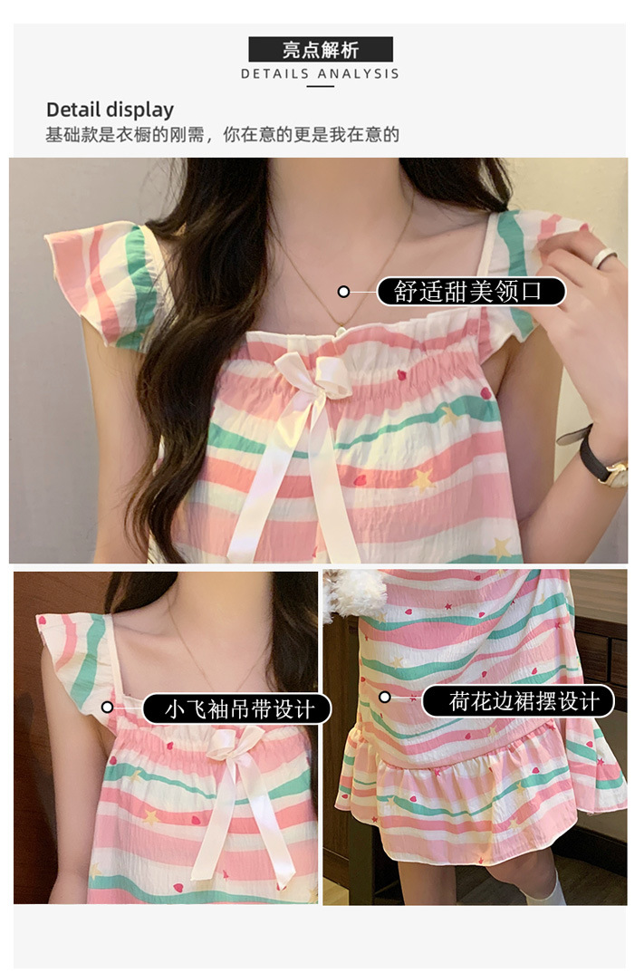 2024 con cojín de pecho ropa para el hogar nubes de verano algodón princesa pijama de viento delgado dulce y sexy vestido de pijama de la niña