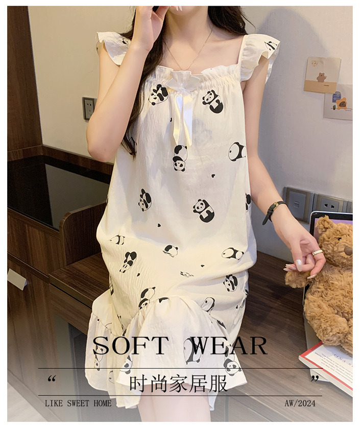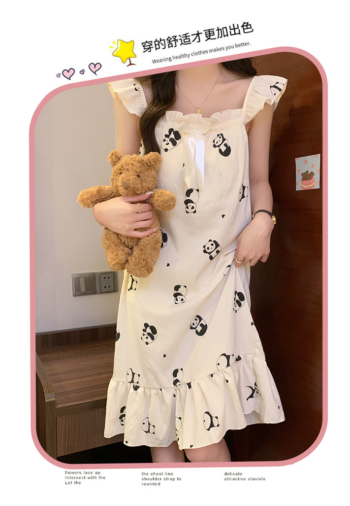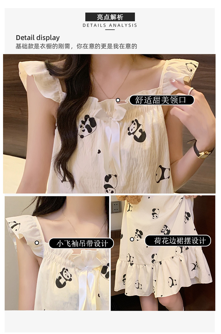 Pequeño Flying Sleeve Sling Dress # Panda White