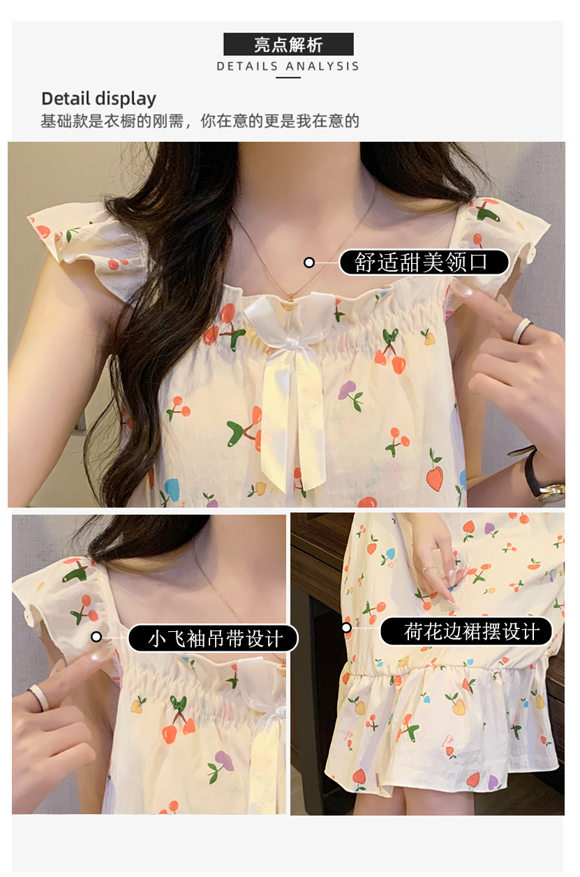 Pequeño Flying Sleeve Sling Dress # Cherry White
