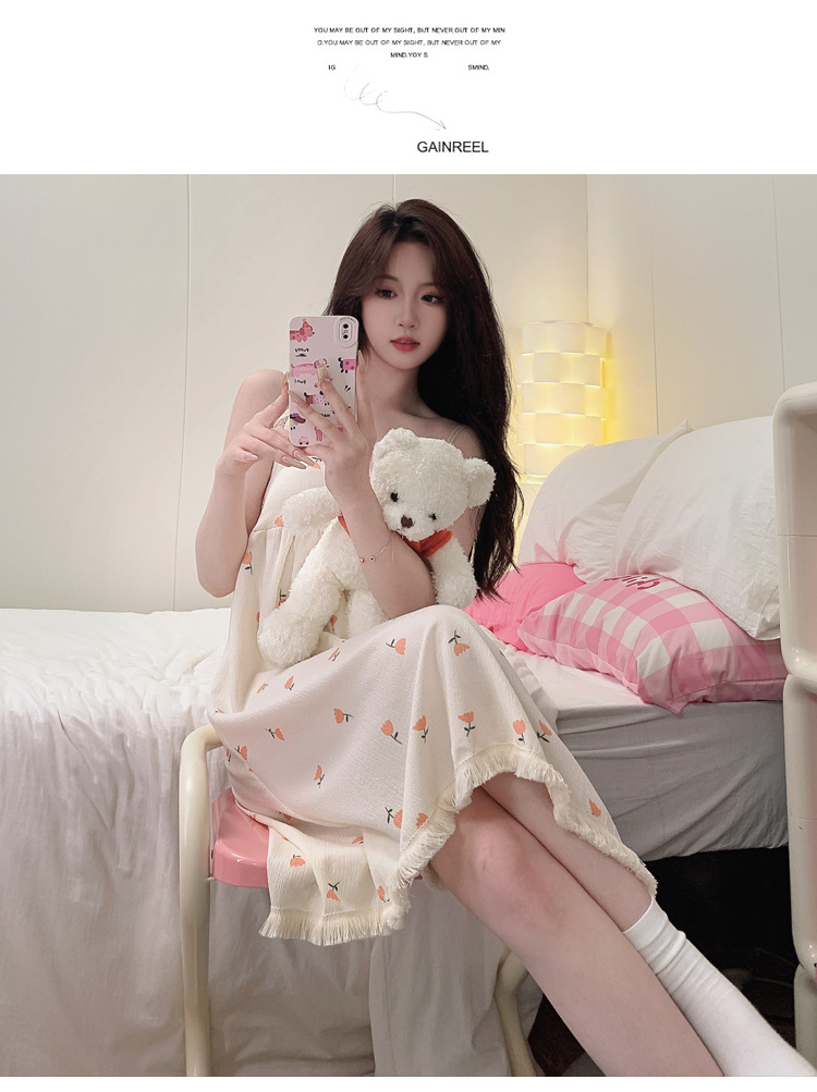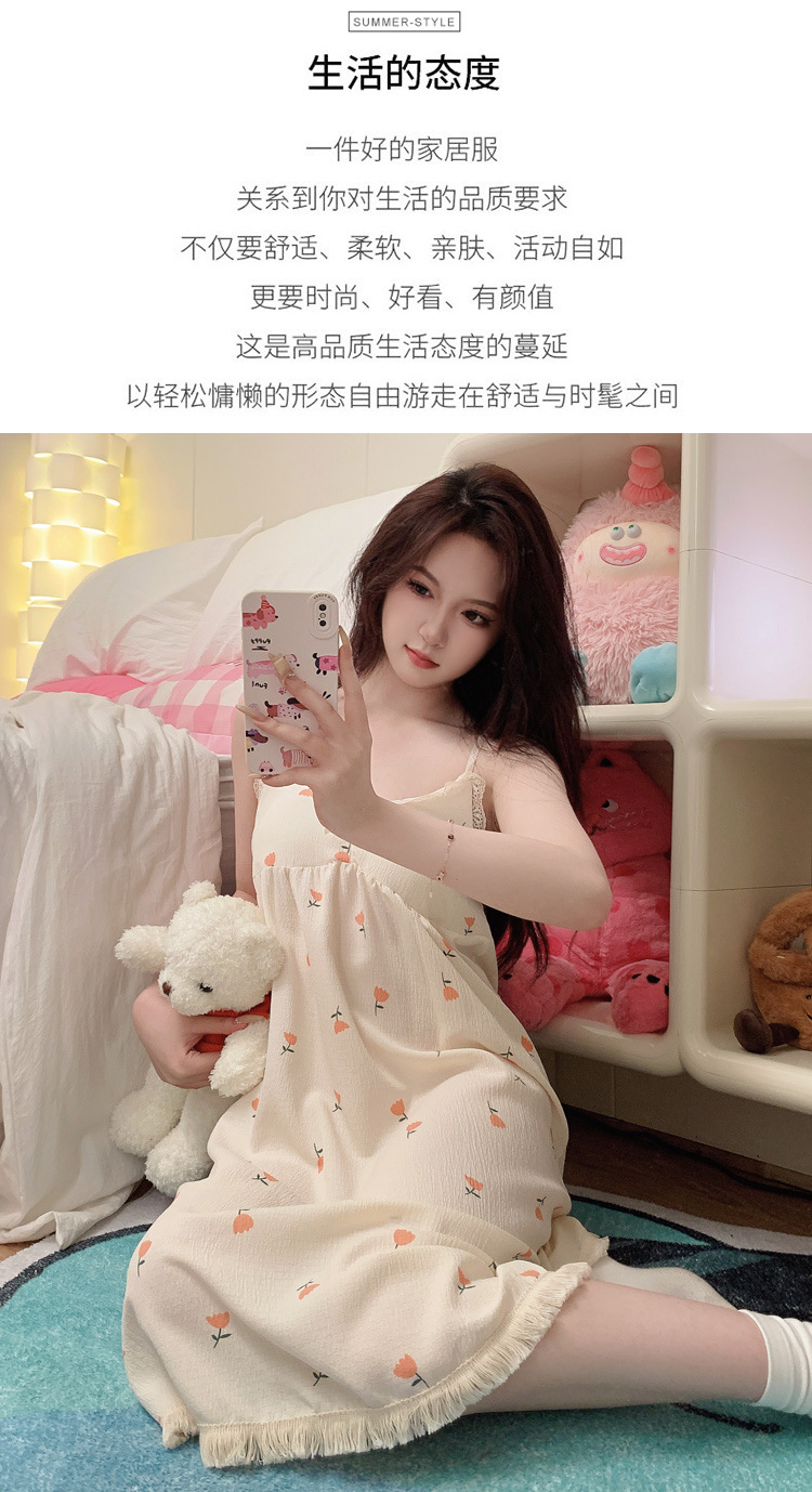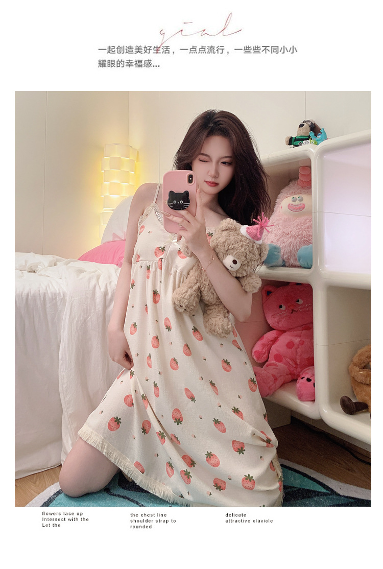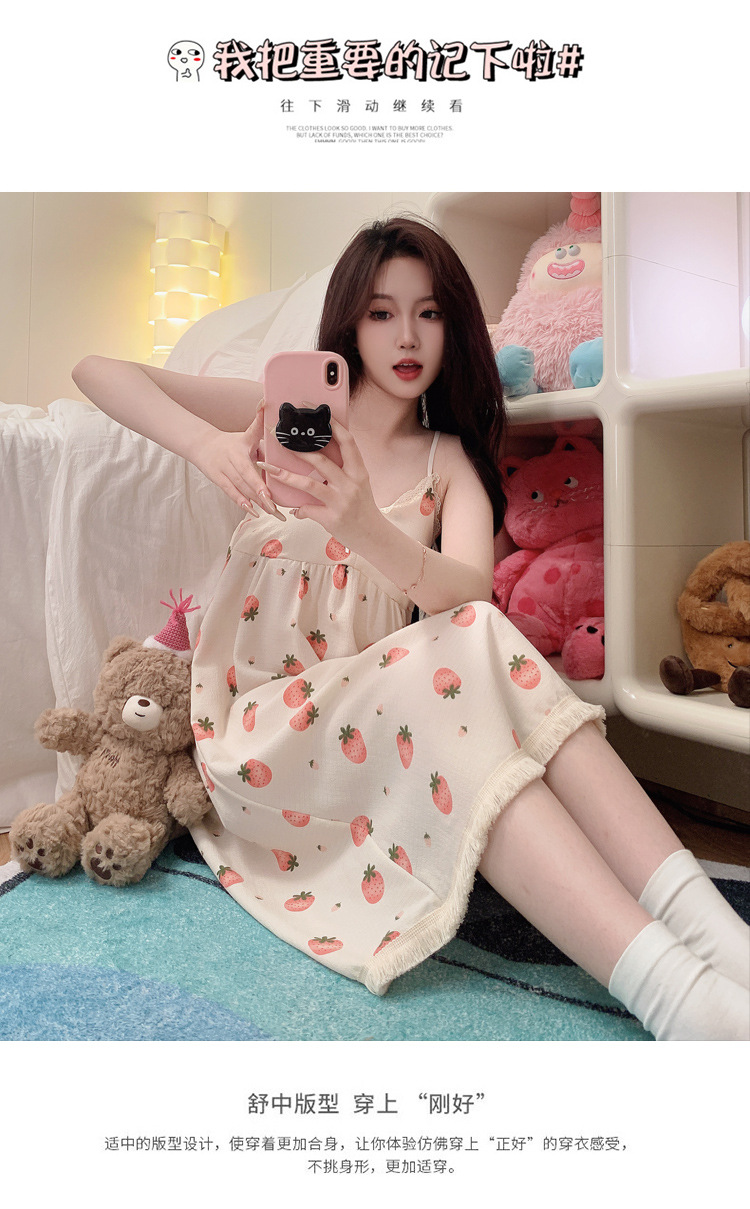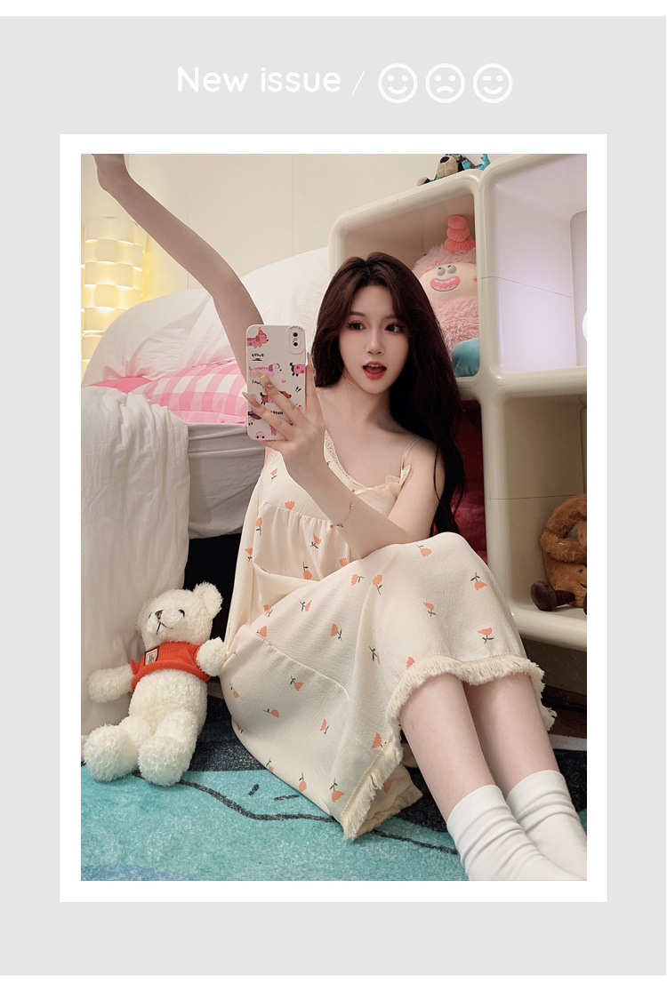 2024 vestido de pijama de cabina de verano dulce dulce princesa espuma espuma de alto valor facial estudiante ropa de hogar suelta