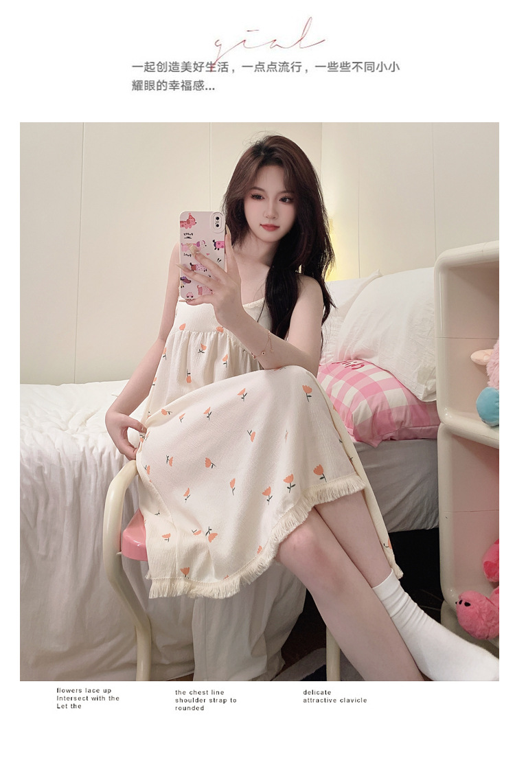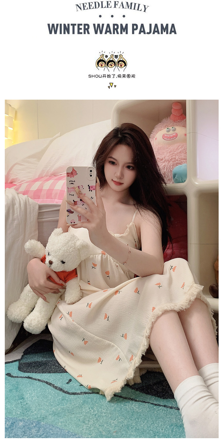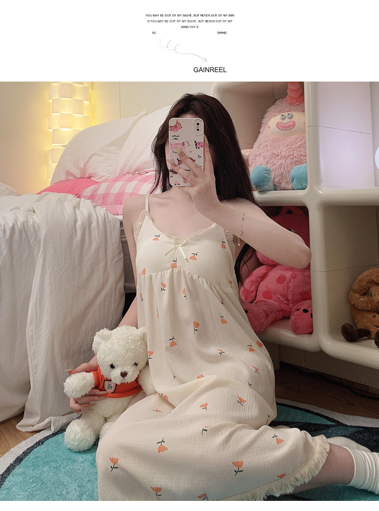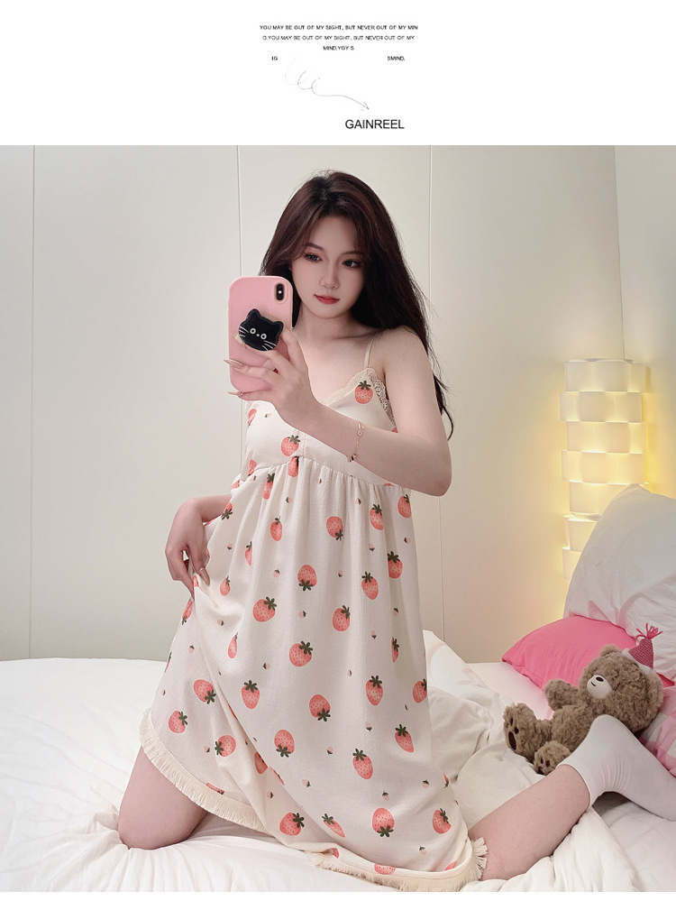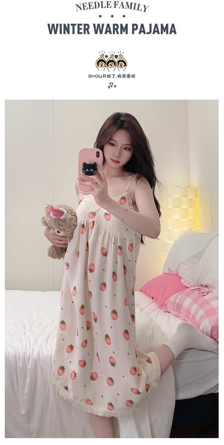 2024 vestido de pijama de cabina de verano dulce dulce princesa espuma espuma de alto valor facial estudiante ropa de hogar suelta