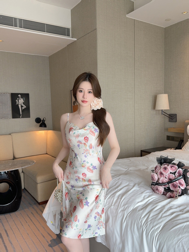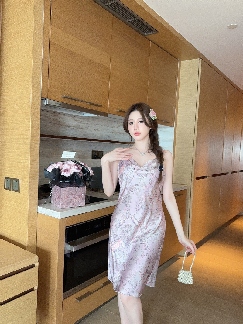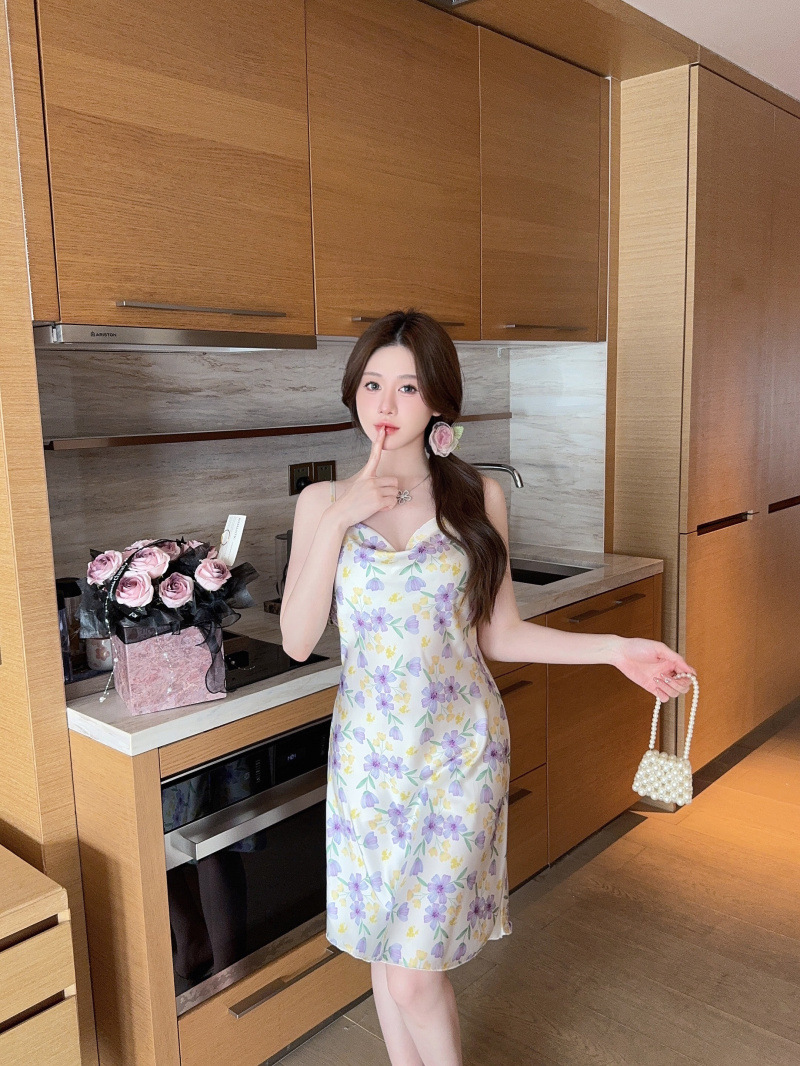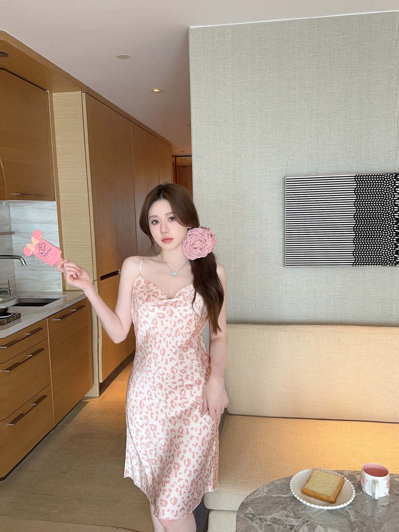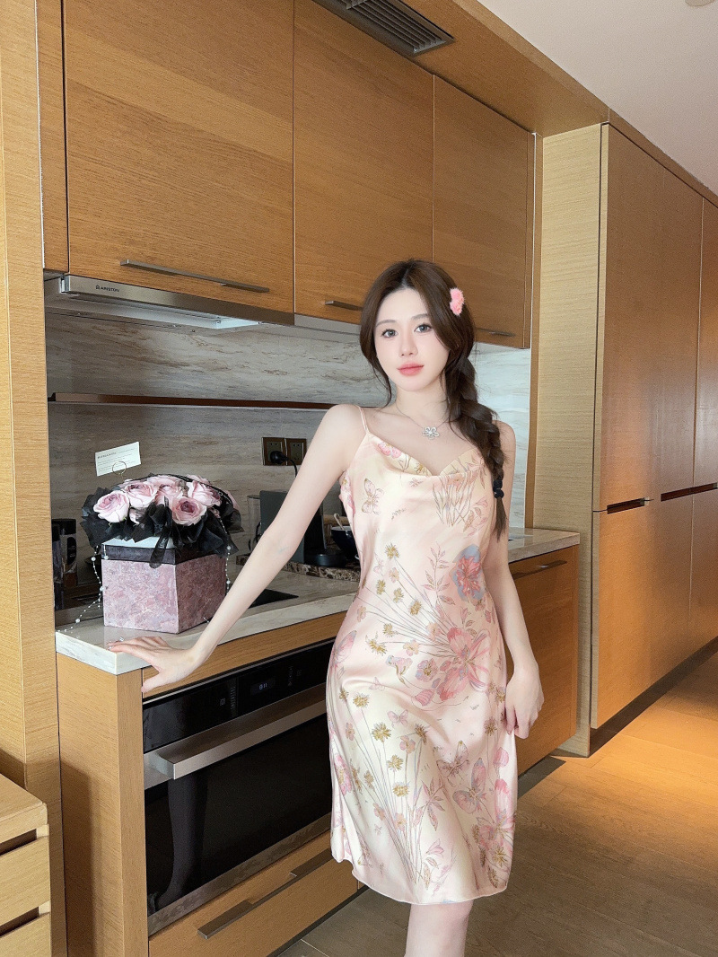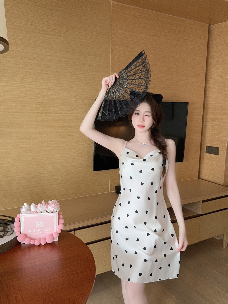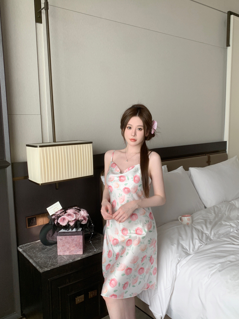 2024 verano pijama de cuello swing chica pura libido mariposa estampado eslingas de espalda descubierta sexy vestido de pijama atractivo ropa para el hogar