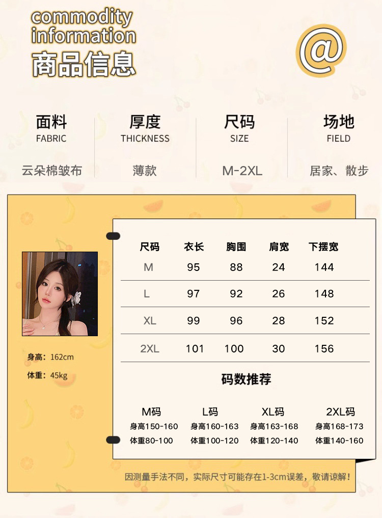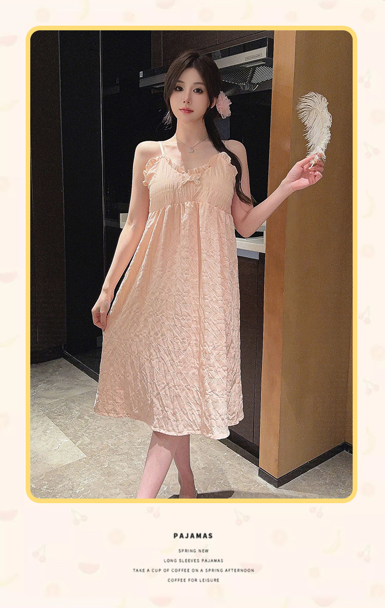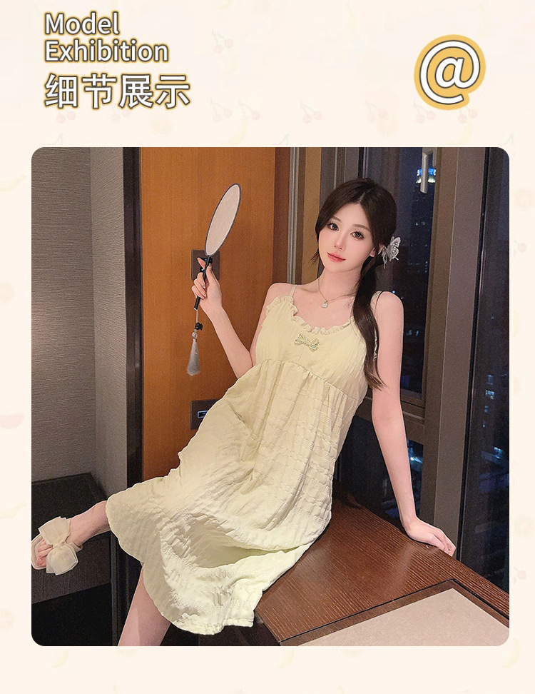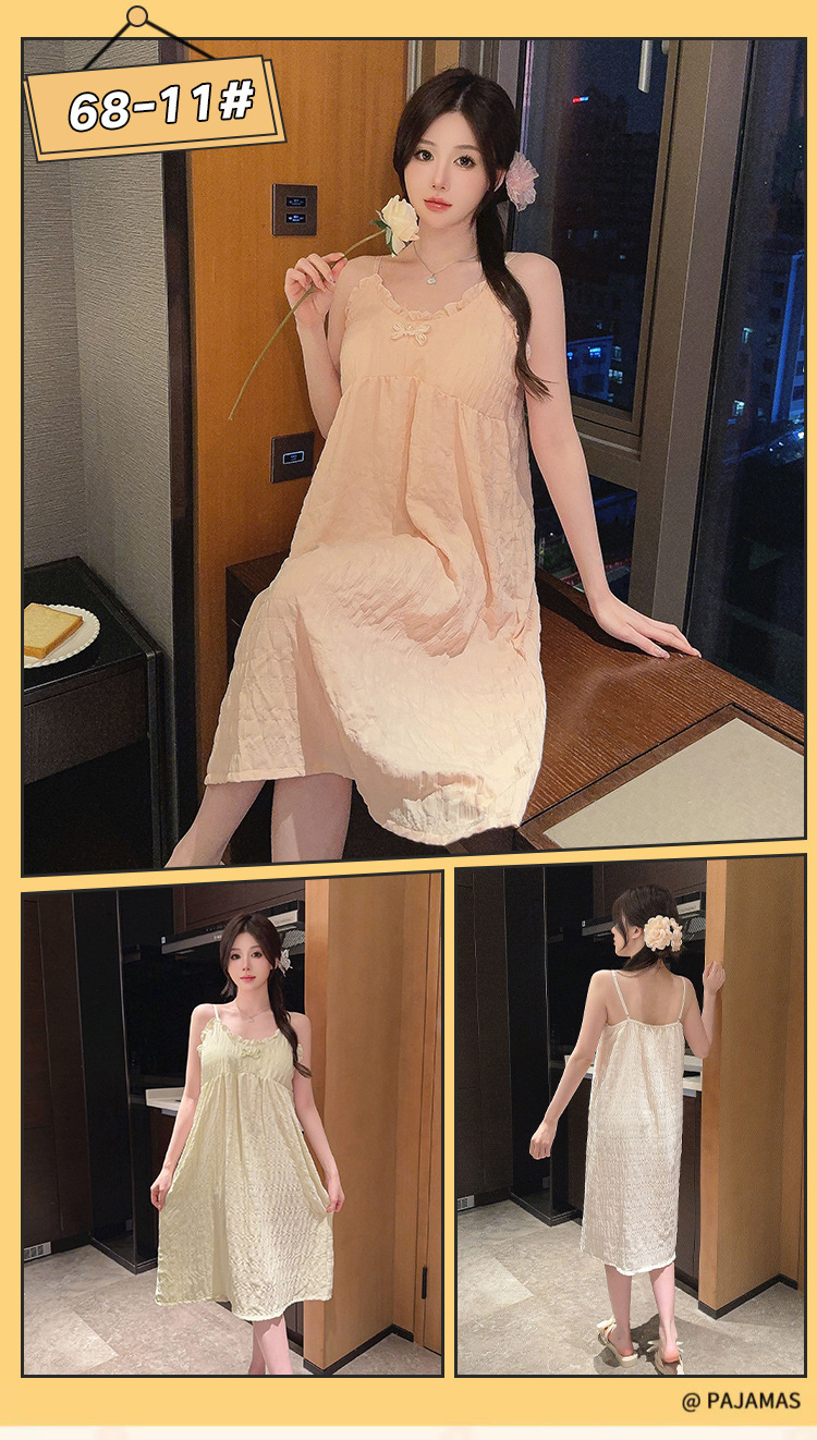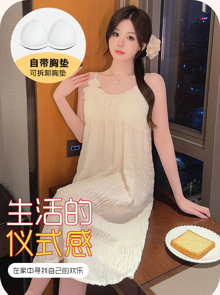 2024 verano con almohadilla de pecho mediano y largo pijama de color sólido pijama de niñas nubes de algodón puro deseo de viento dulce ropa para el hogar