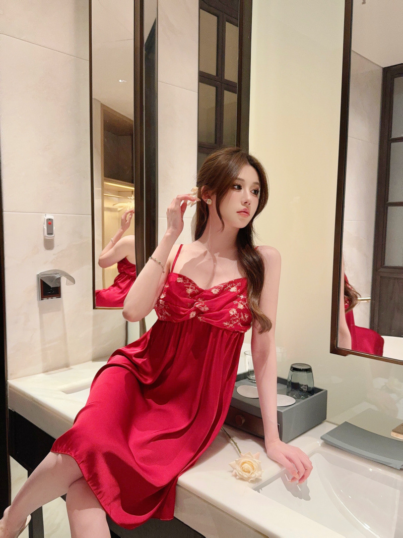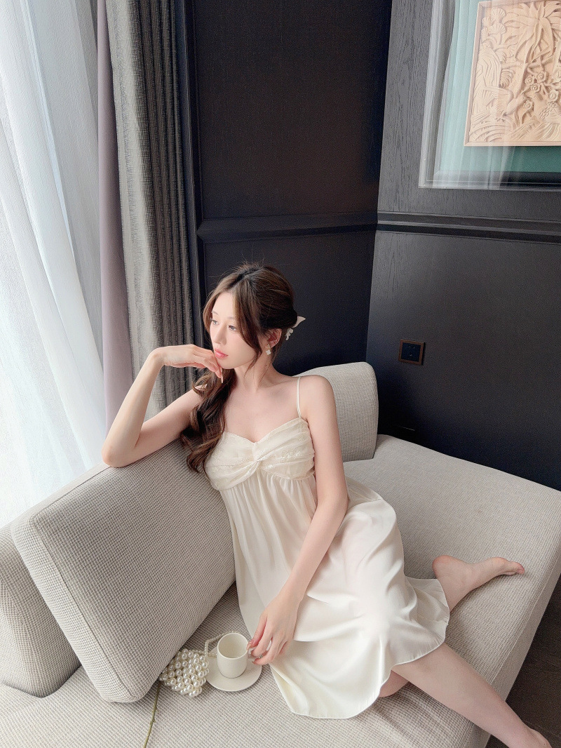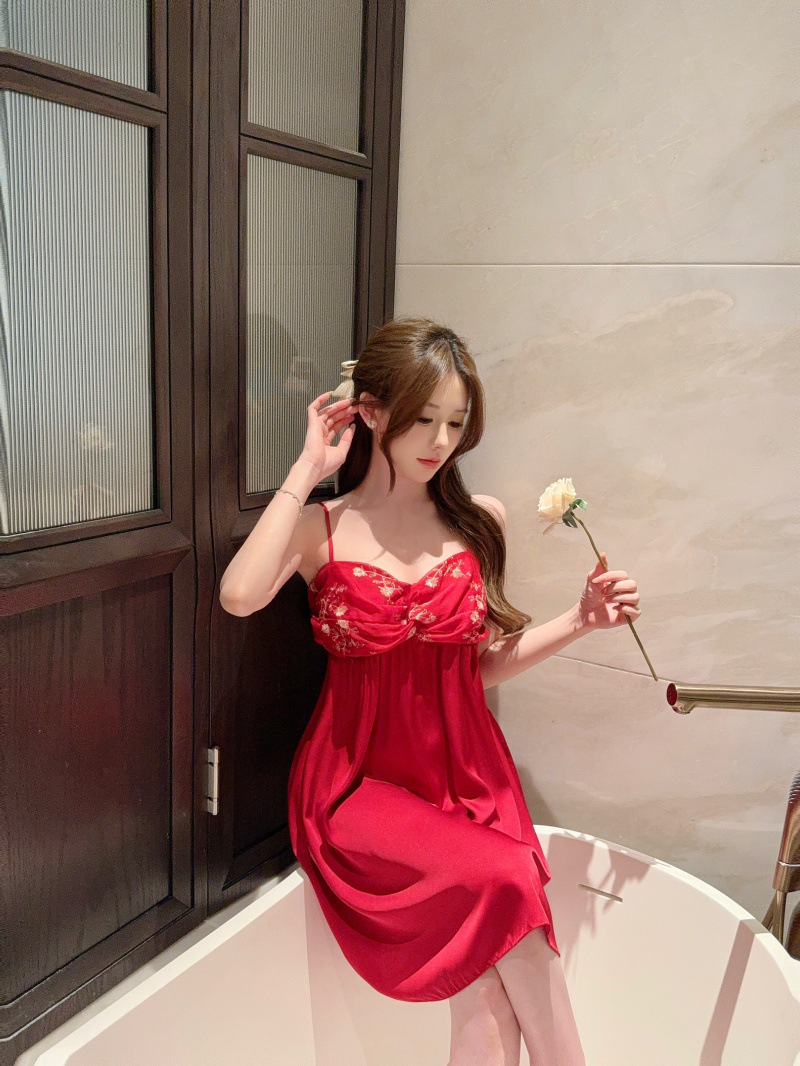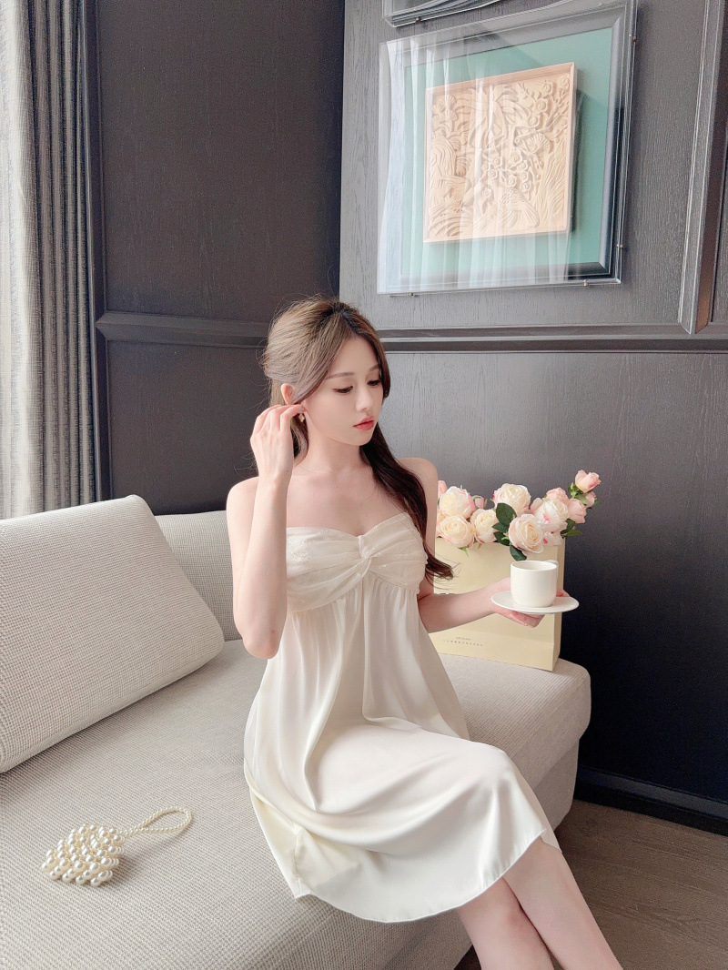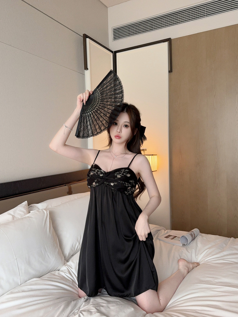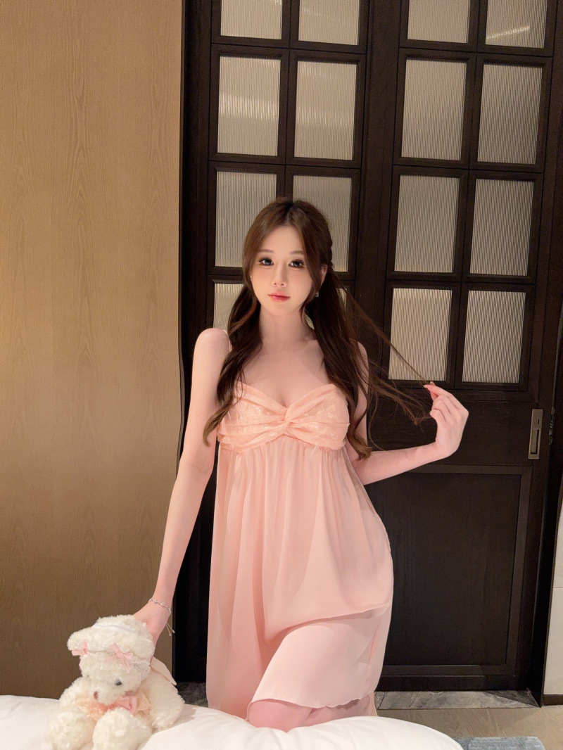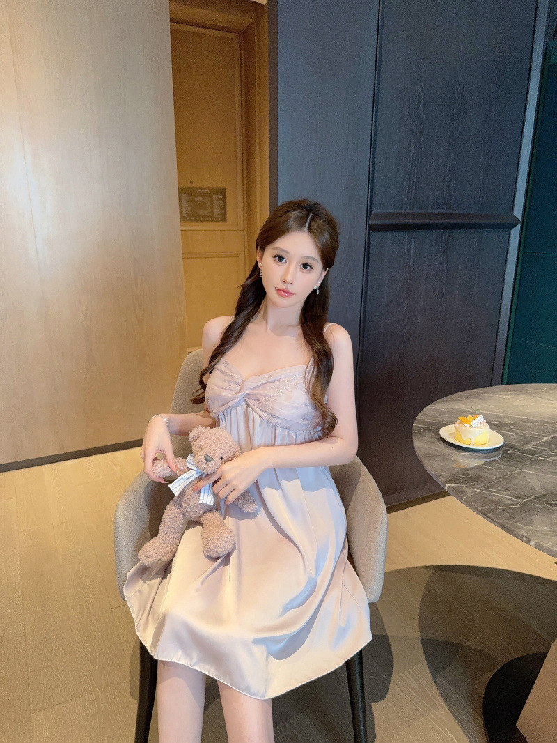 Pijamas de verano de cinta de color sólido cojín de pecho puro deseo de viento hielo y nieve silla cabdaja pijama de niñas bordado encaje sexy ropa para el hogar
