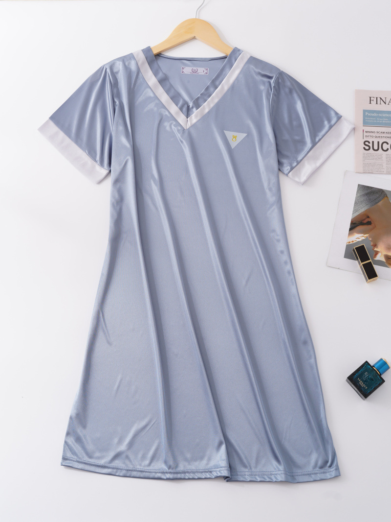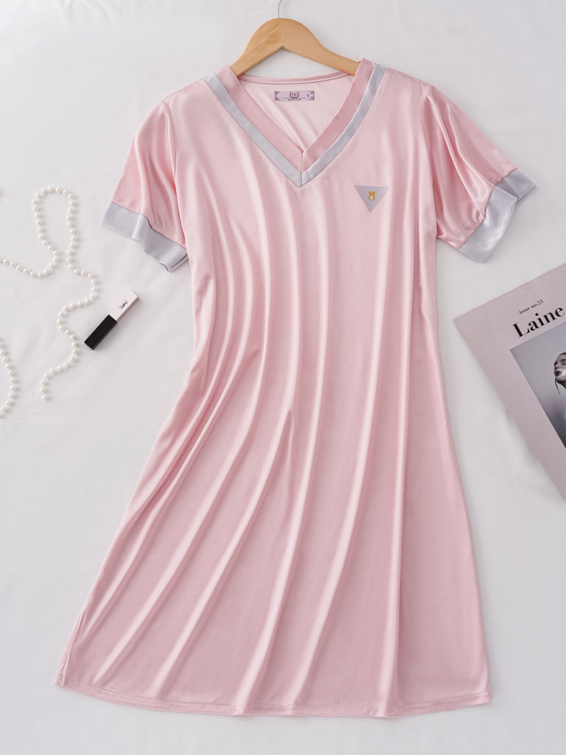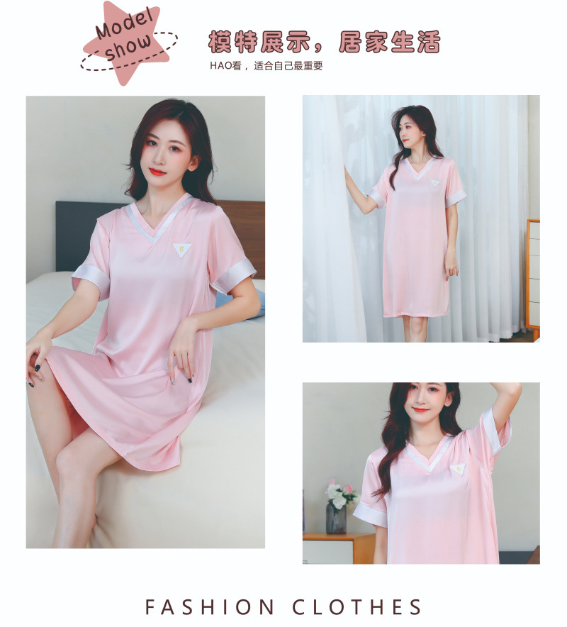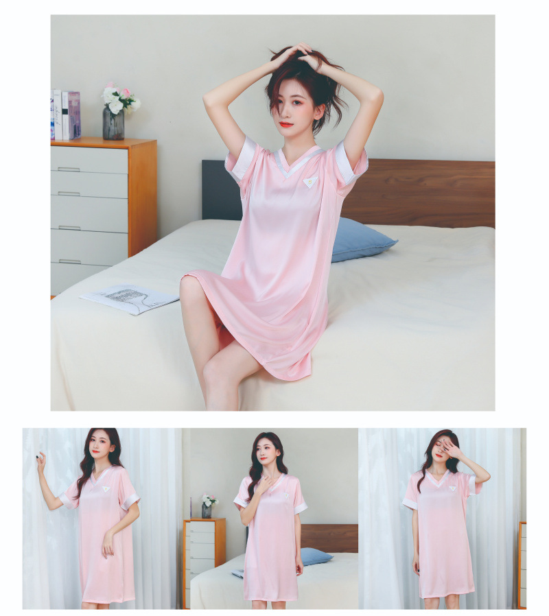 2024 verano toda la luz tela de hielo pijama chica simple V-collar pijama largo delgado ropa de hogar se puede usar