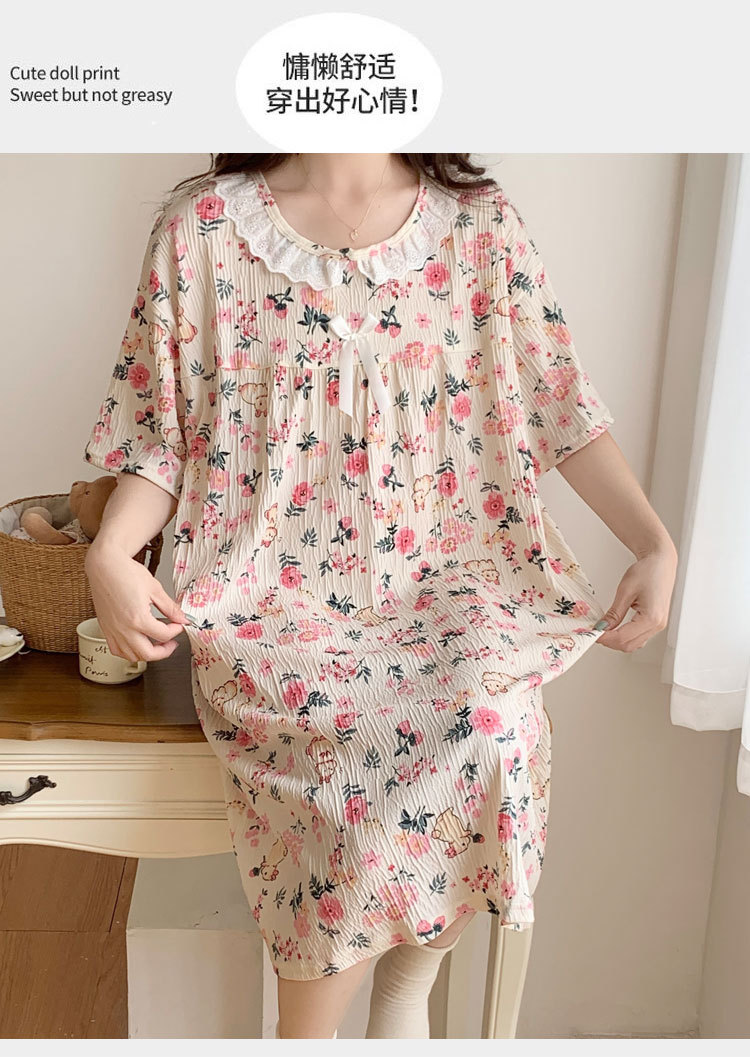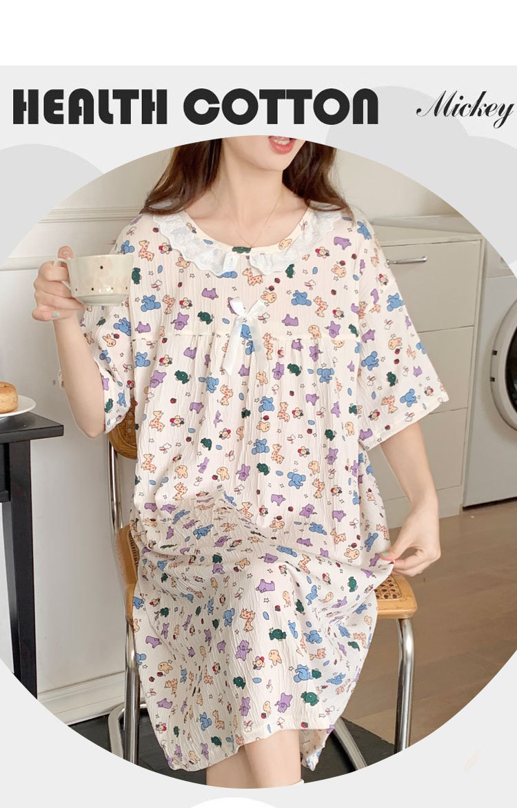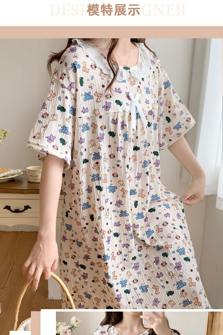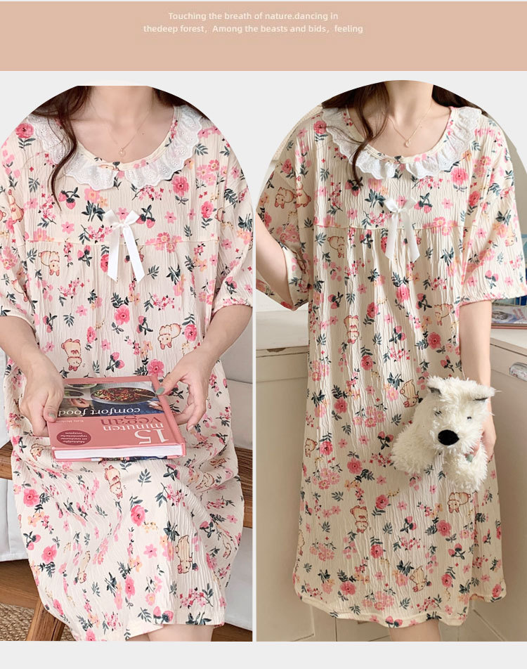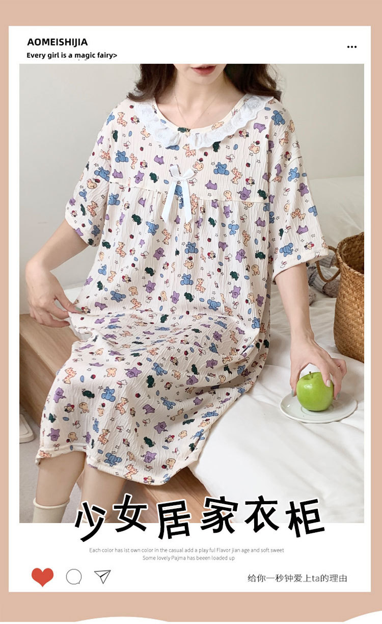 Verano 2024 vestido de pijama de niñas encaje de algodón tela arrugada dibujos animados manga corta media y larga lindo dulce ropa de hogar estudiantil