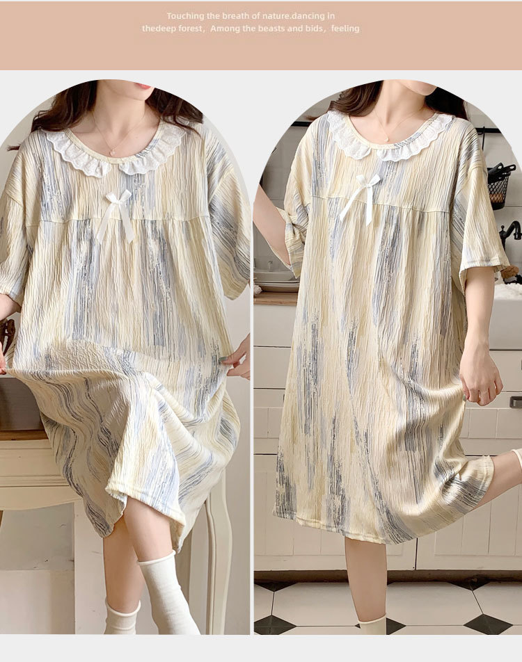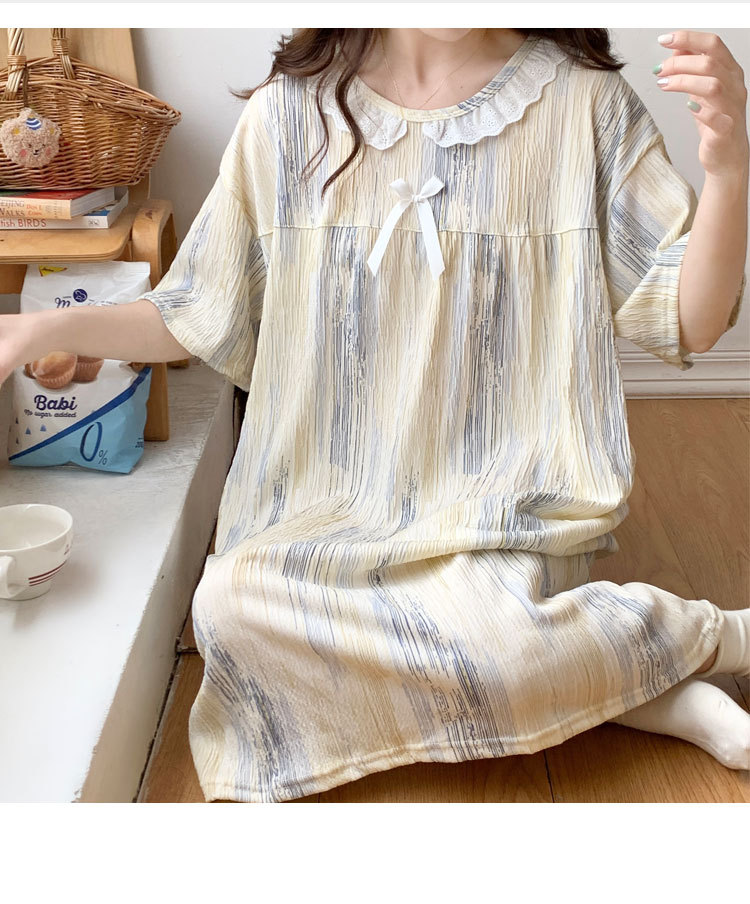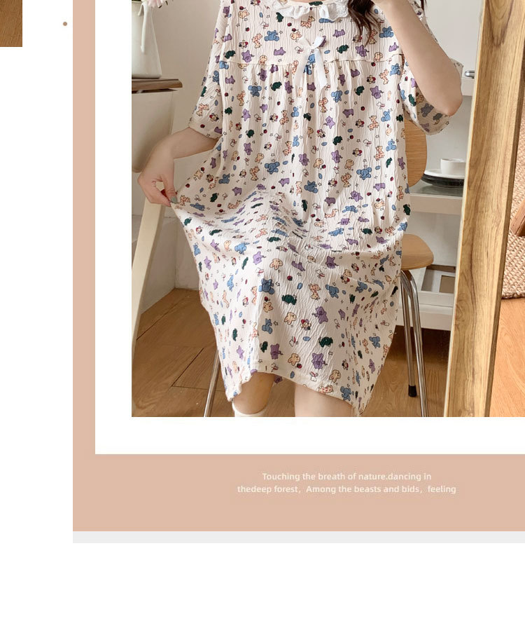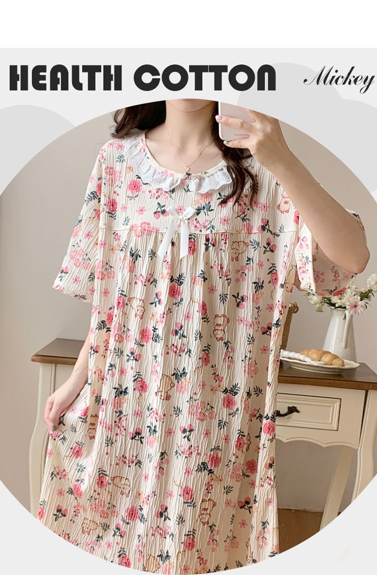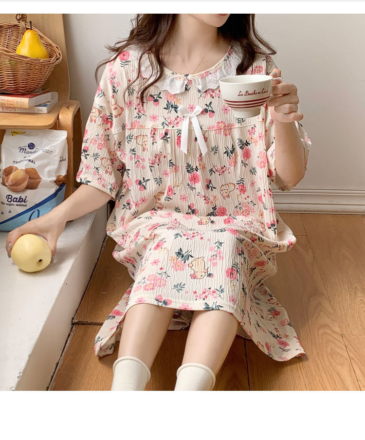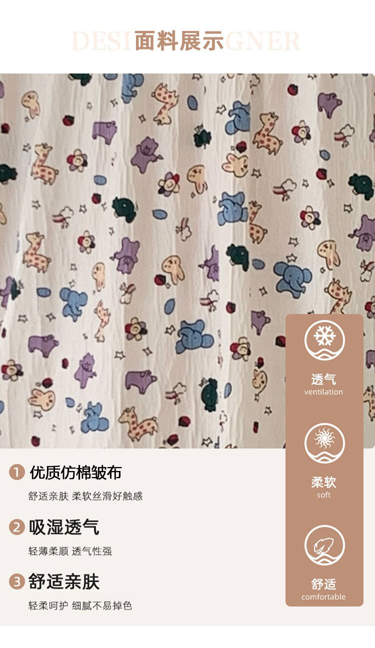Verano 2024 vestido de pijama de niñas encaje de algodón tela arrugada dibujos animados manga corta media y larga lindo dulce ropa de hogar estudiantil