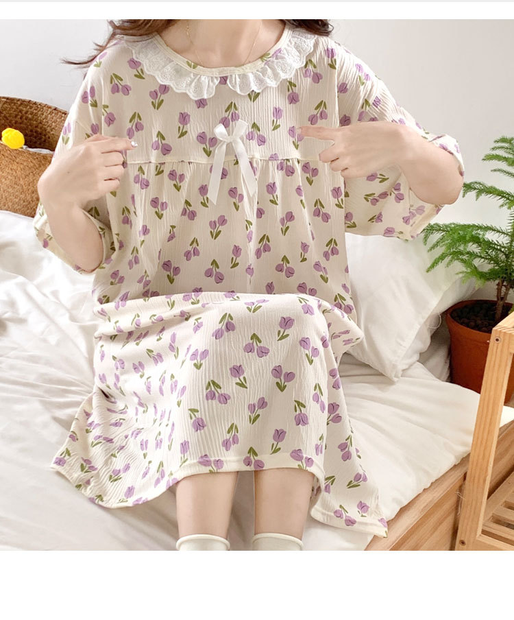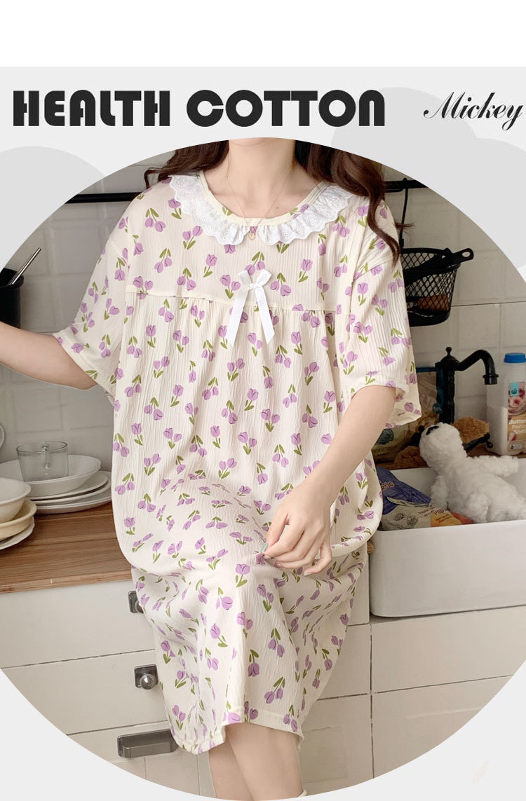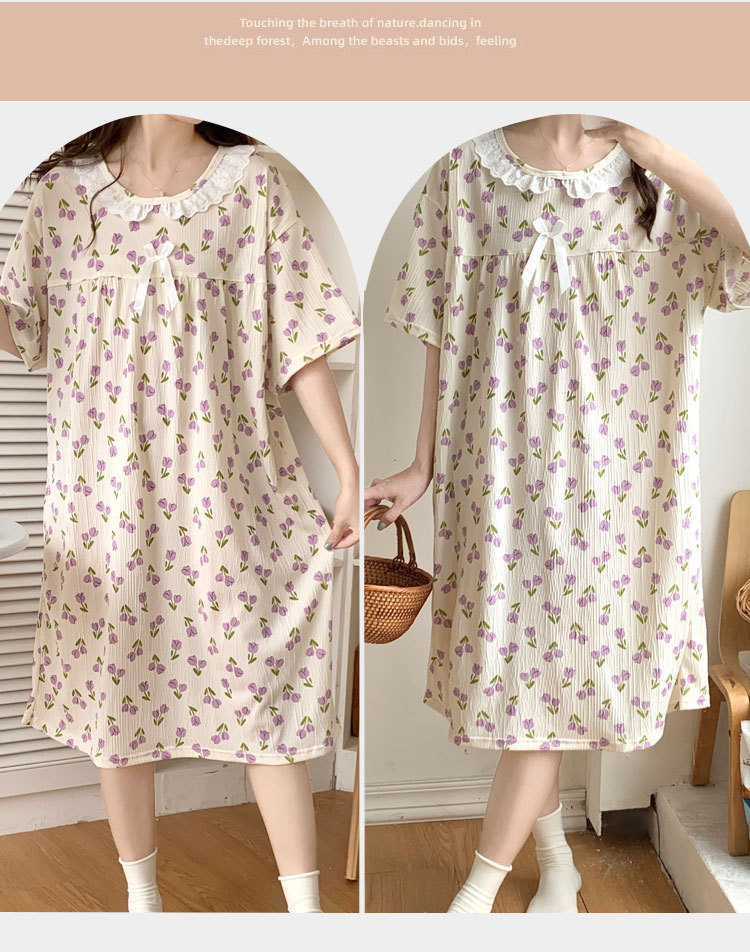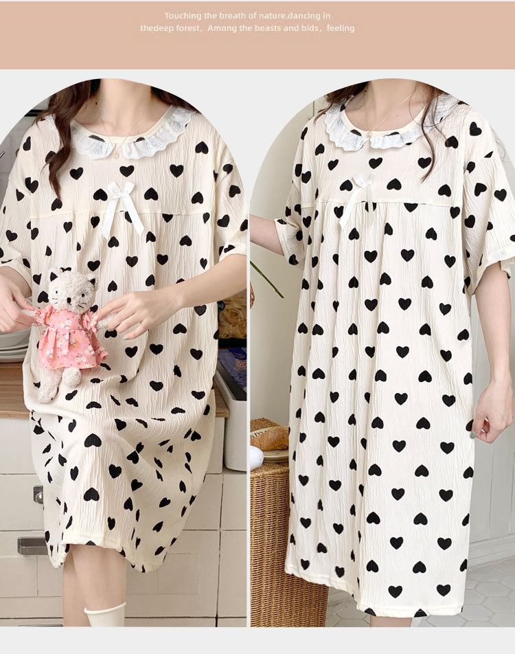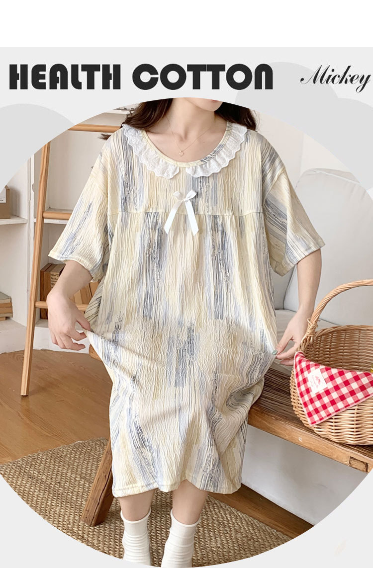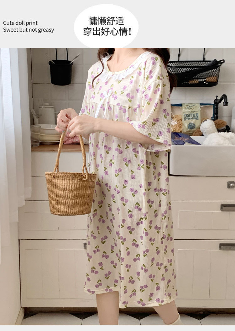Verano 2024 vestido de pijama de niñas encaje de algodón tela arrugada dibujos animados manga corta media y larga lindo dulce ropa de hogar estudiantil