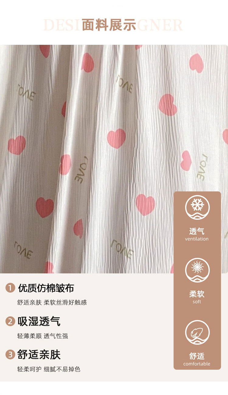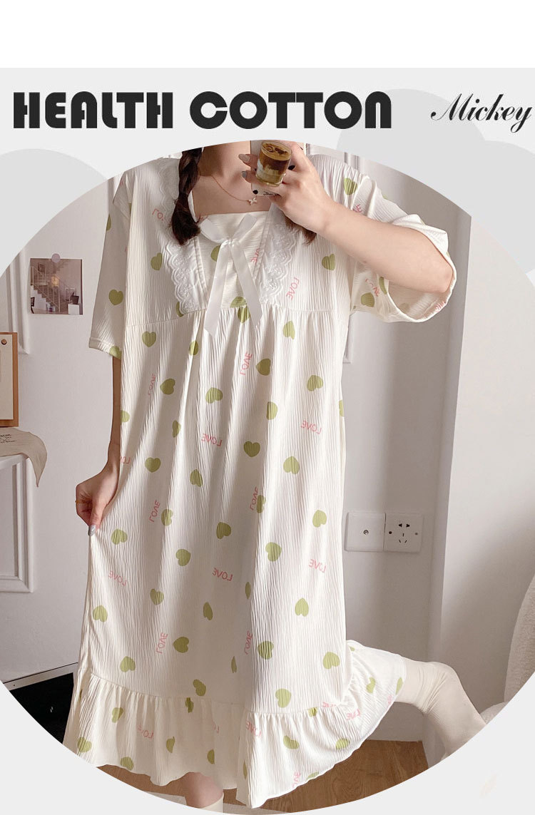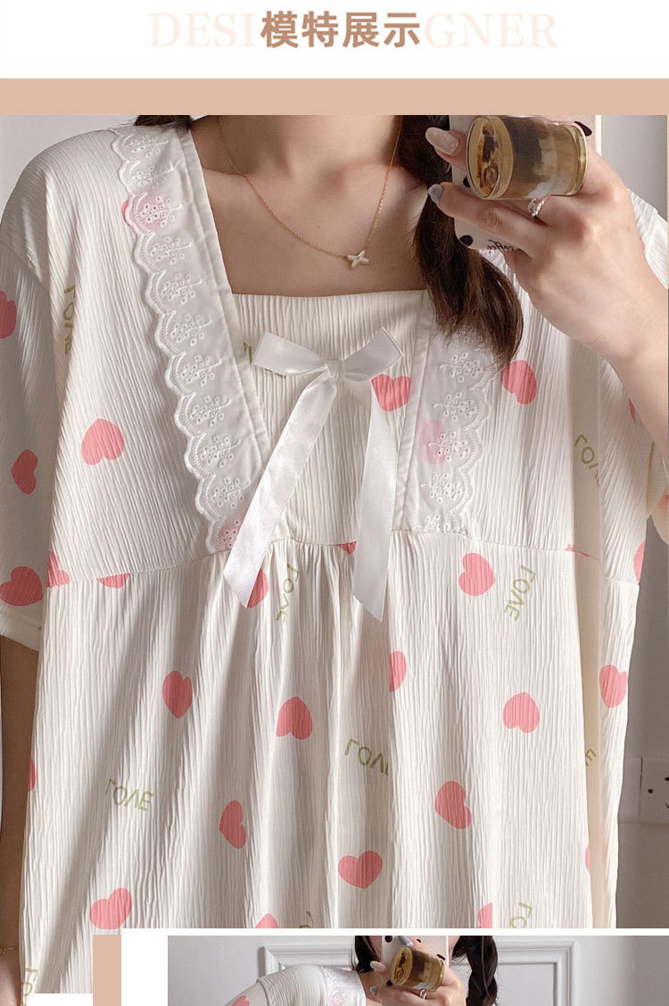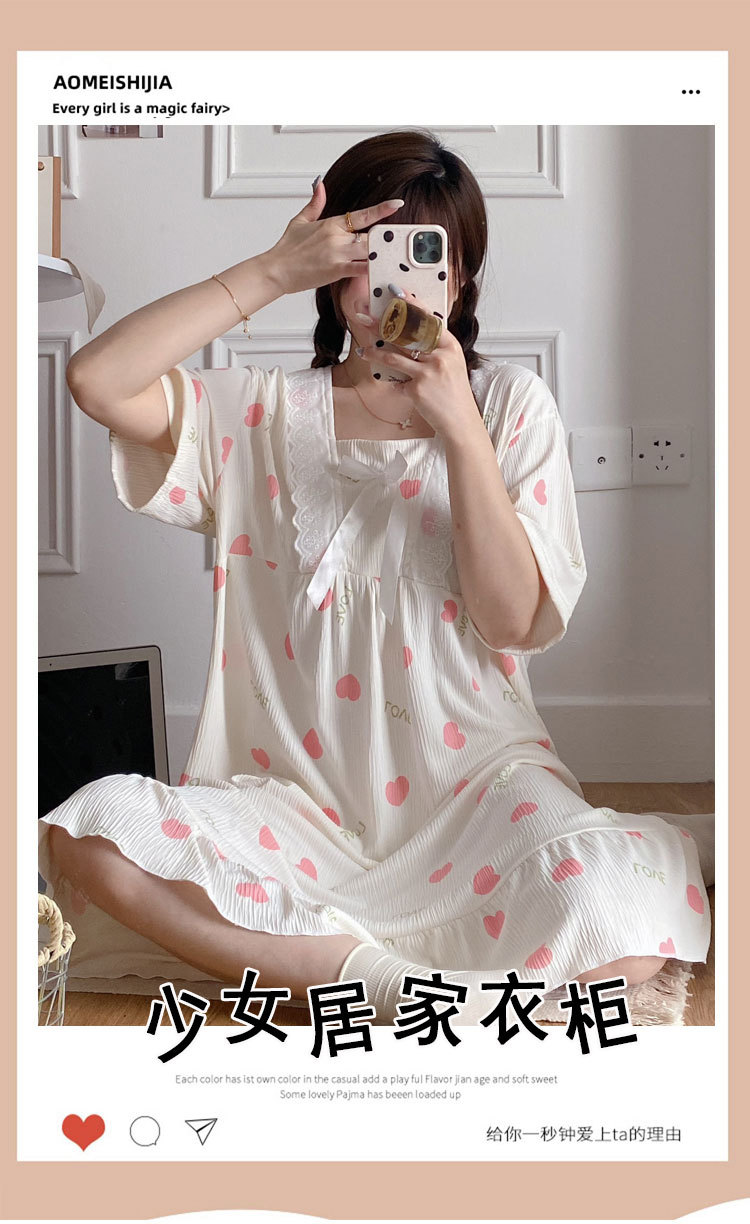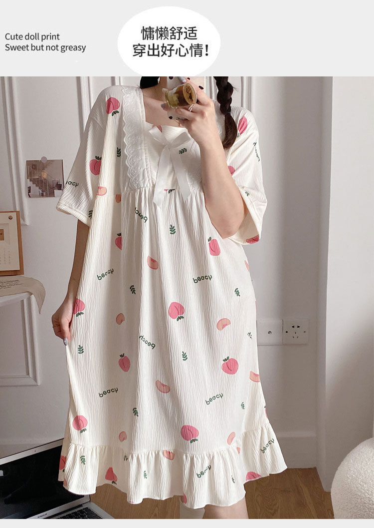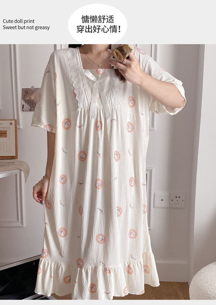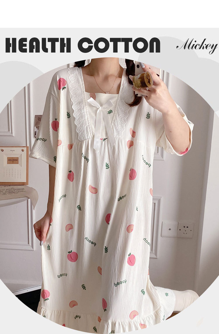 2024 verano cuello cuadrado tela de algodón arrugada delgada mangas cortas dulces pijamas largas niñas ropa de hogar comercio exterior al por mayor
