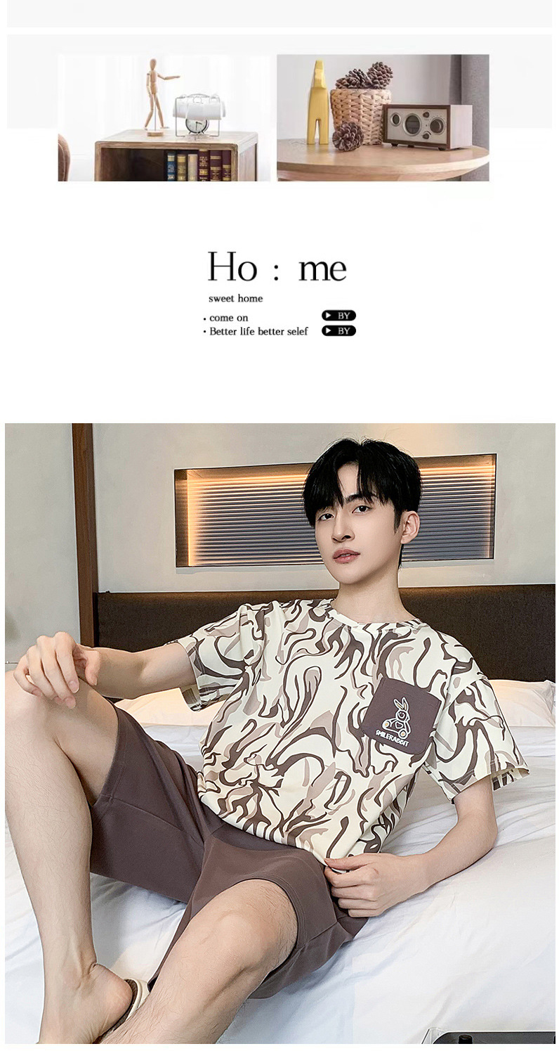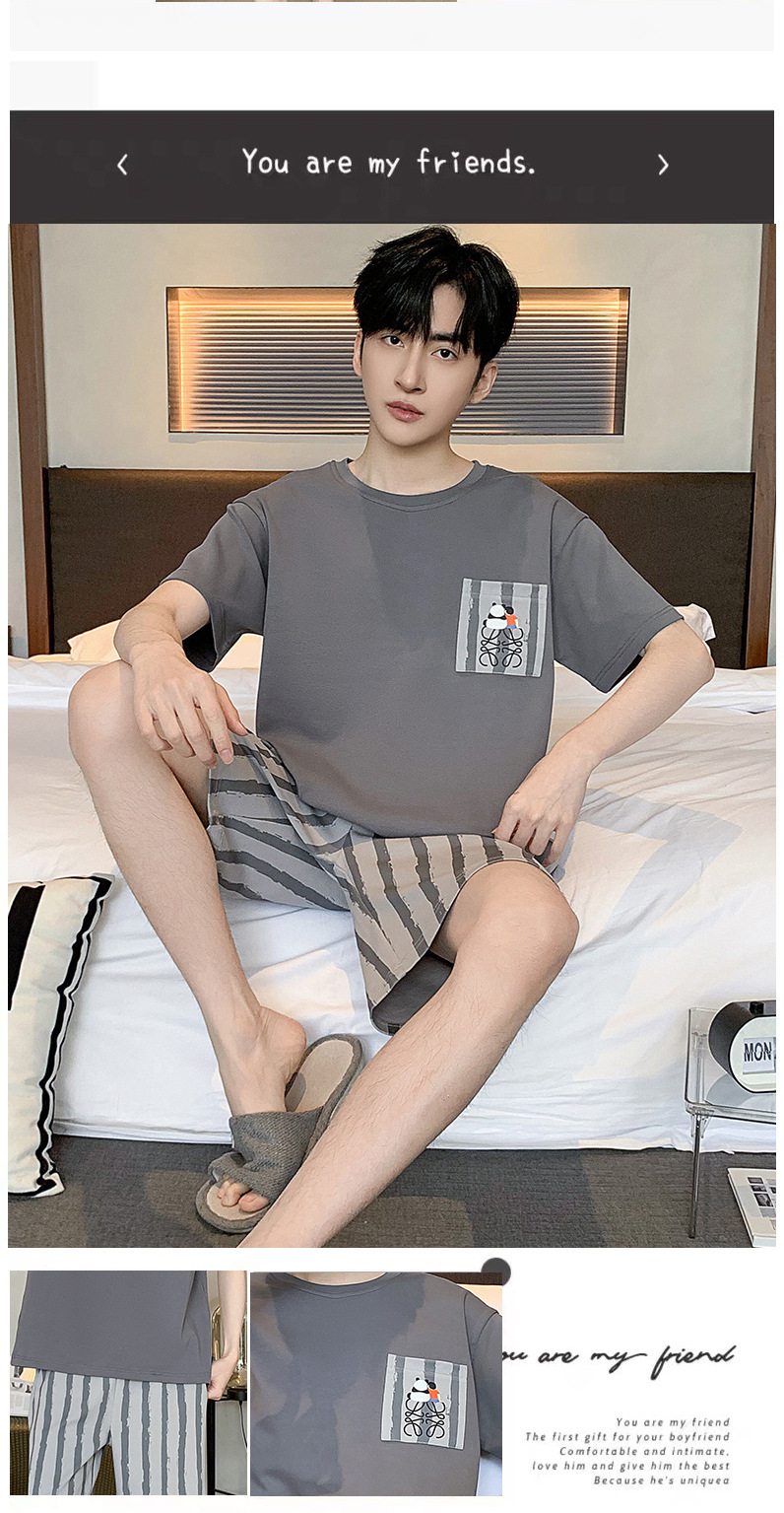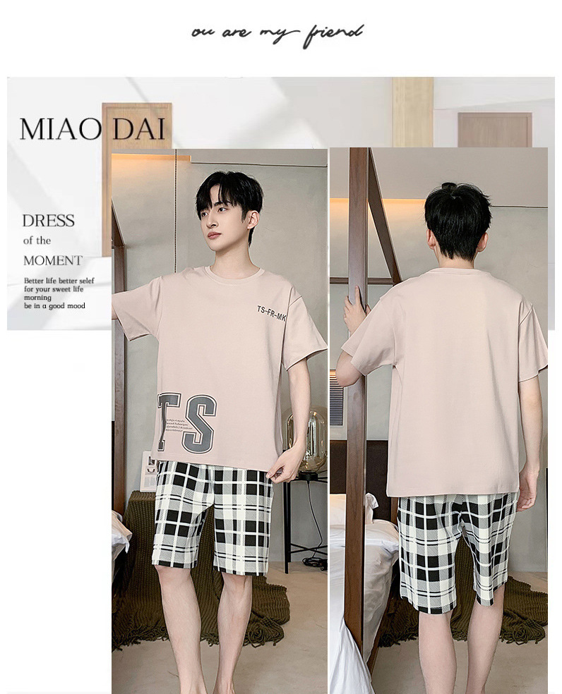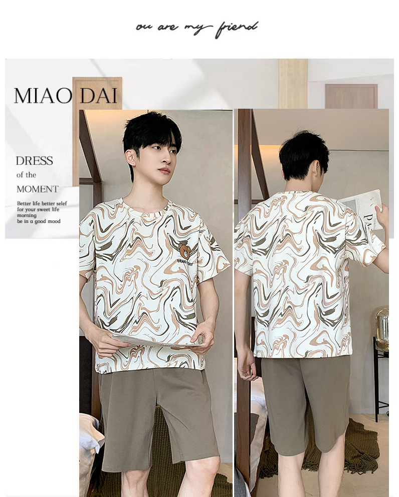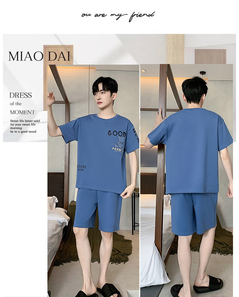 2024 algodón de punto de verano 6535 hombre cuello redondo mangas cortas pantalones cortos pijamas sueltos ropa casera casera
