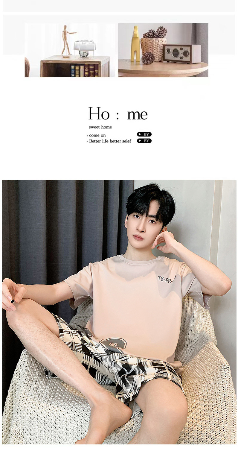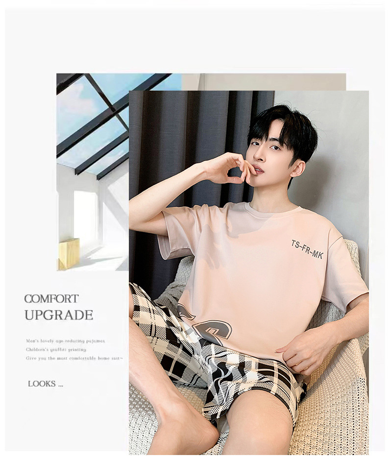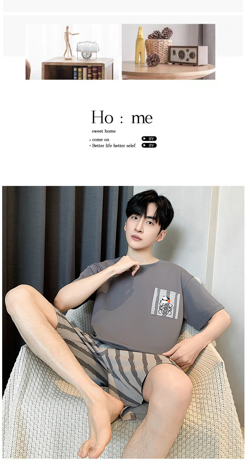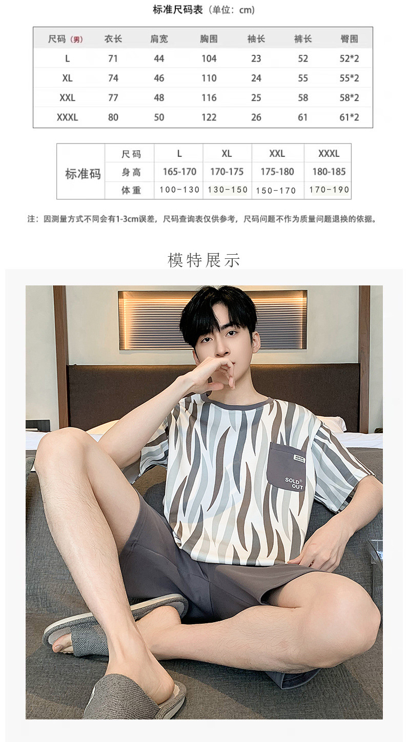 2024 algodón de punto de verano 6535 hombre cuello redondo mangas cortas pantalones cortos pijamas sueltos ropa casera casera